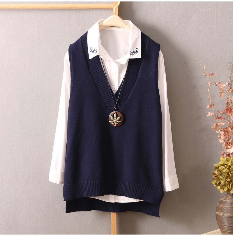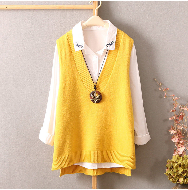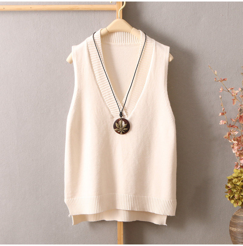 Свежий трикотажный свитер, жилет, трикотажная майка топ без рукавов, в корейском стиле, V-образный вырез