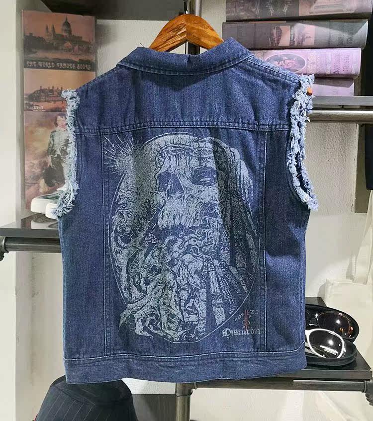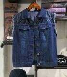 Короткая джинсовая куртка без рукавов, жилет, квадратный вырез, городской стиль
