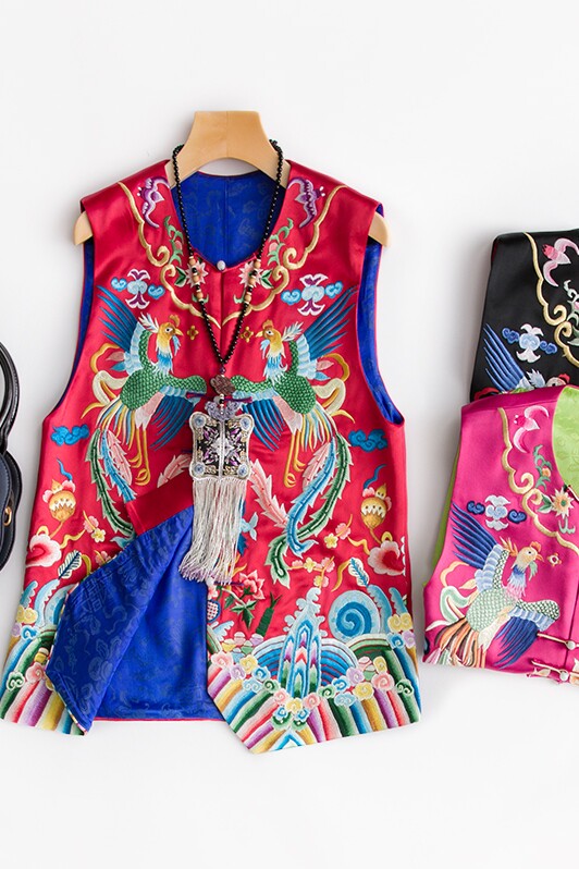 [CPP063延禧攻略风 重工祥瑞双凤海水江崖中式刺绣满绣马甲女]