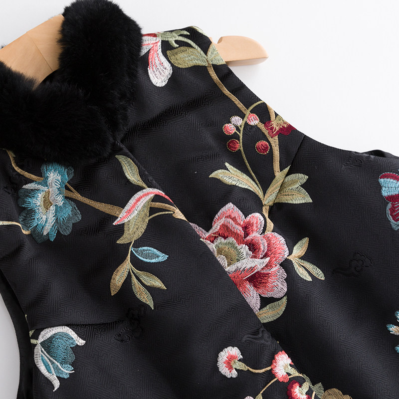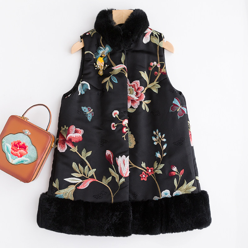 Демисезонный длинный удерживающий тепло ретро жилет, майка топ, китайский стиль, с вышивкой