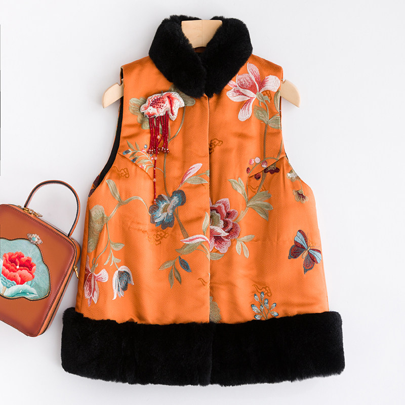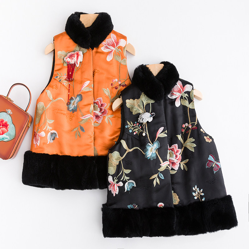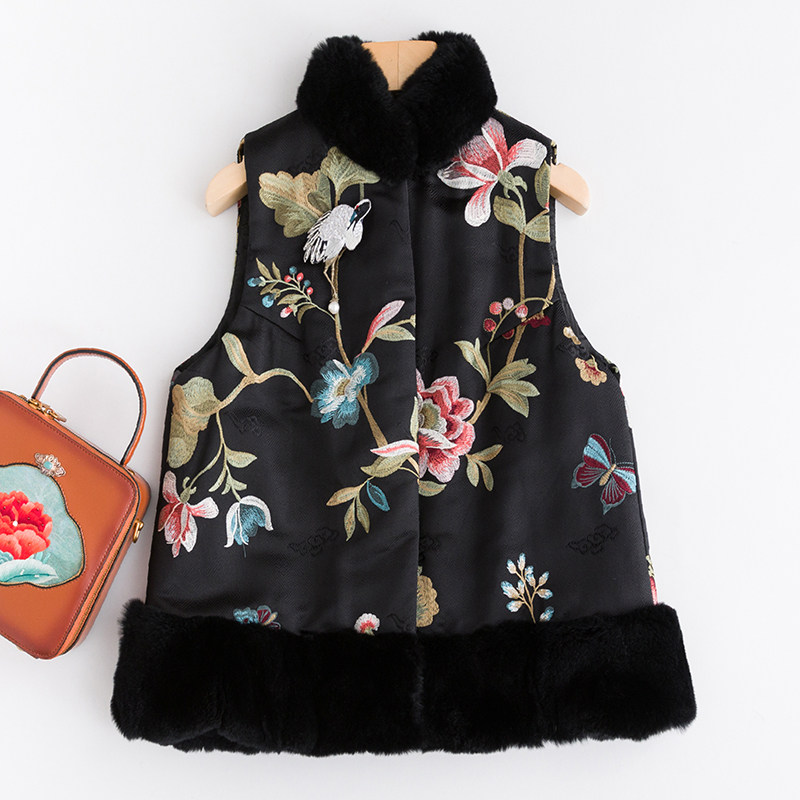 Городской магазин малыш CPP182 Осень и зимние вышитые цветочные волосы воротничка Плетение jinxiangyun Бросикальные ретро -лошади Clip жилет женский