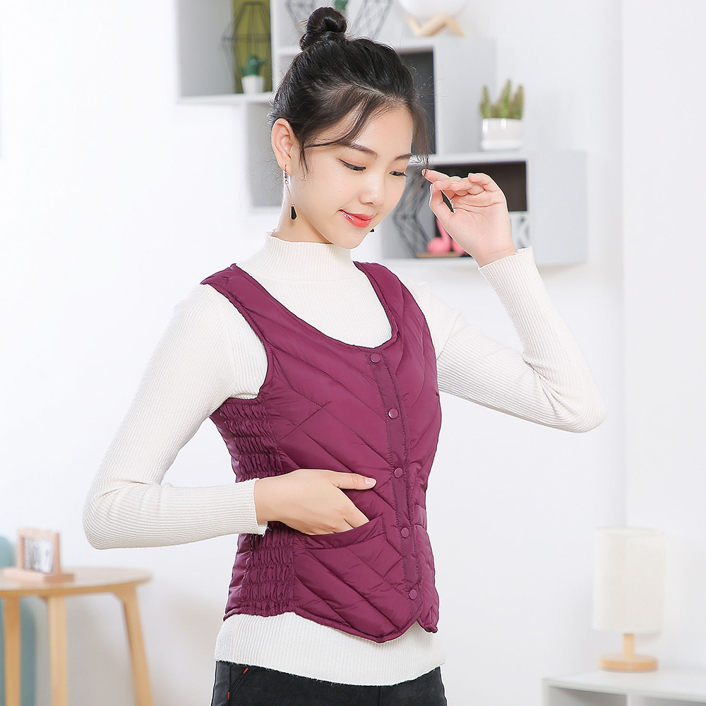 Легкий и тонкий короткий жилет с пухом для матери, для среднего возраста, увеличенная толщина, в корейском стиле, по фигуре, облегающий крой