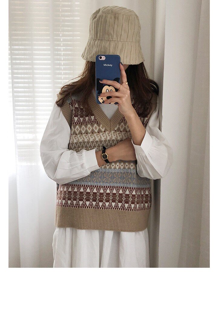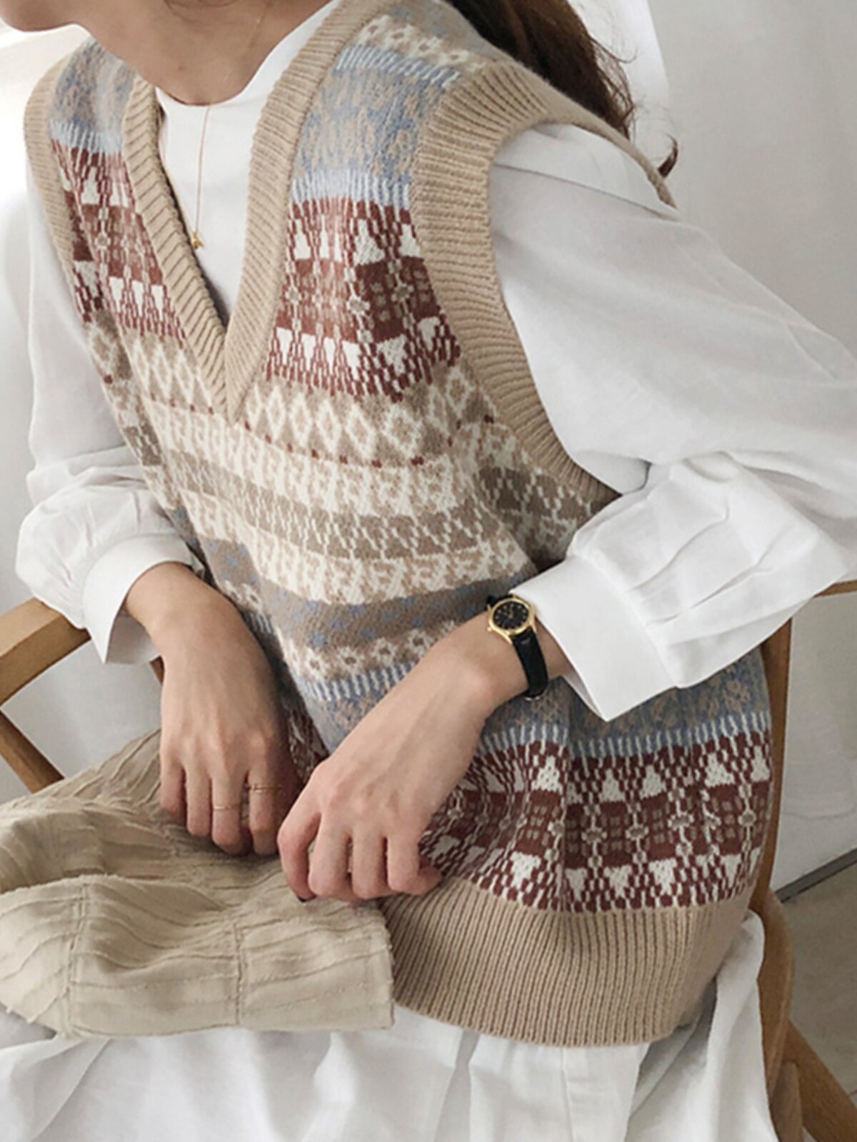 Демисезонный жилет, пуховик без рукавов, трикотажный свитер, V-образный вырез, со снежинками