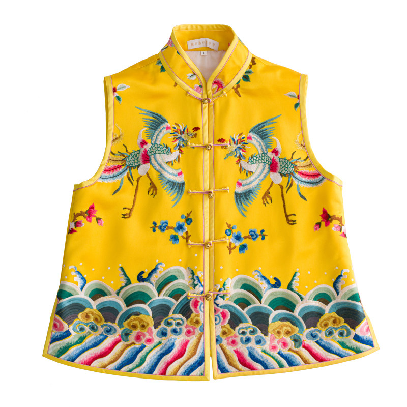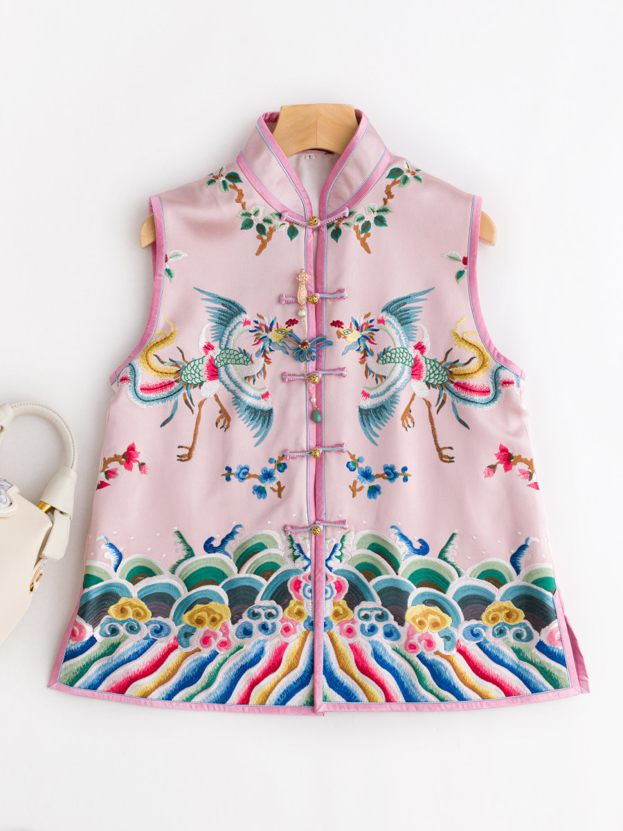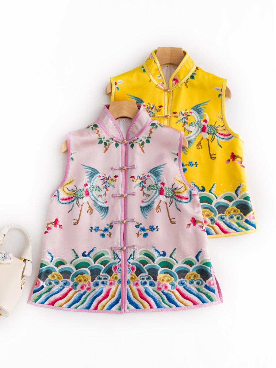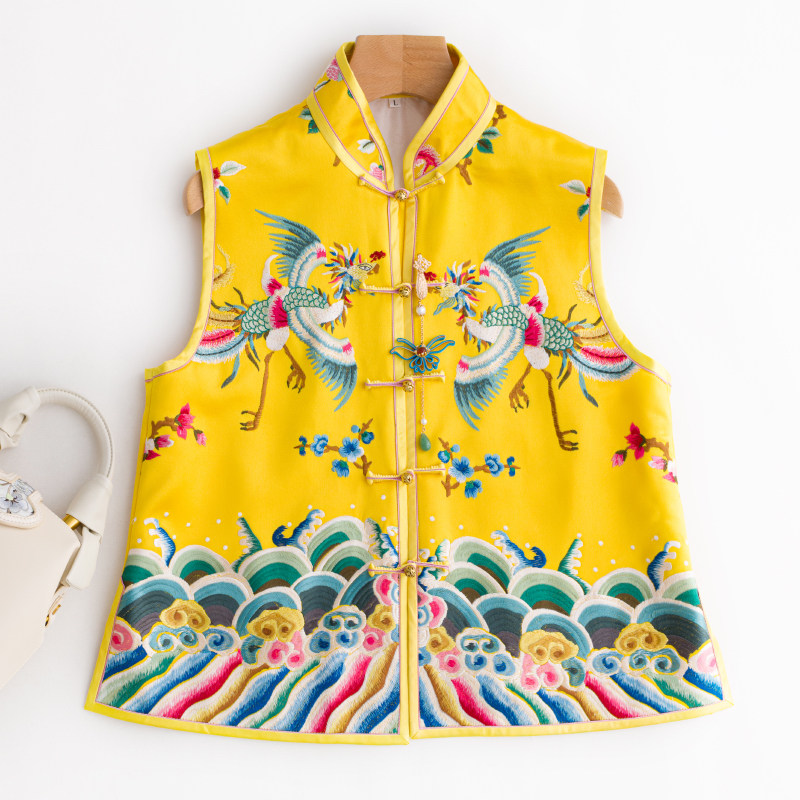 Ретро Феникс, осенний жилет, осенняя майка топ, с вышивкой, дракон и феникс