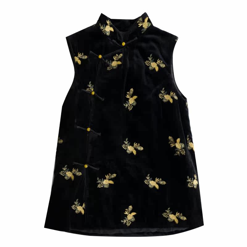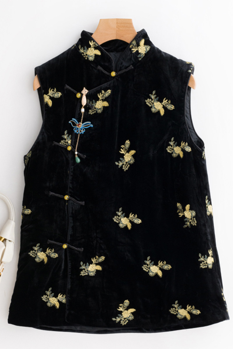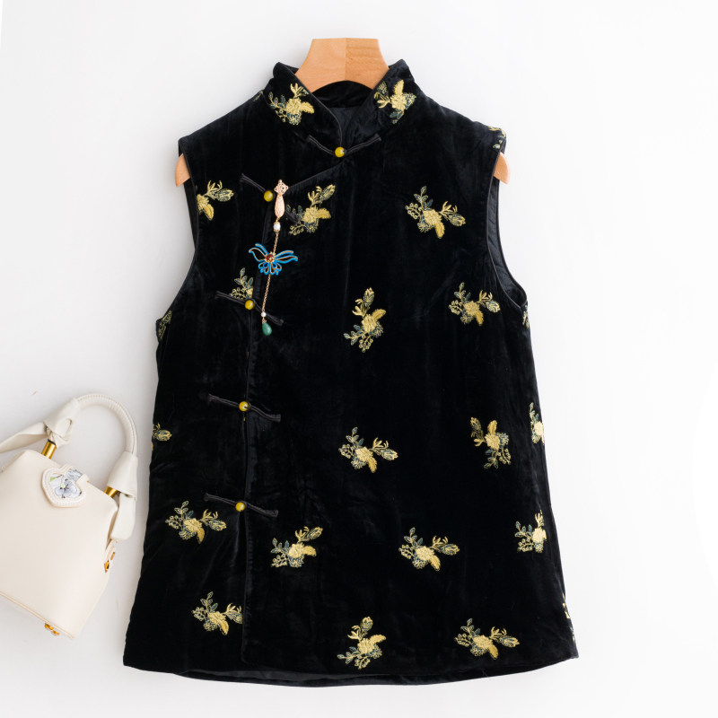 Бархатные бусы, ципао, демисезонный жилет, китайский стиль