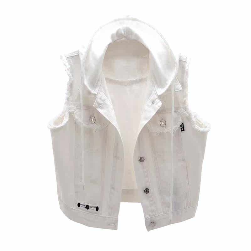 Короткий летний белый джинсовый жилет без рукавов с капюшоном, 2020, в корейском стиле