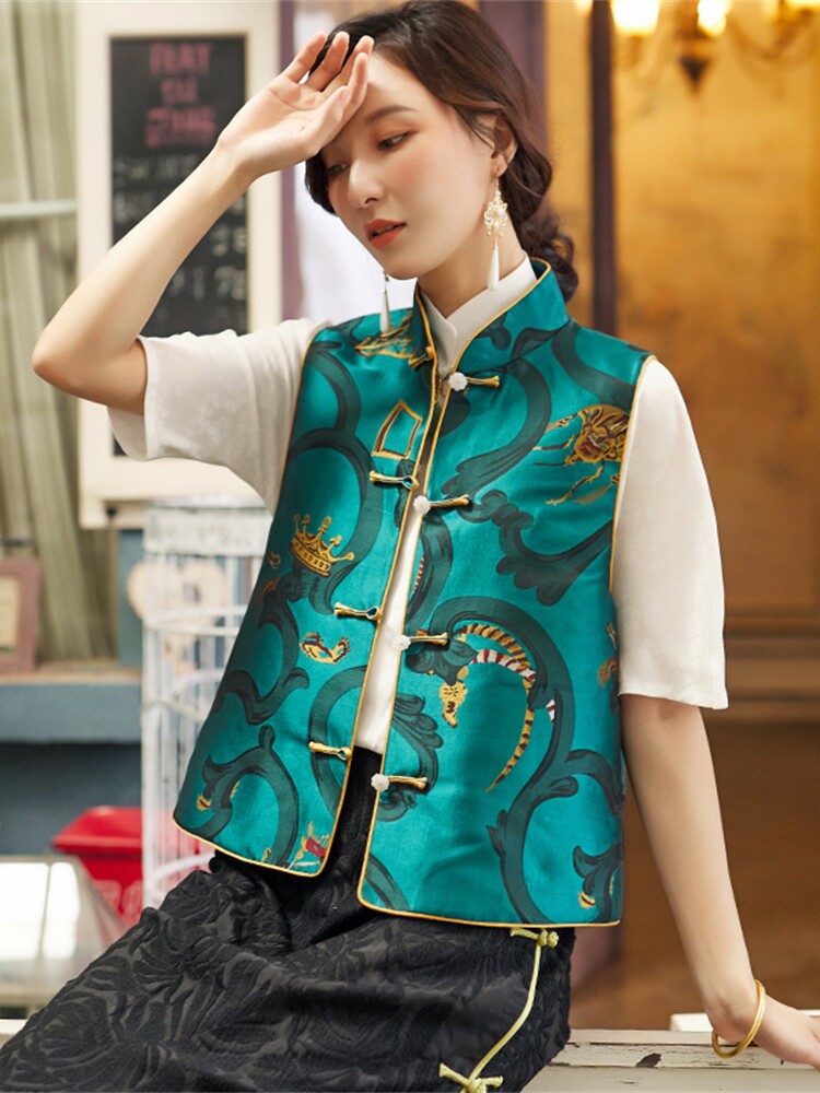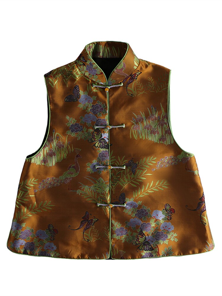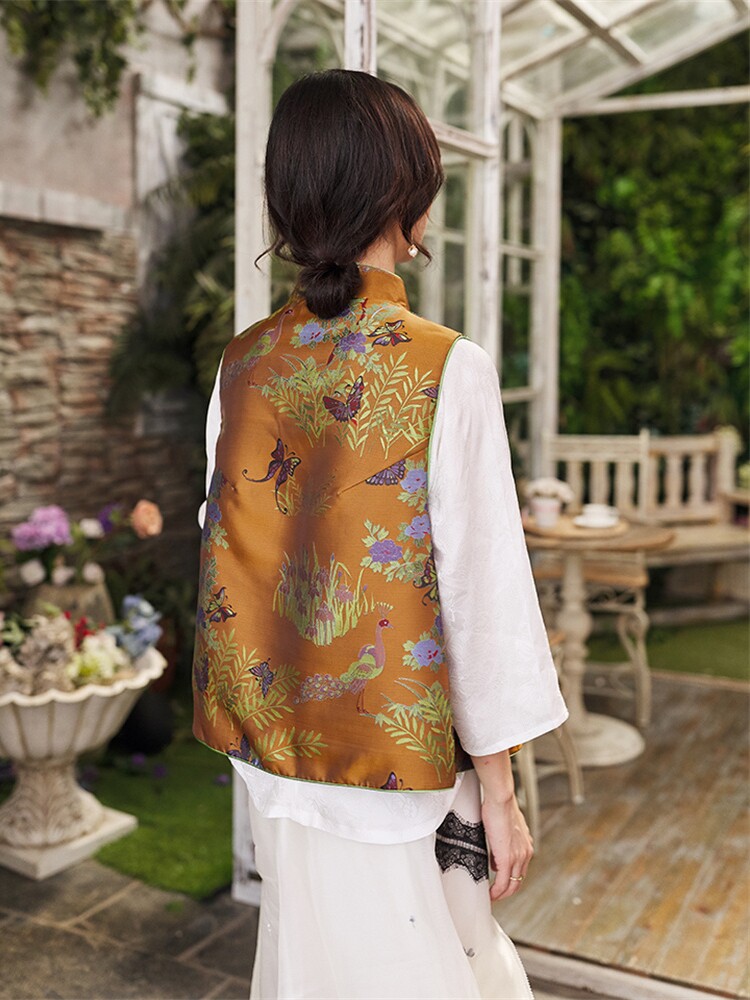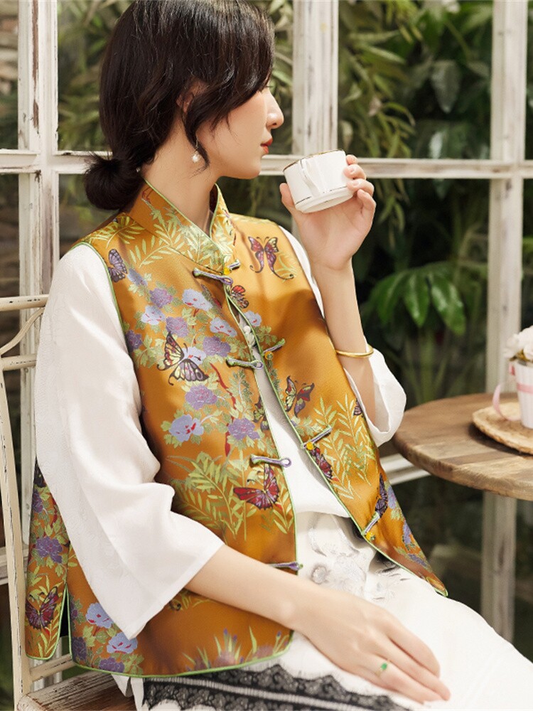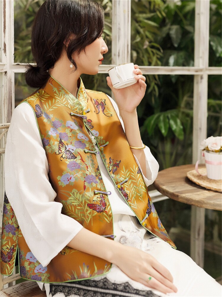 - Spot Butterfly Cotton Vest Желтая нефритовая бусинка с медной синей пряжкой
