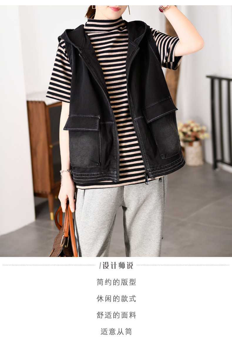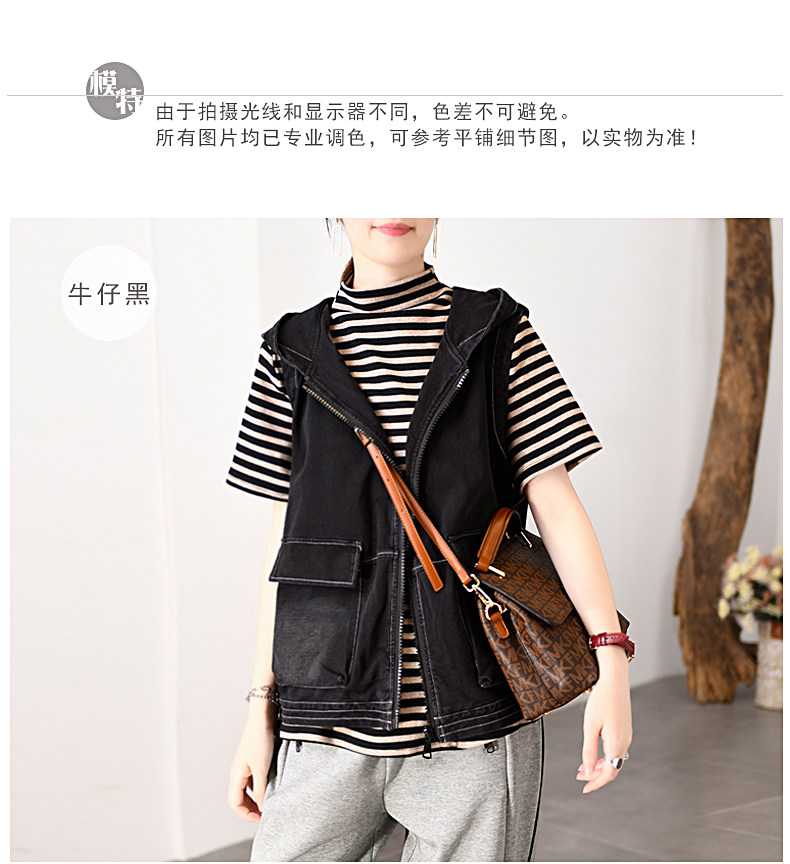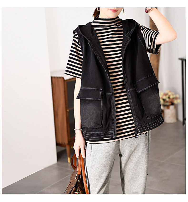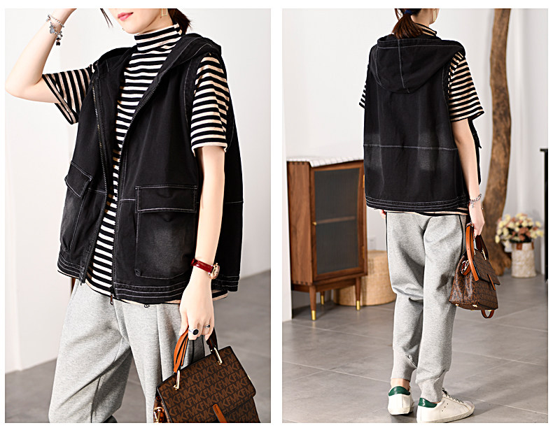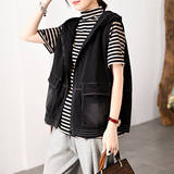 自语 Осенняя куртка без рукавов, джинсовый жилет с капюшоном, 2020, оверсайз, свободный крой