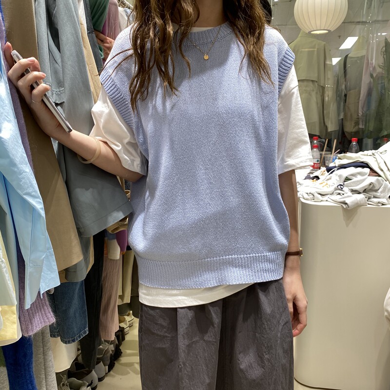 Весенний однотонный трикотажный жилет с круглым воротником, коллекция 2021, свободный крой