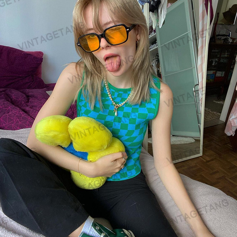 Tide, ретро зеленый цветной трикотажный жилет с круглым воротником, майка топ, футболка без рукавов, в американском стиле