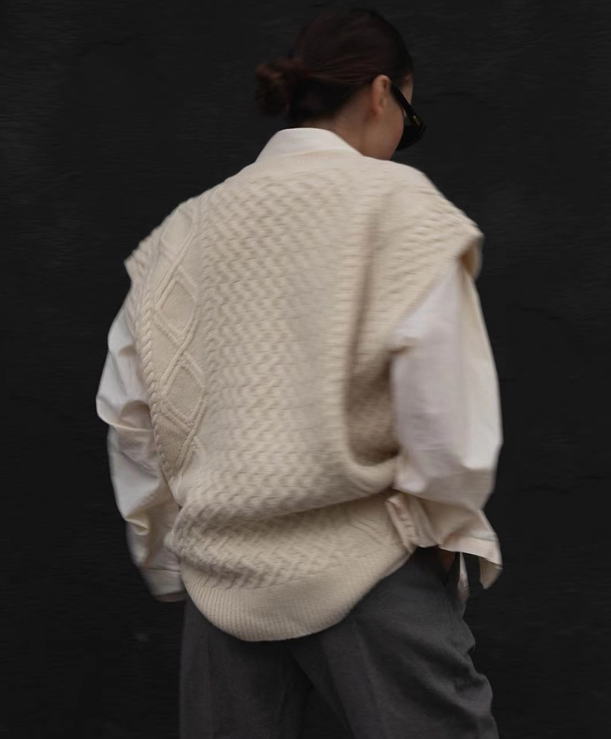 Трикотажный жилет, осенняя майка топ, дизайнерский свитер, свободный крой, V-образный вырез, тренд сезона