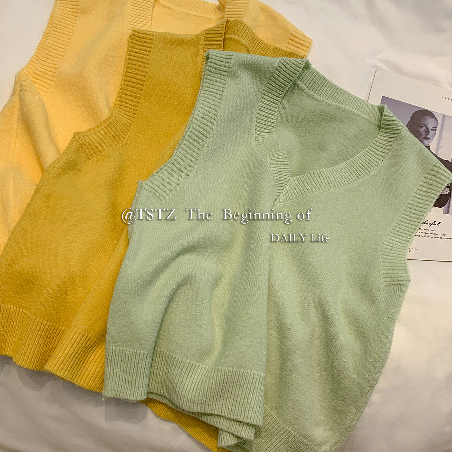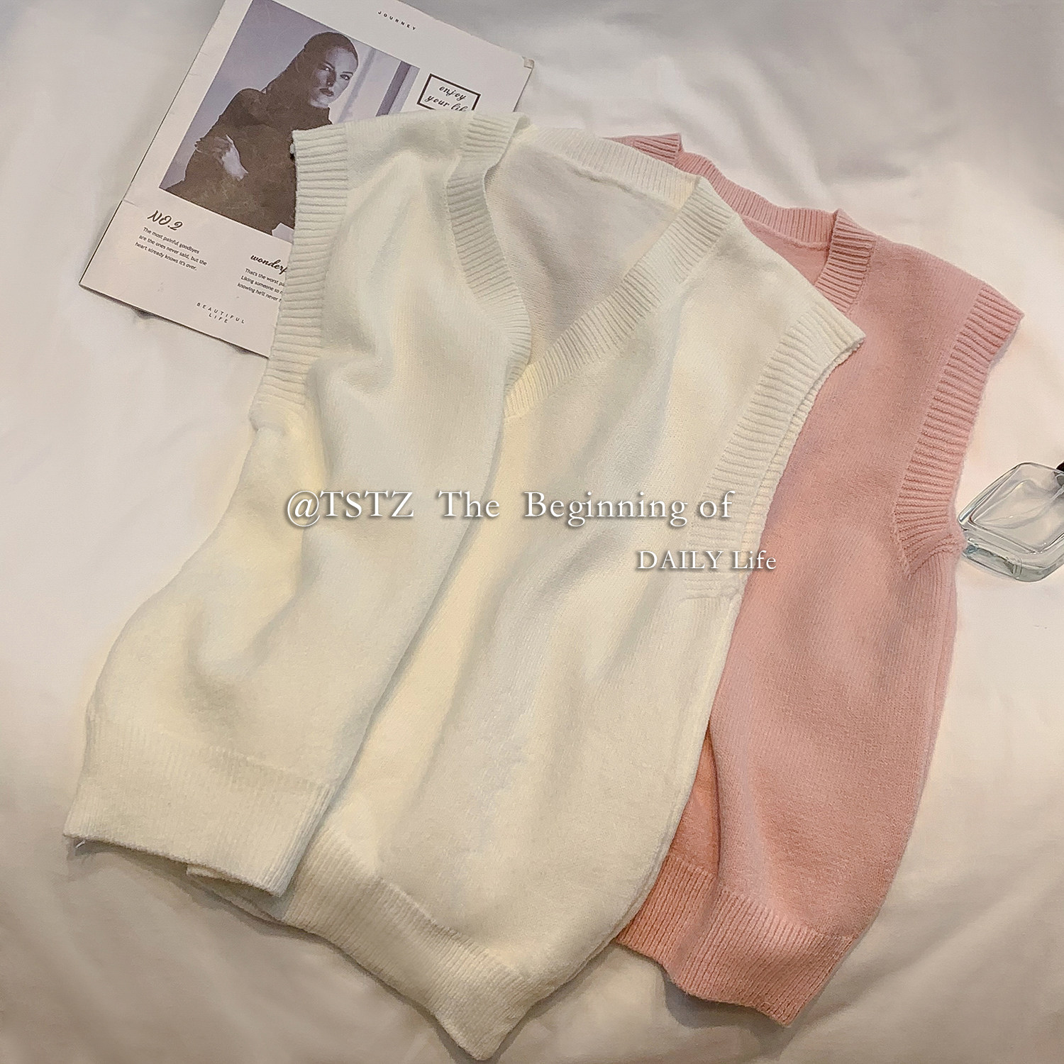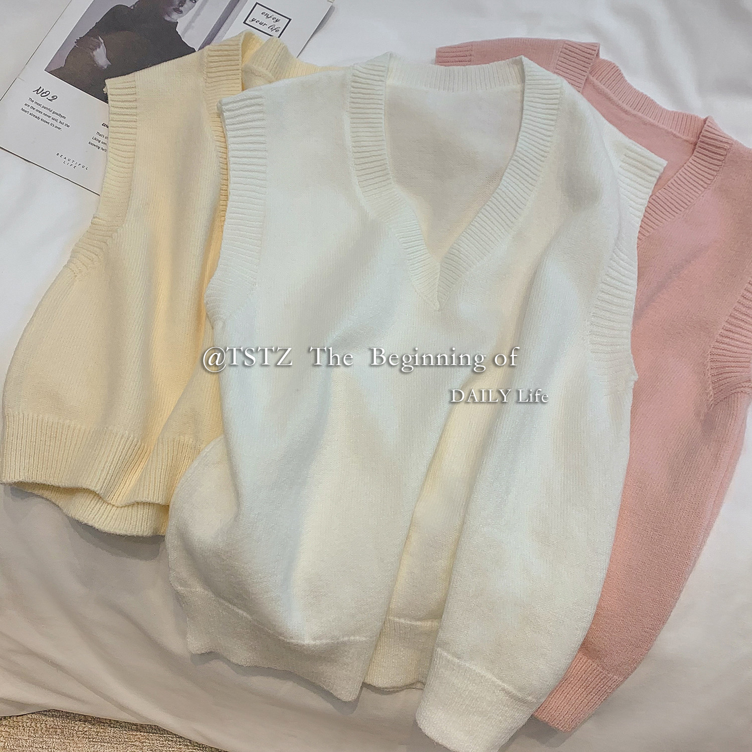 Белый осенний жилет, тонкая майка топ, трикотажный свитер, V-образный вырез