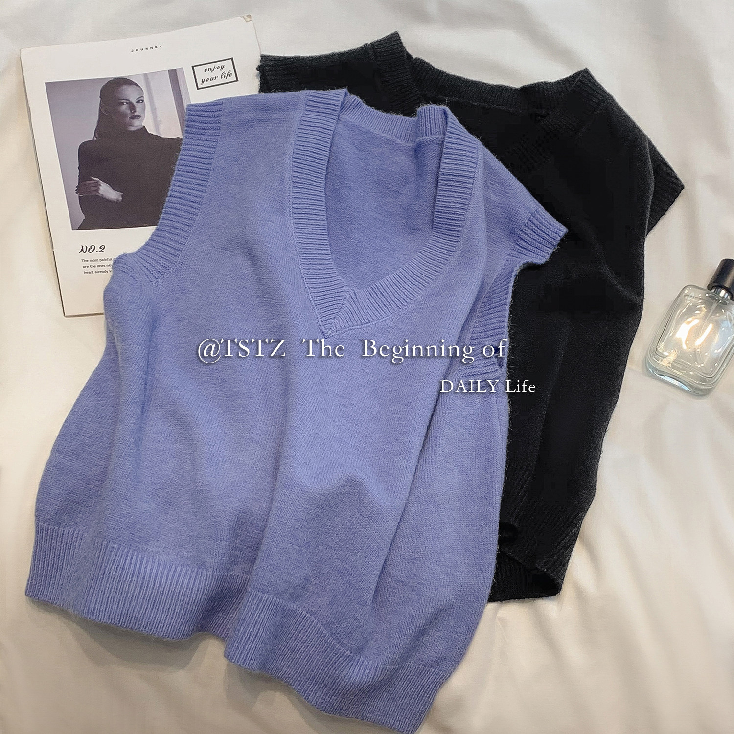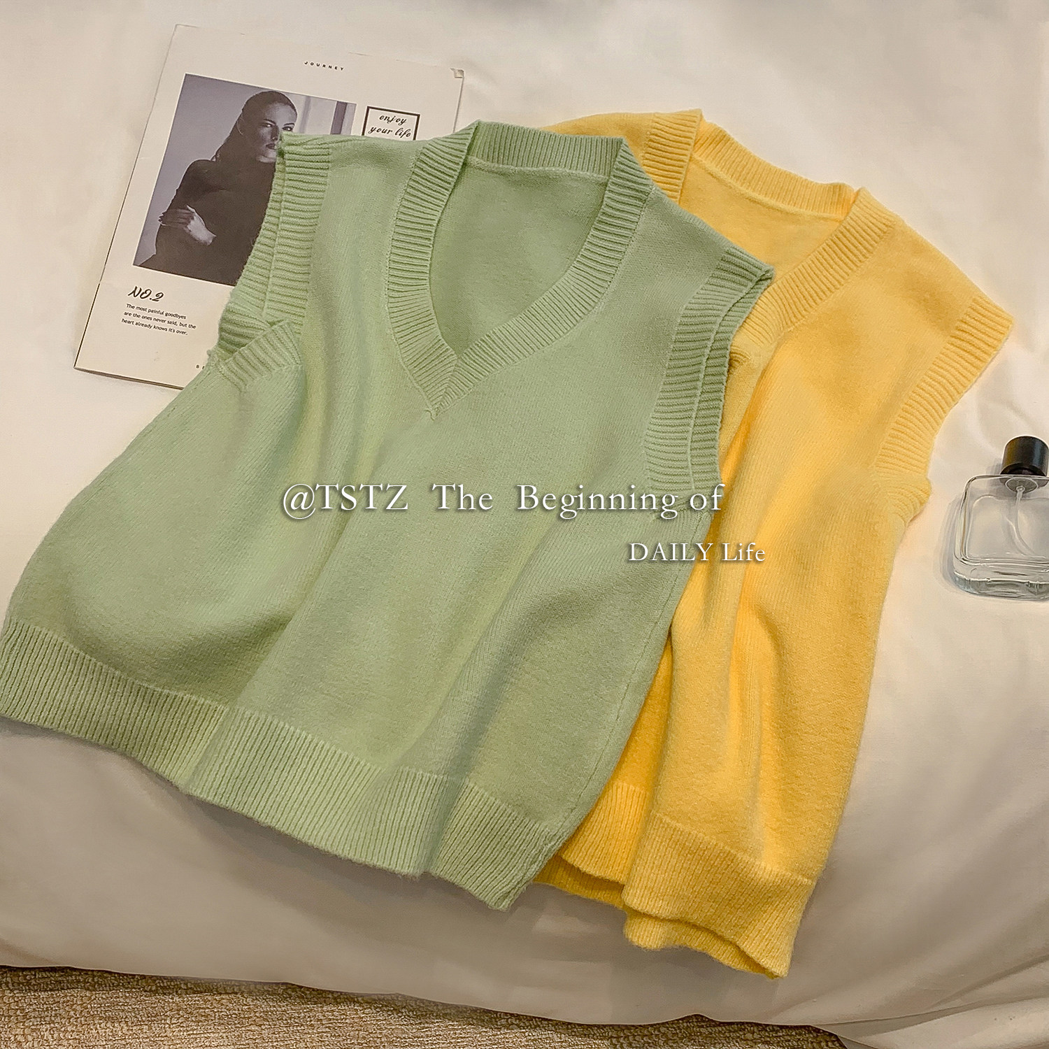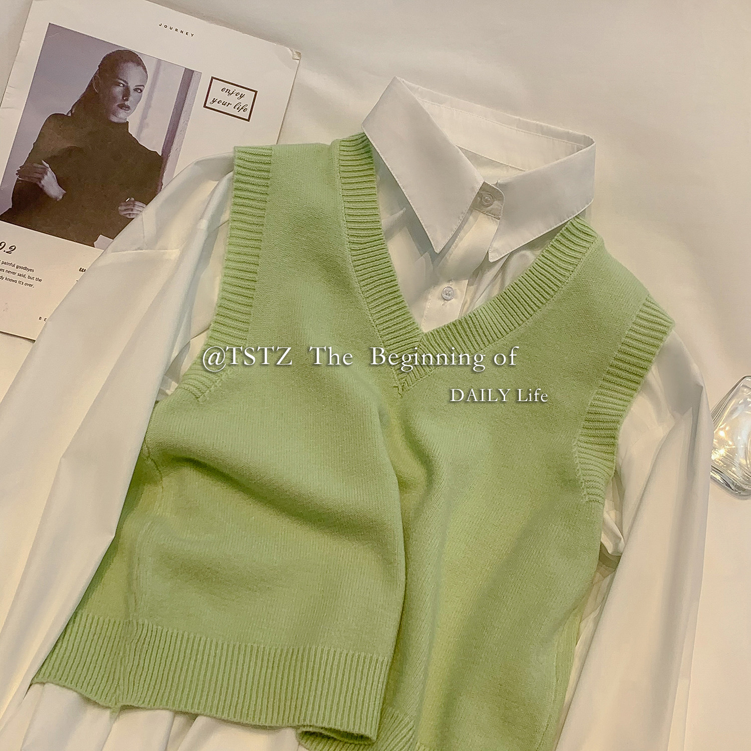 Белый осенний жилет, тонкая майка топ, трикотажный свитер, V-образный вырез