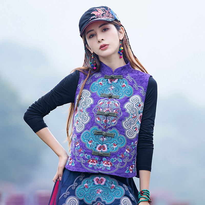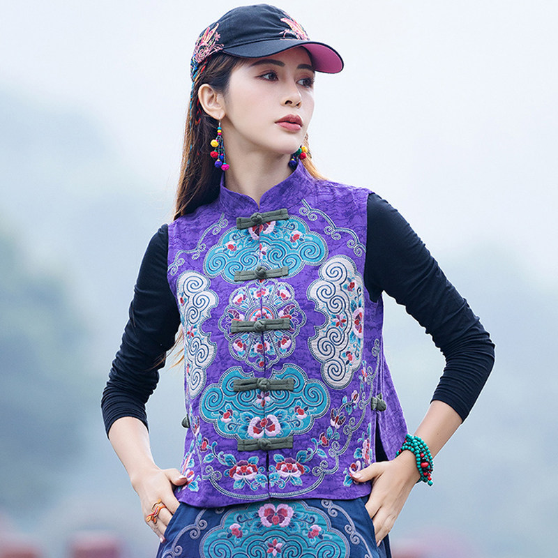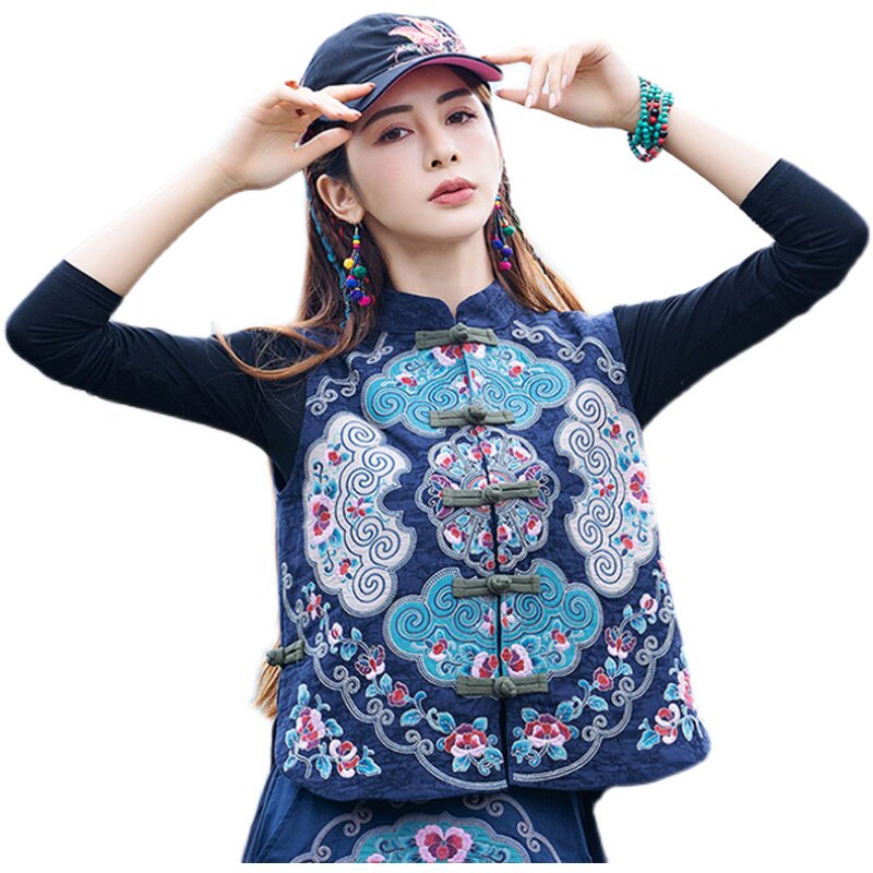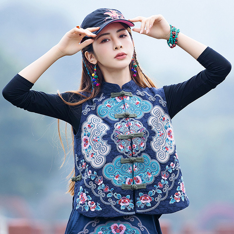 Этнический ретро жилет без рукавов, пальто, куртка, этнический стиль, с вышивкой, китайский стиль