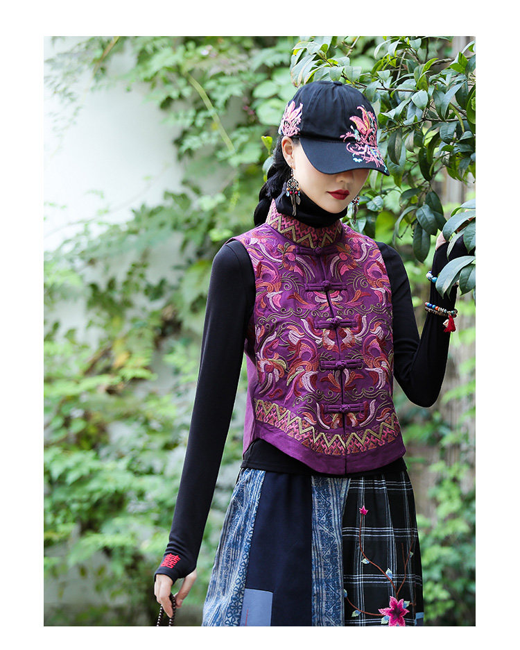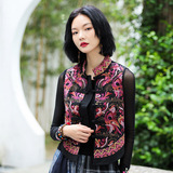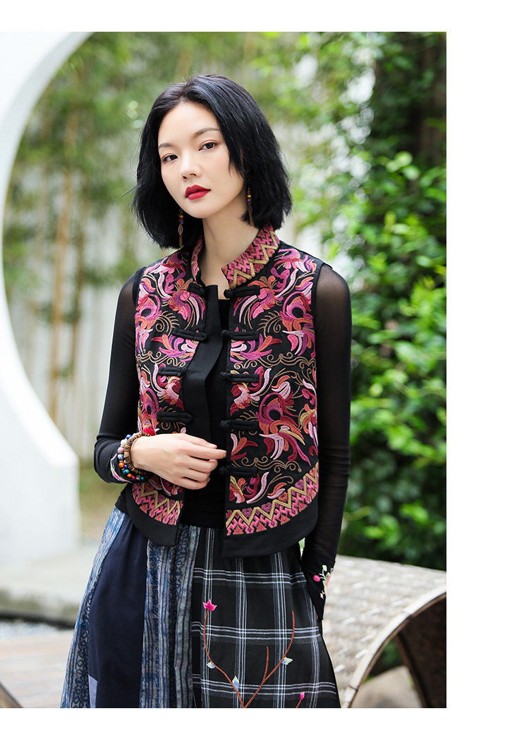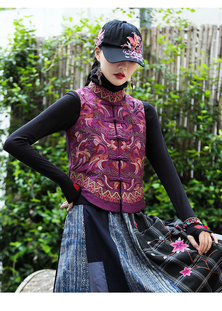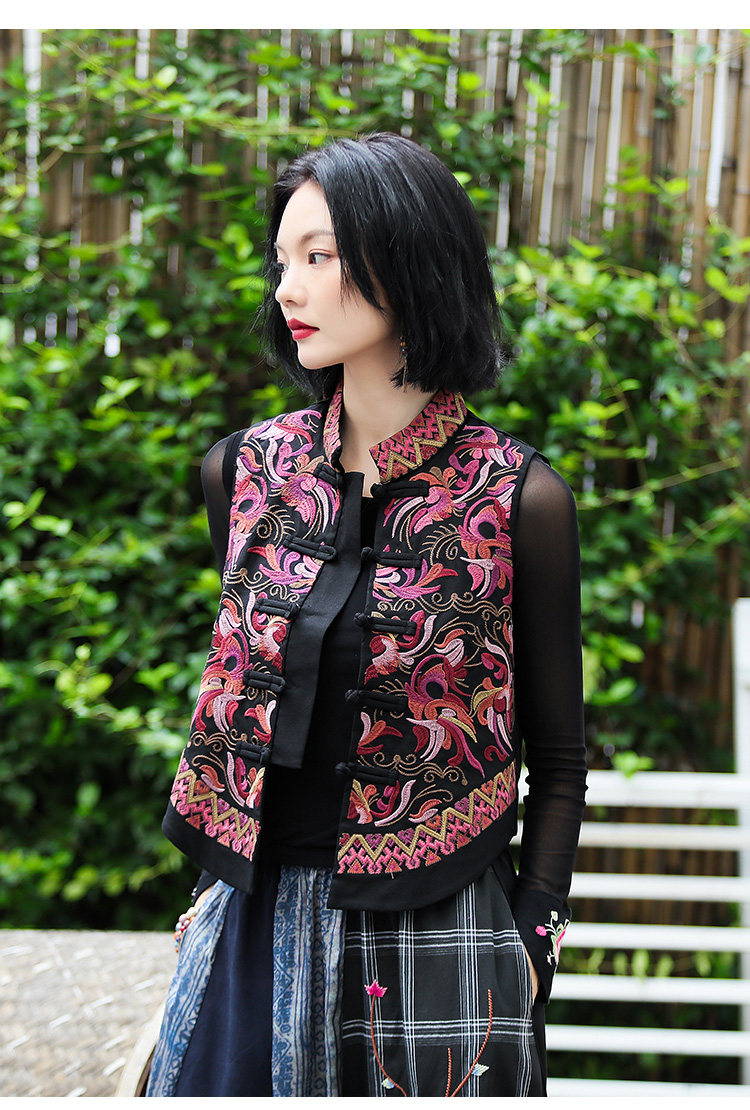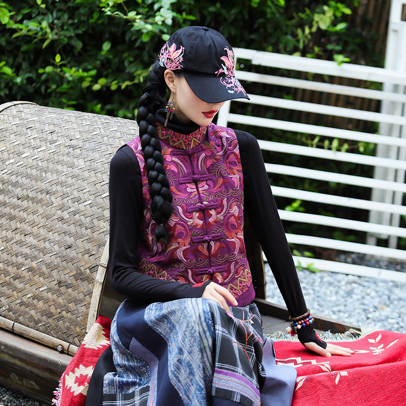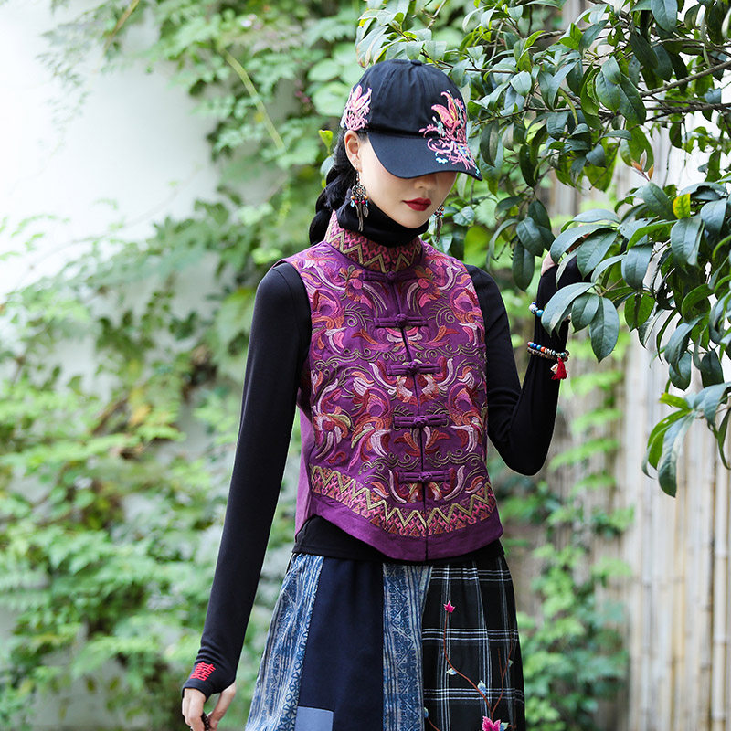 Демисезонный короткий ретро этнический жилет, этнический стиль, из хлопка и льна