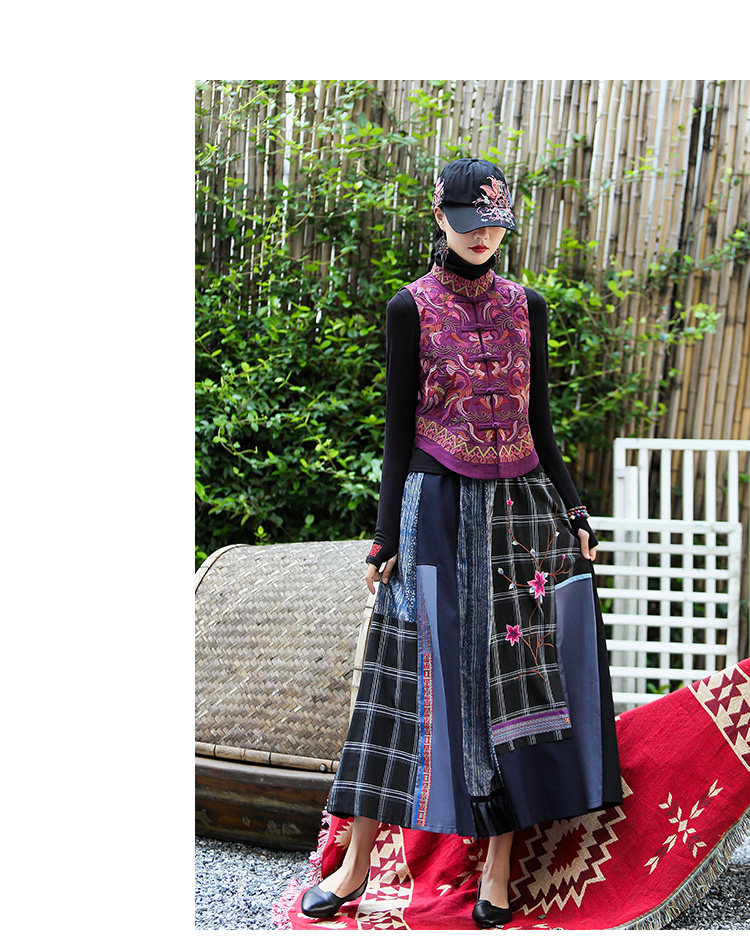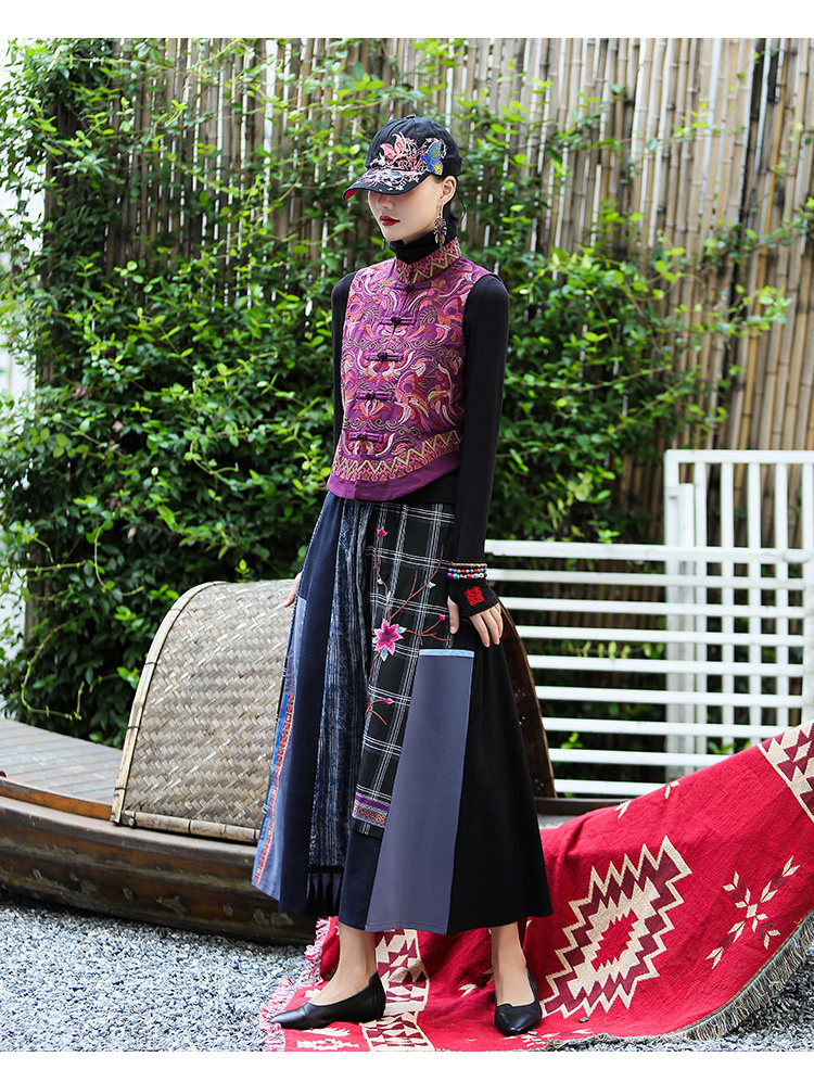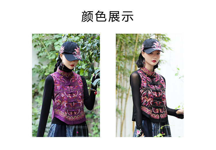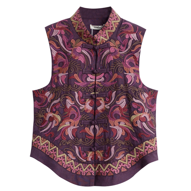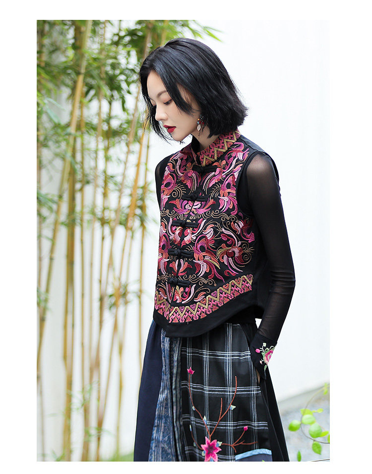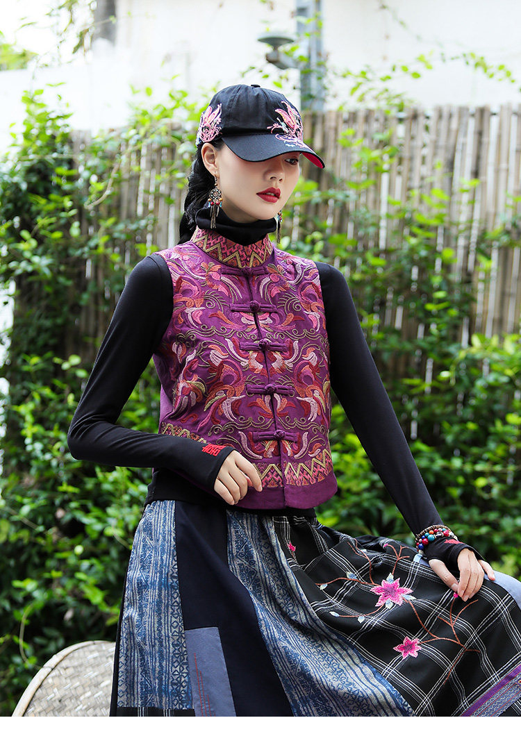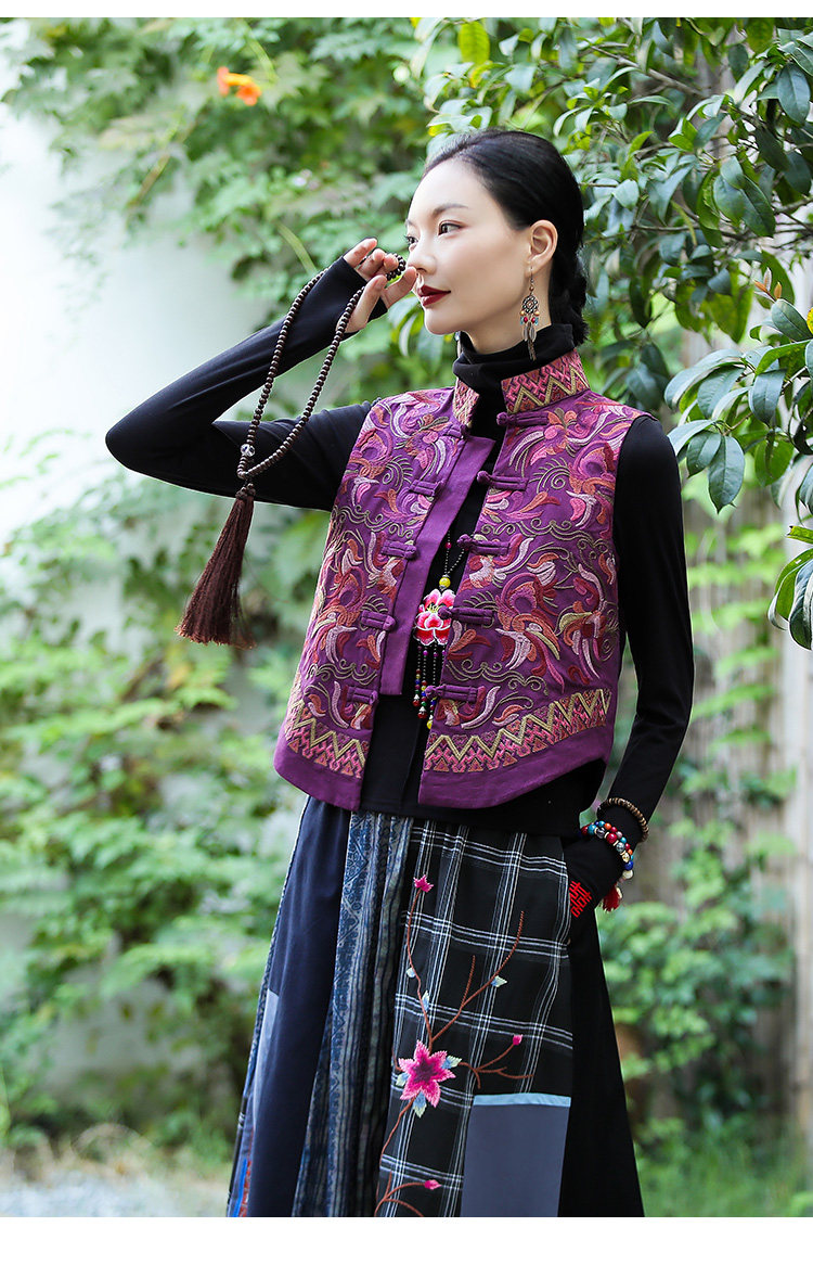 Демисезонный короткий ретро этнический жилет, этнический стиль, из хлопка и льна