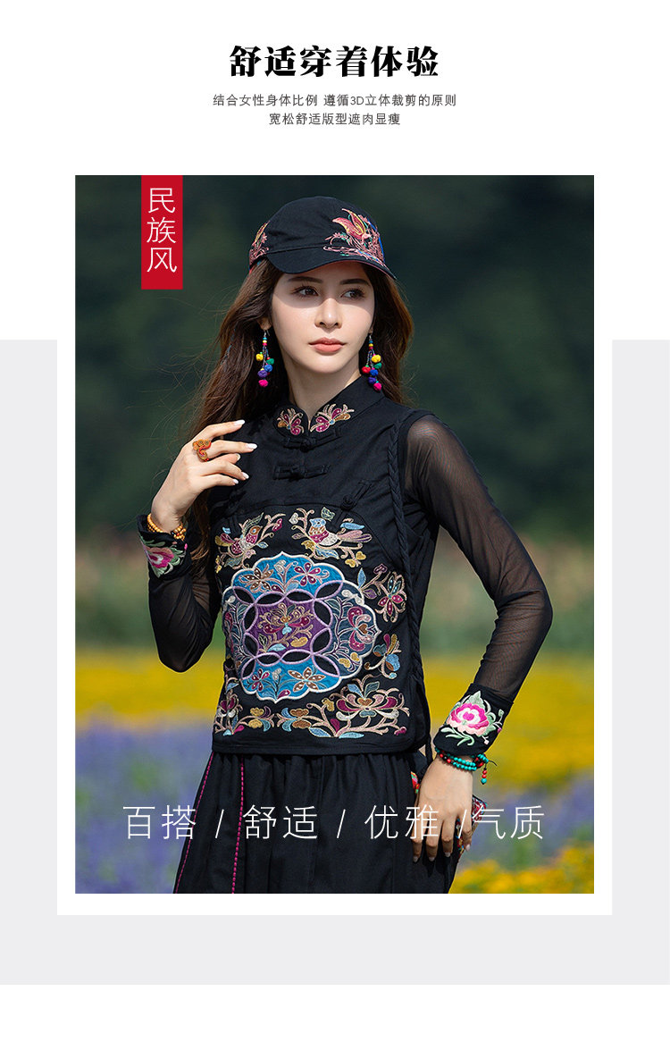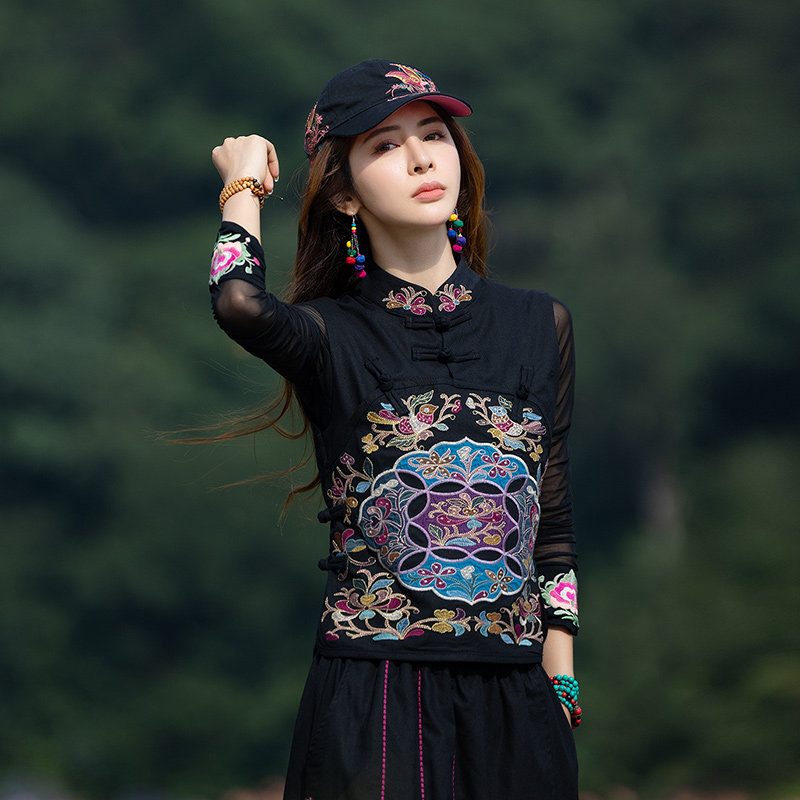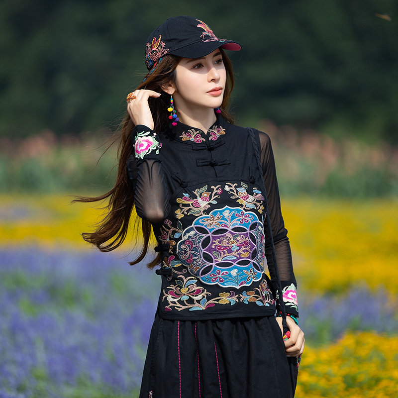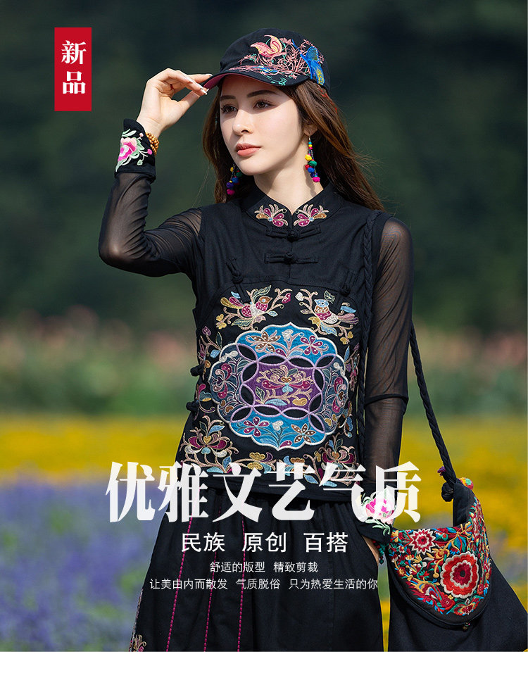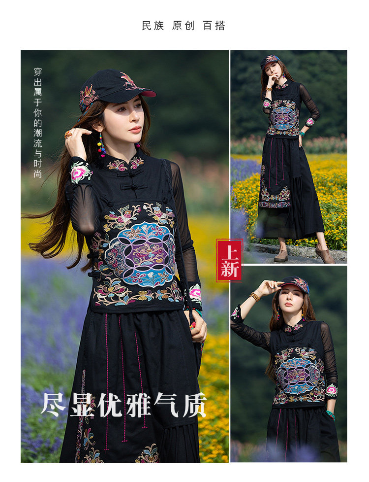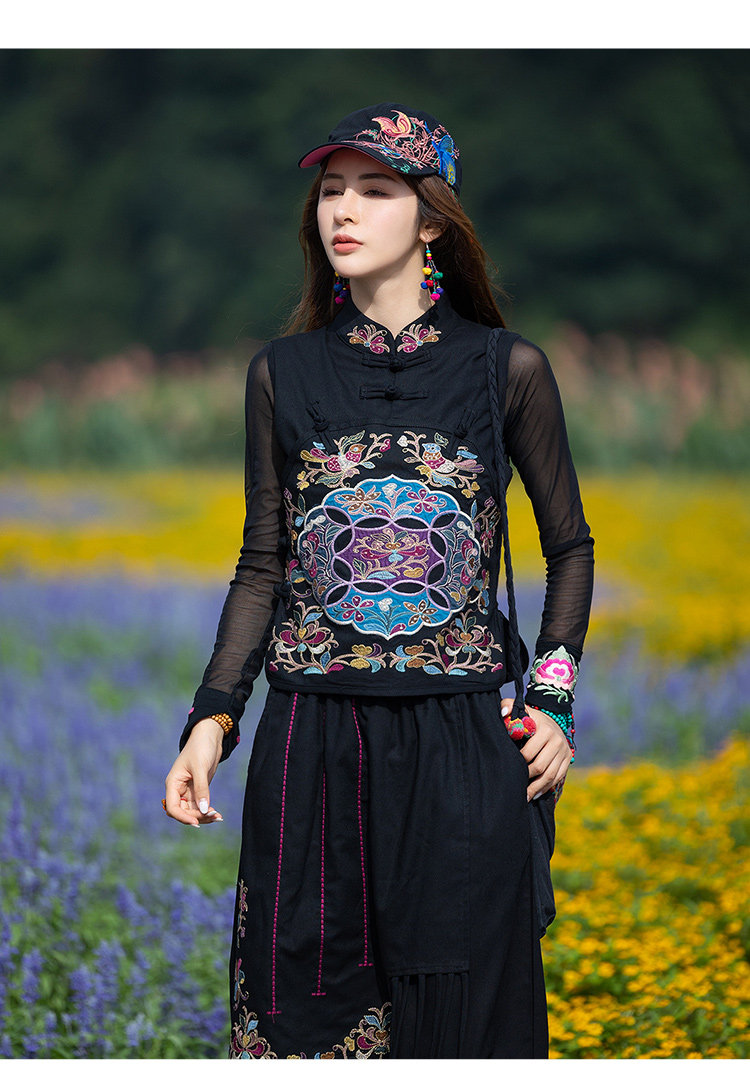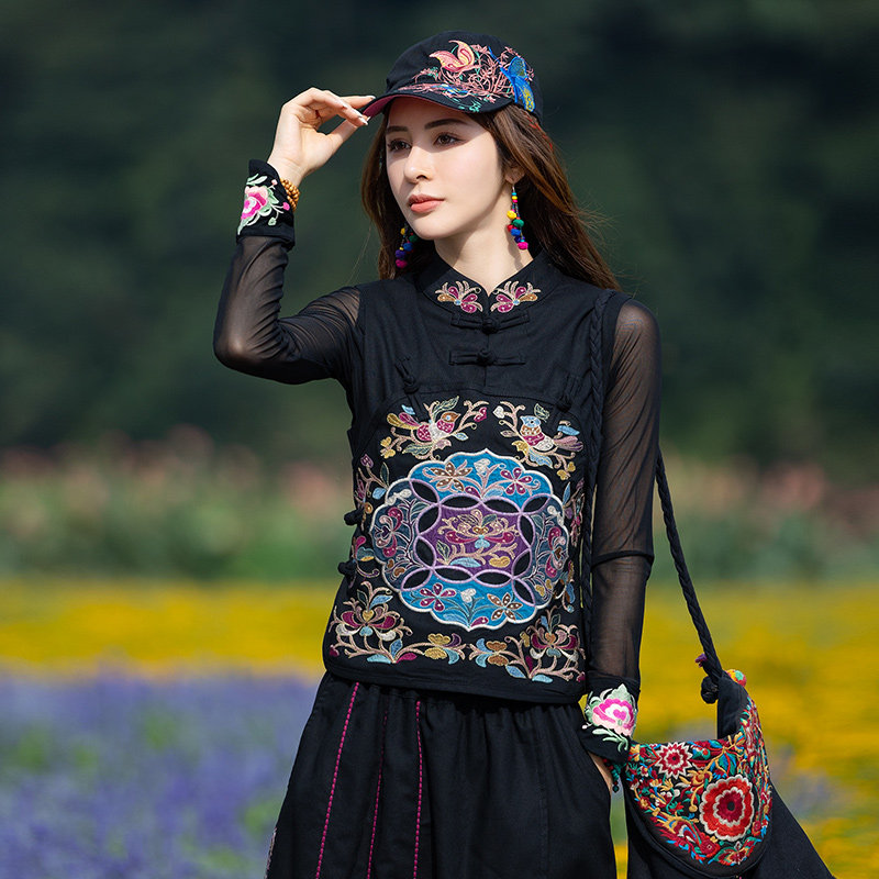 Этнический черный жилет, 2021 года, городской стиль, этнический стиль, с вышивкой