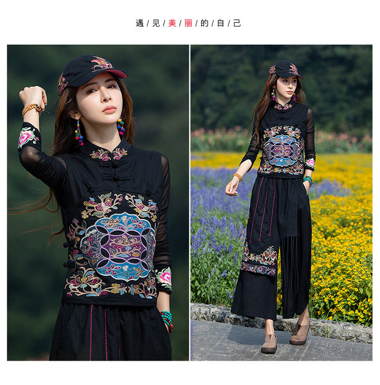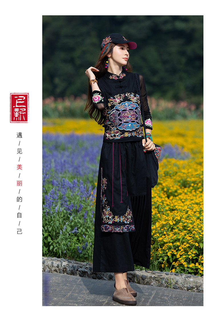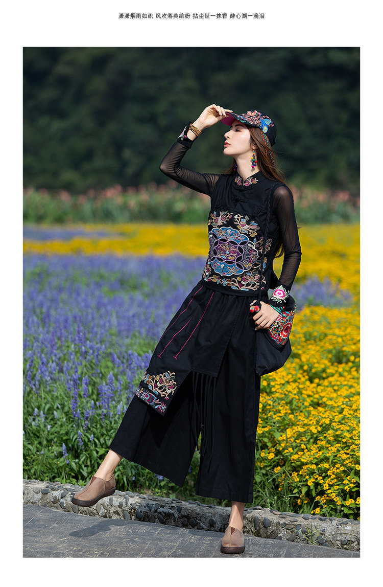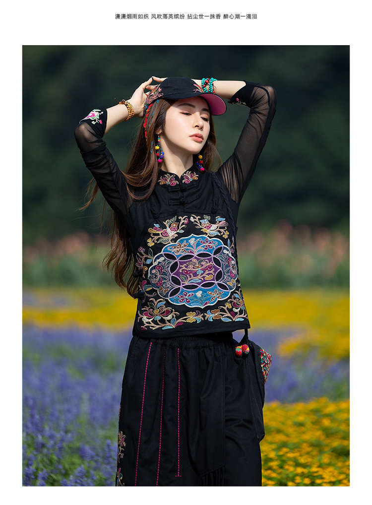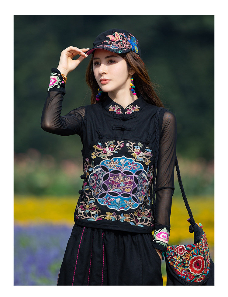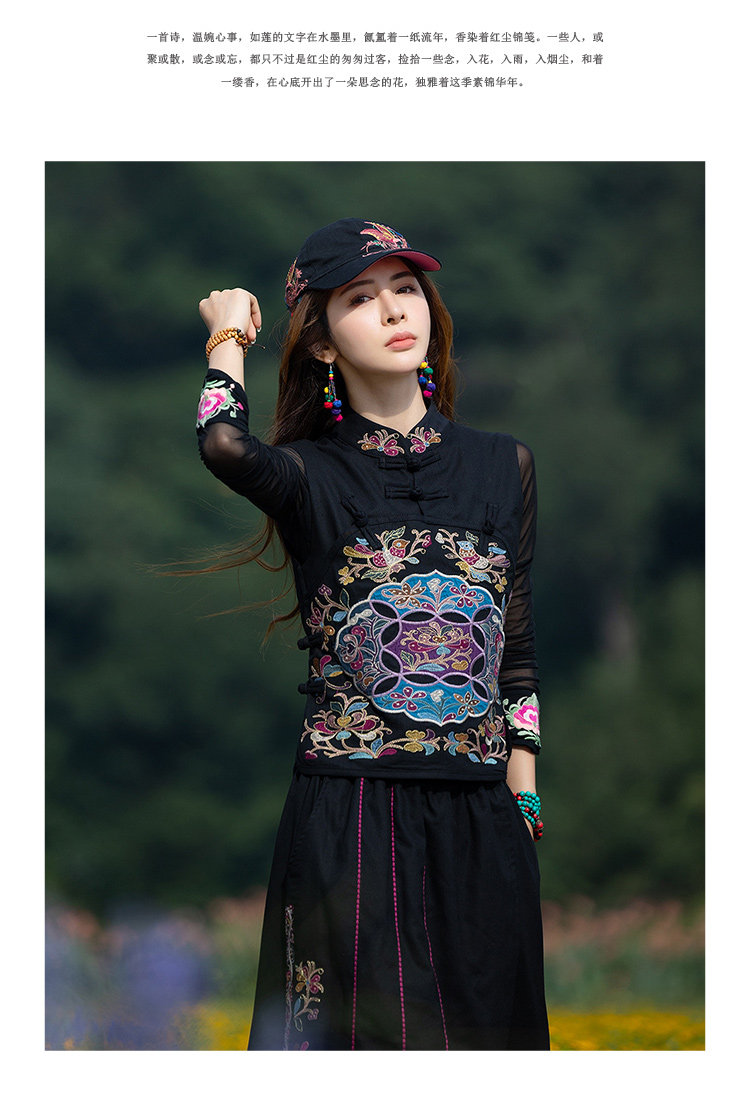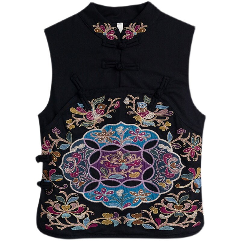 Этнический черный жилет, 2021 года, городской стиль, этнический стиль, с вышивкой