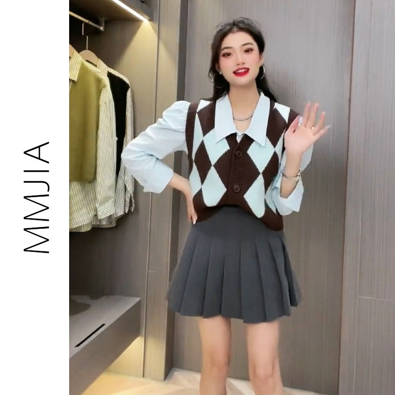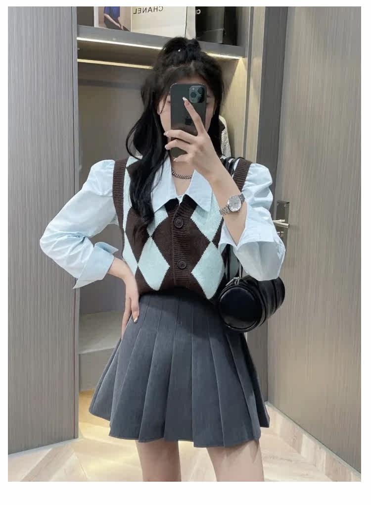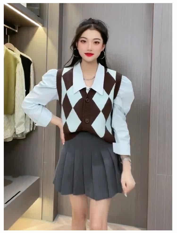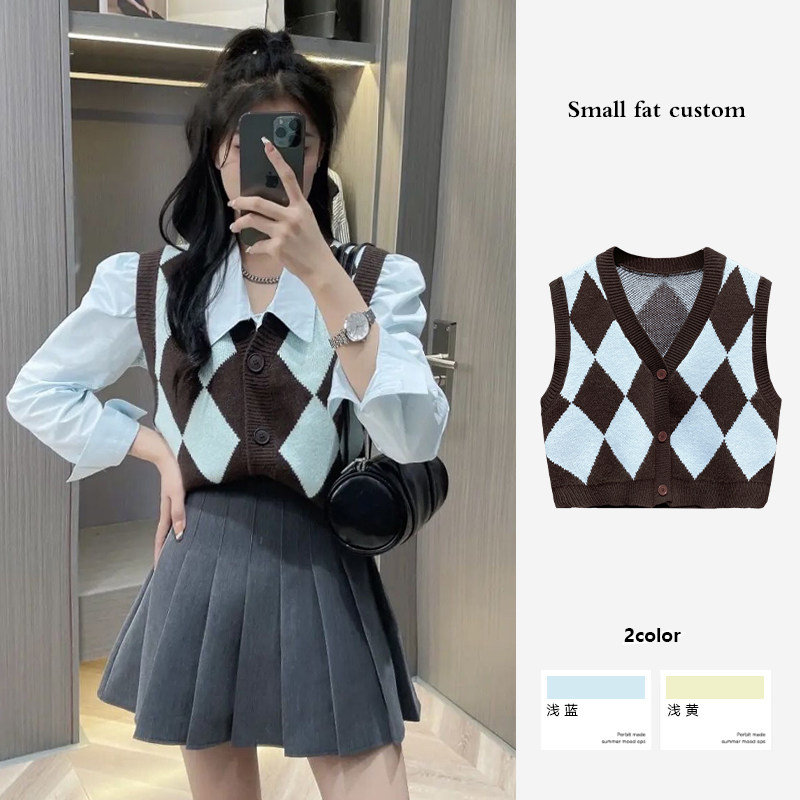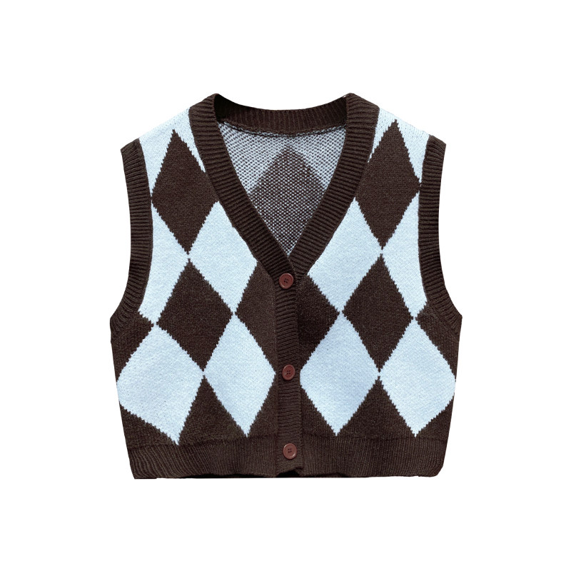 Трикотажный жилет с ромбовидным узором, осенний кардиган, кашемировый свитер, свободный крой