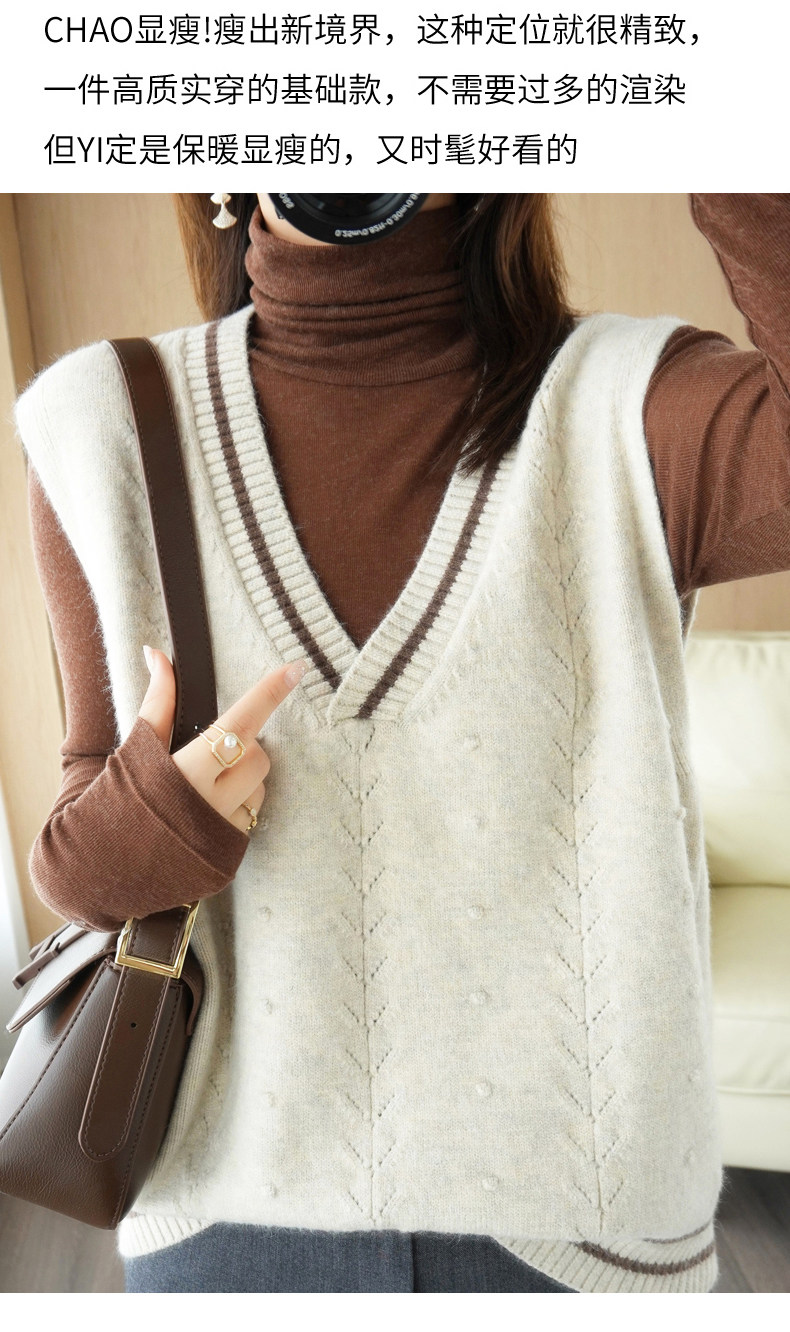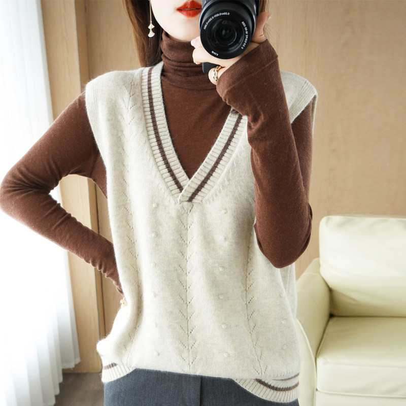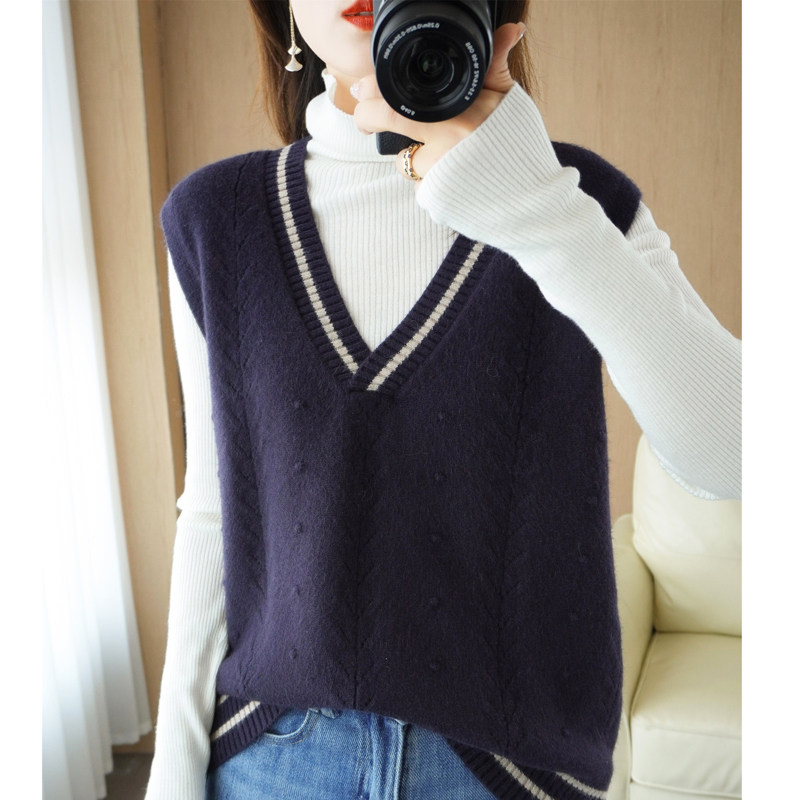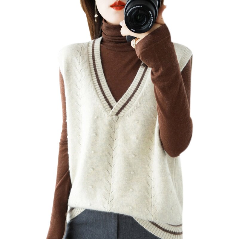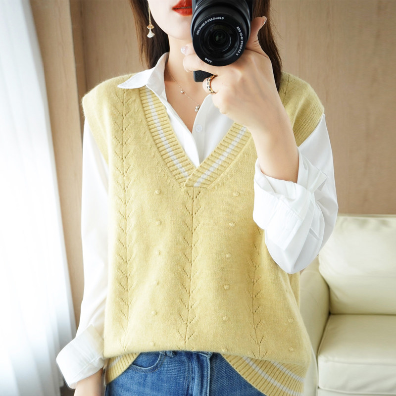 Демисезонный шерстяной модный жилет, свитер, V-образный вырез, коллекция 2021, свободный крой, в корейском стиле