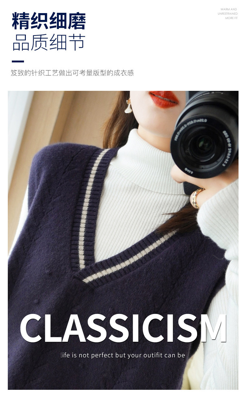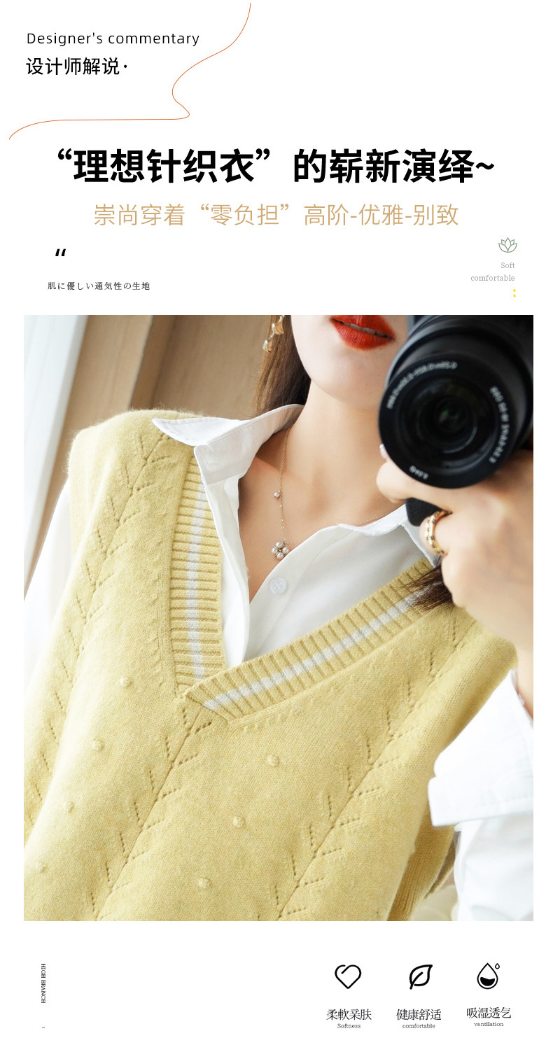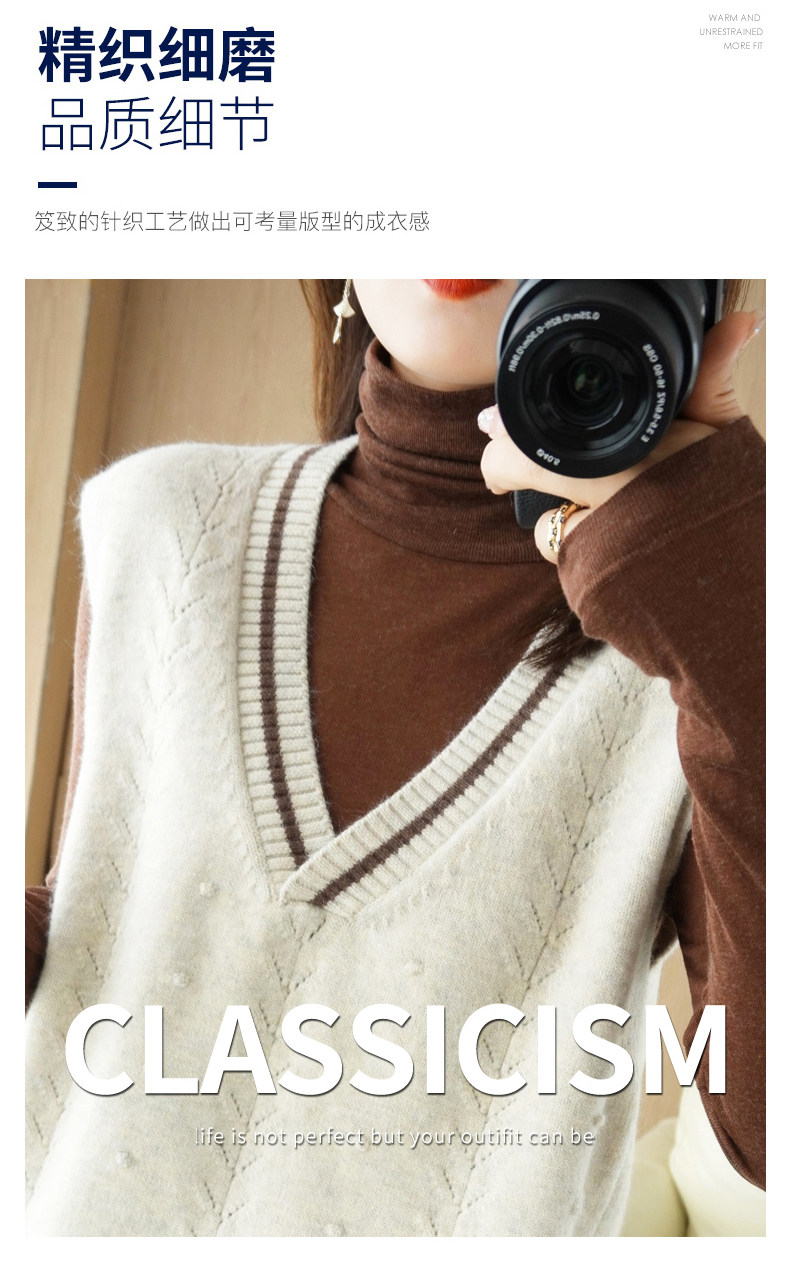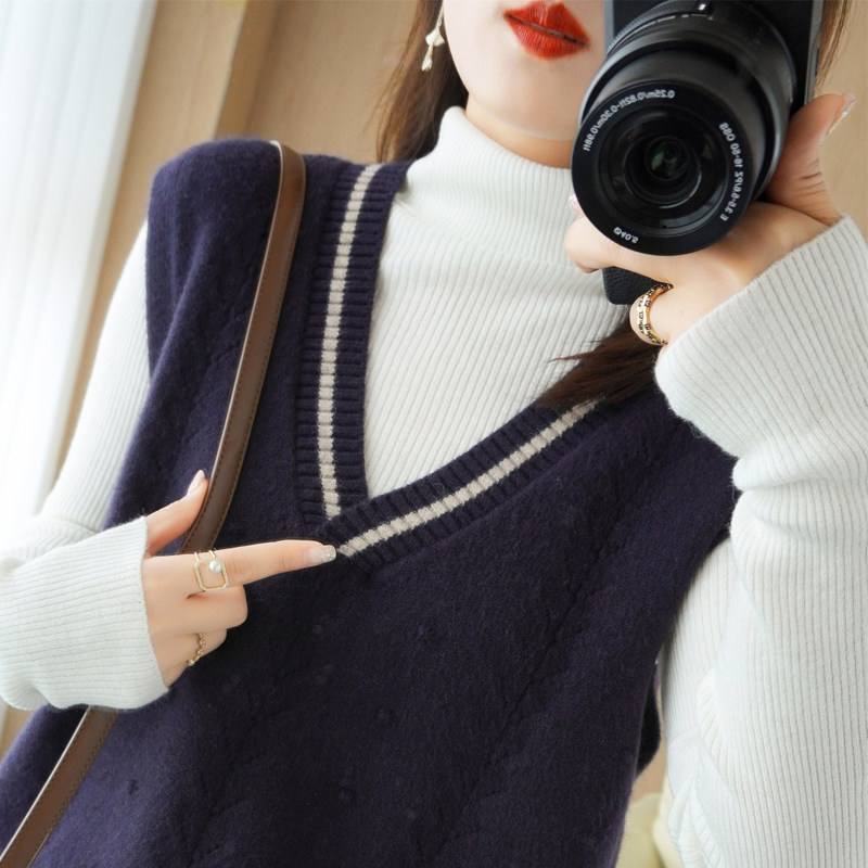 Демисезонный шерстяной модный жилет, свитер, V-образный вырез, коллекция 2021, свободный крой, в корейском стиле