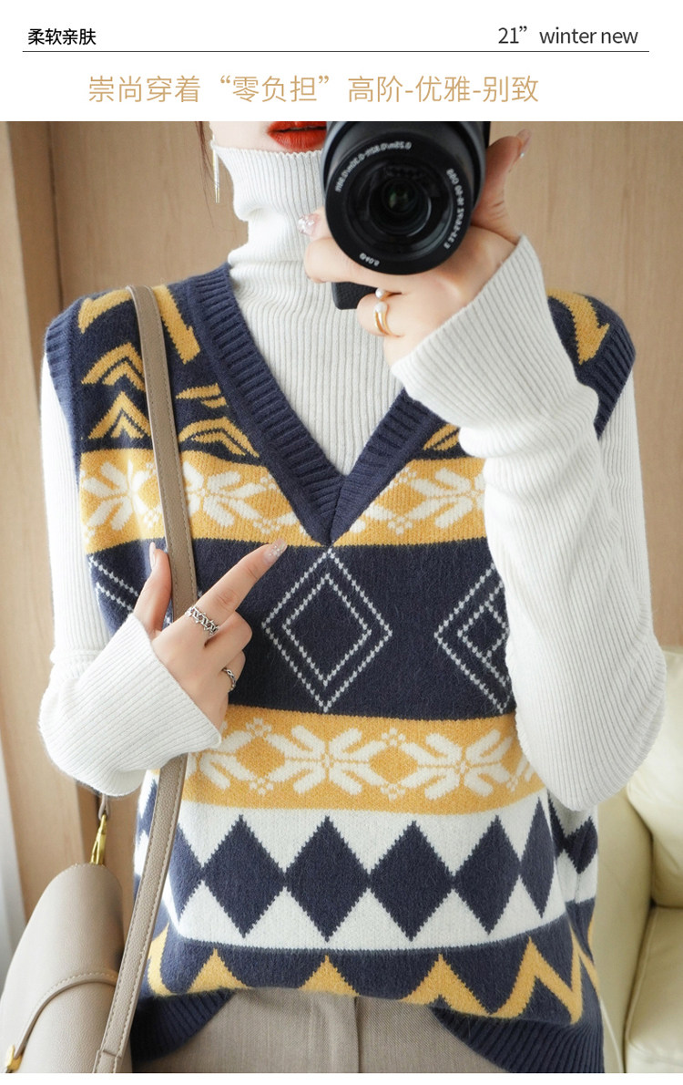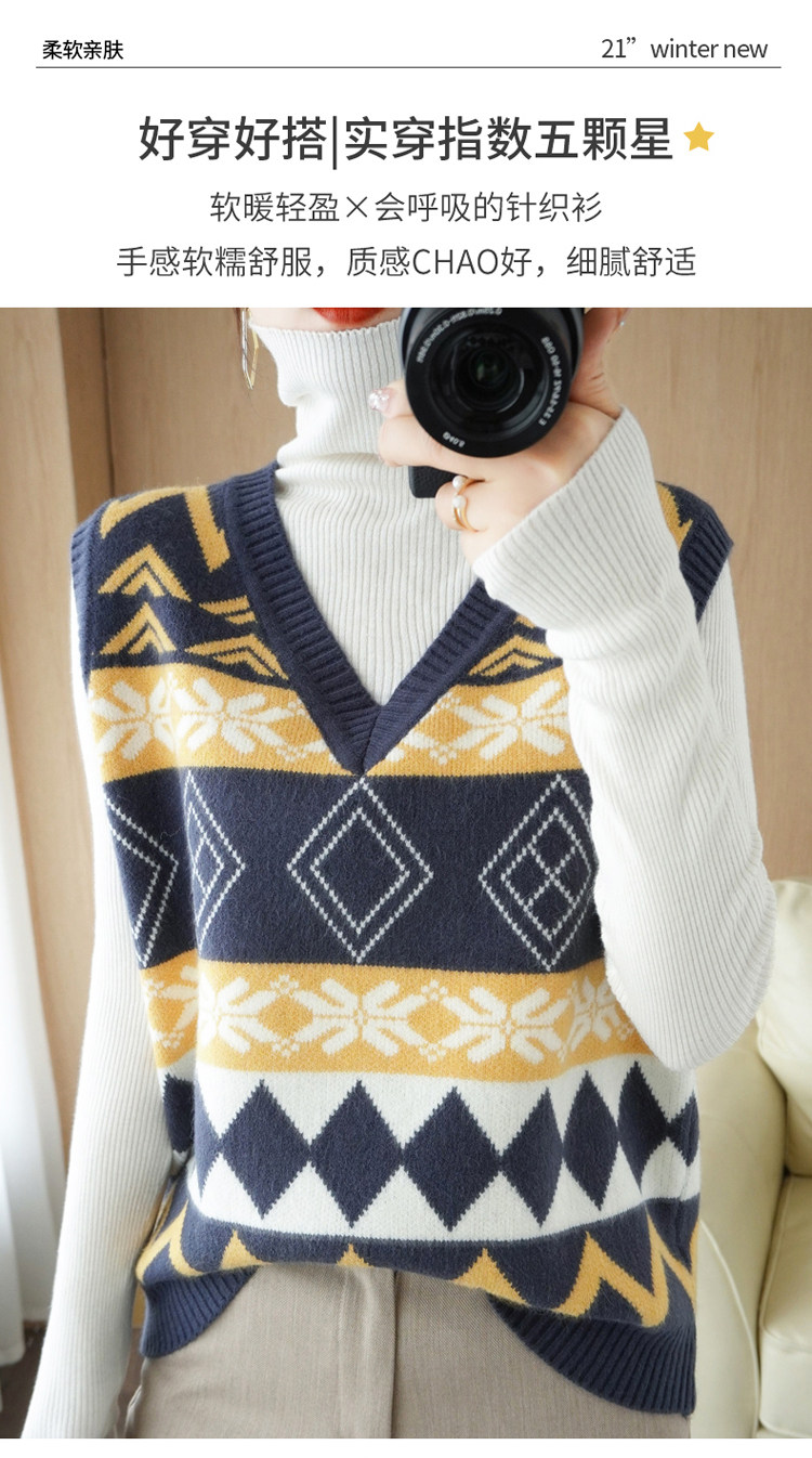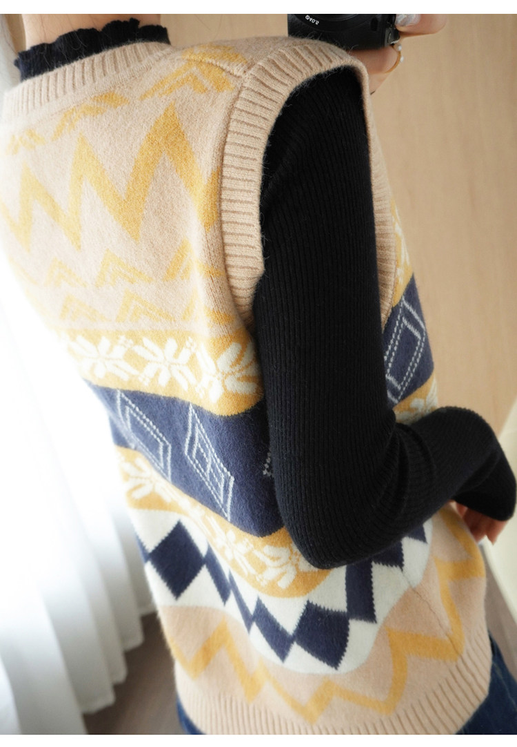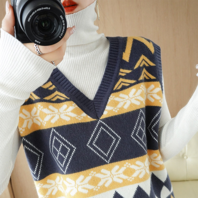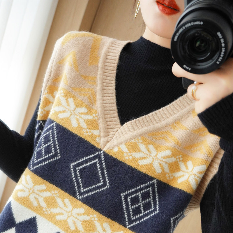 Шерстяной жилет, куртка без рукавов, кашемировый ретро свитер для отдыха, V-образный вырез, свободный крой