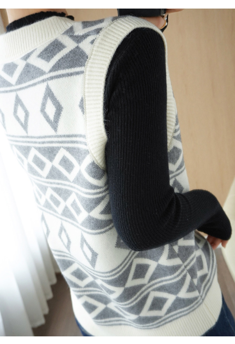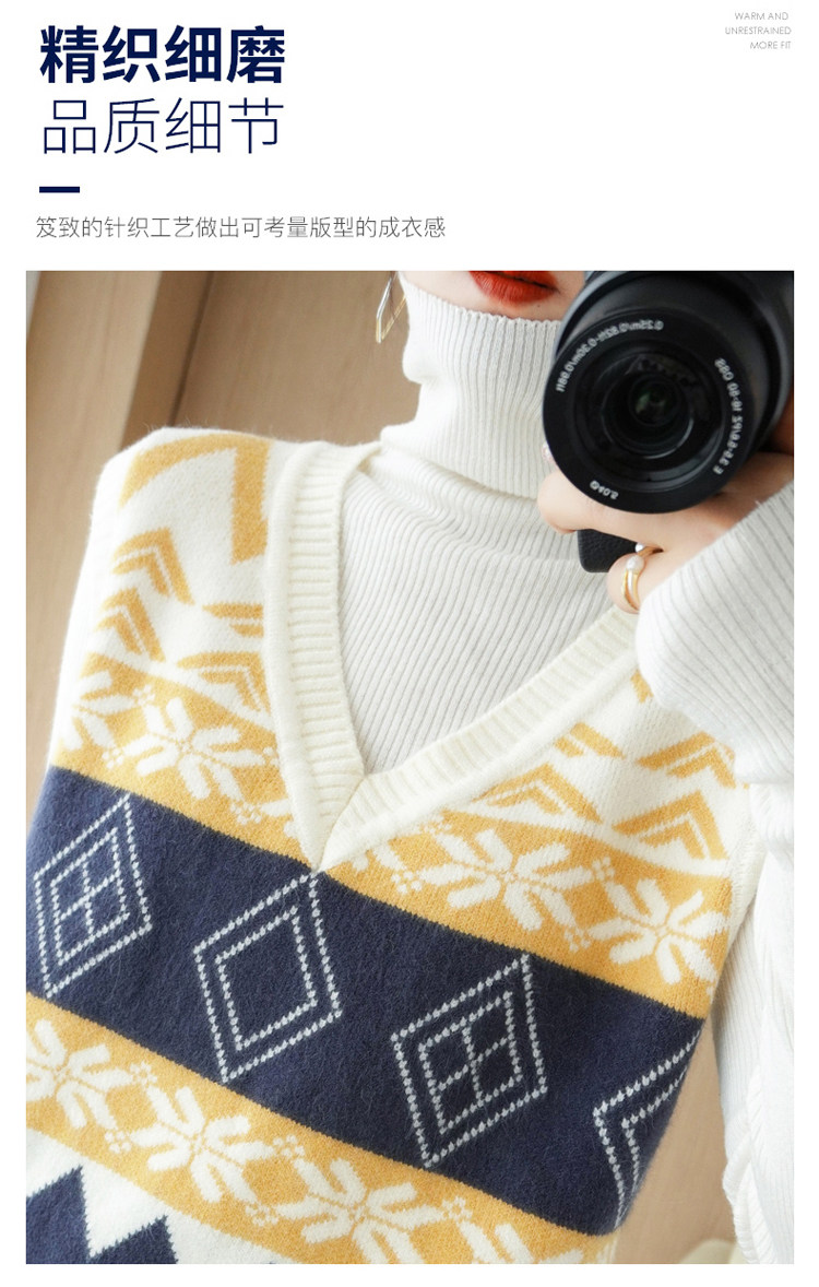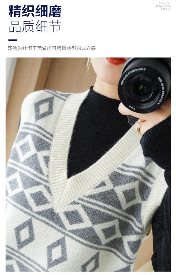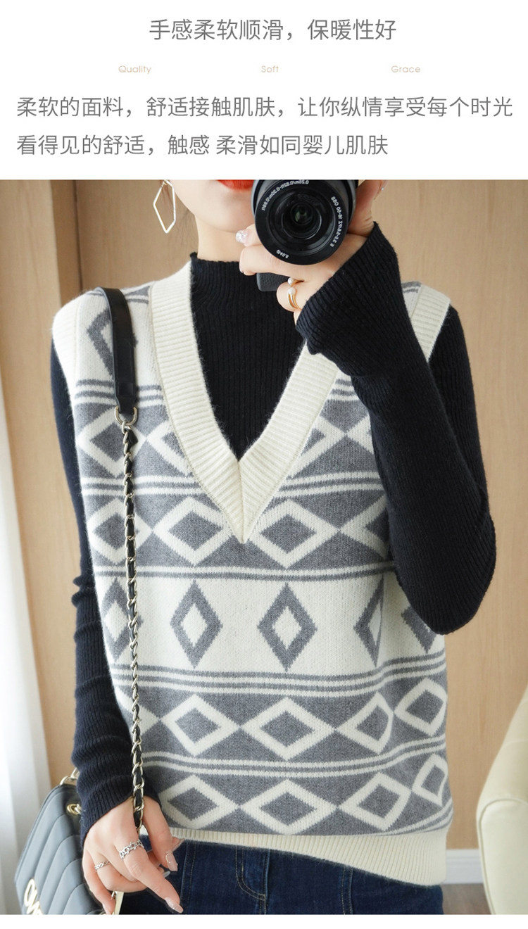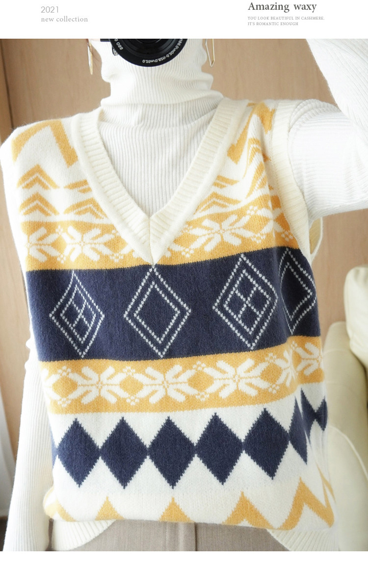 Шерстяной жилет, куртка без рукавов, кашемировый ретро свитер для отдыха, V-образный вырез, свободный крой