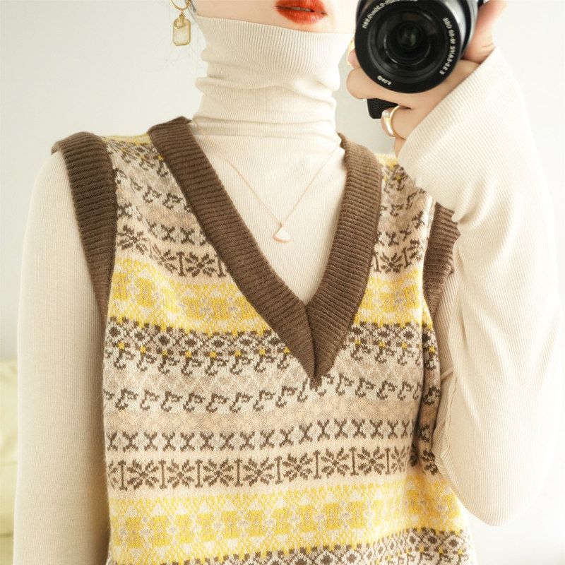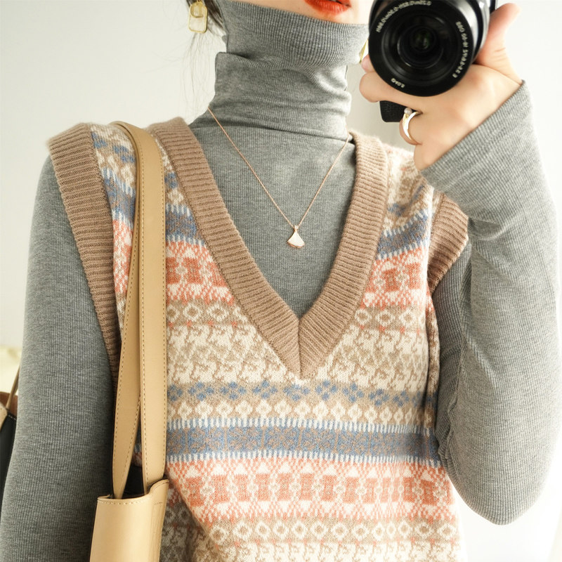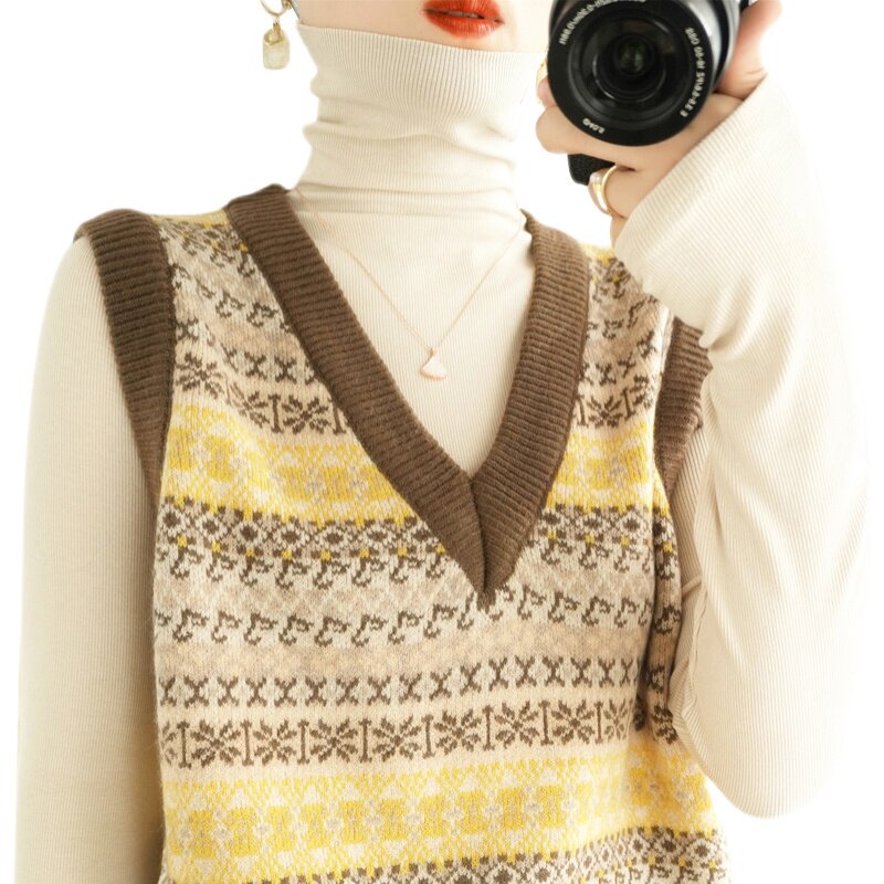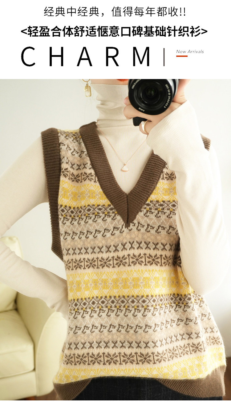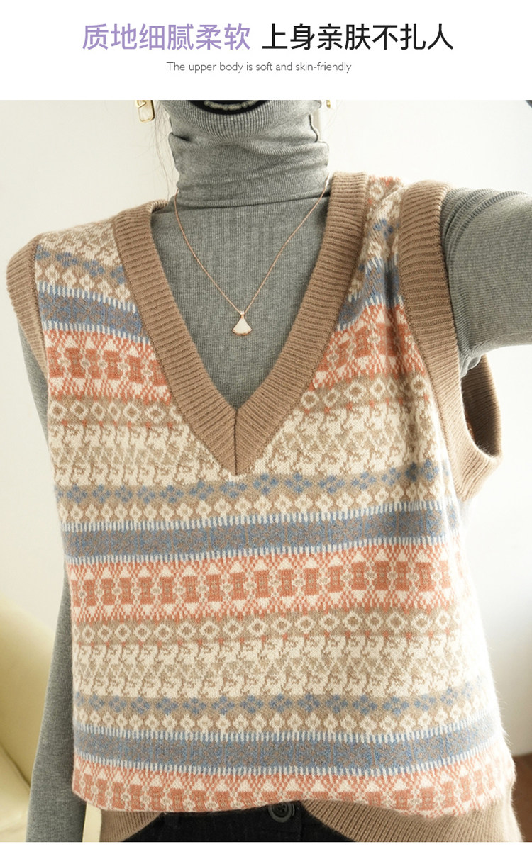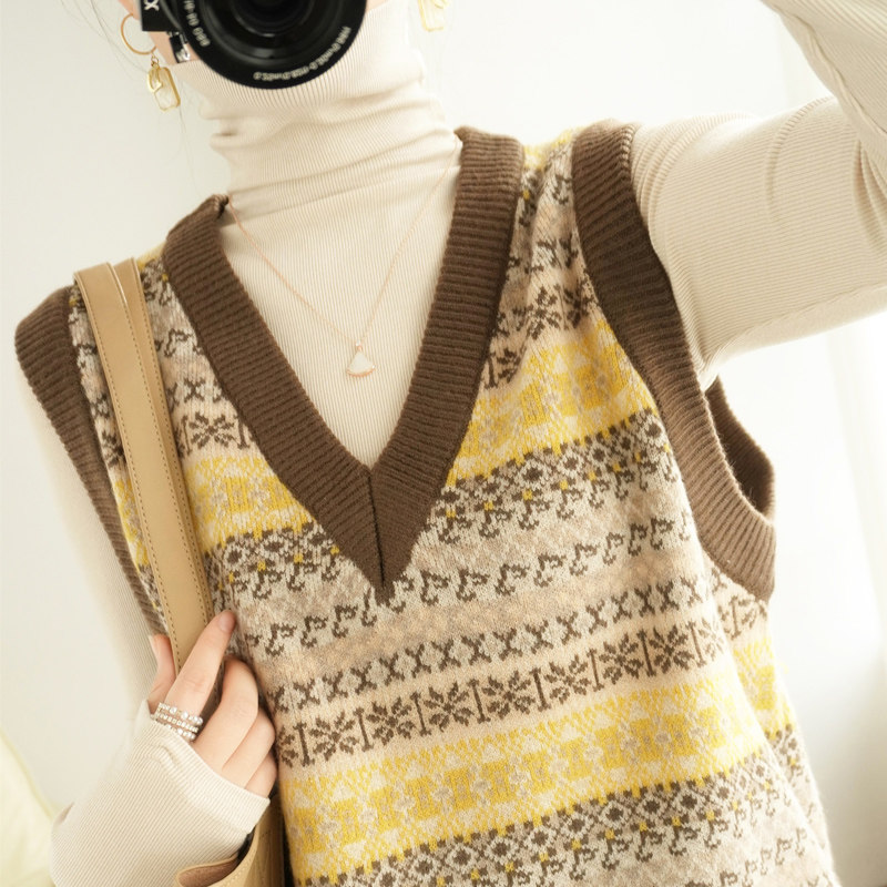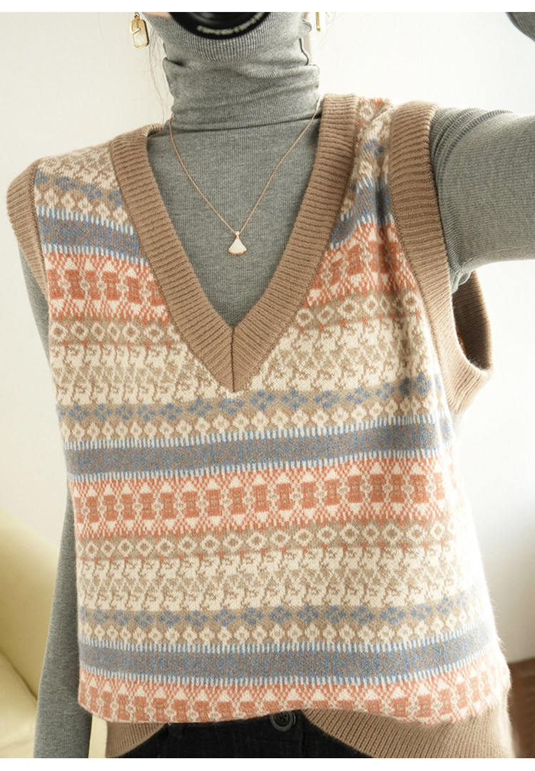 Ретро трикотажный жилет, куртка без рукавов, короткий свитер, оверсайз, V-образный вырез