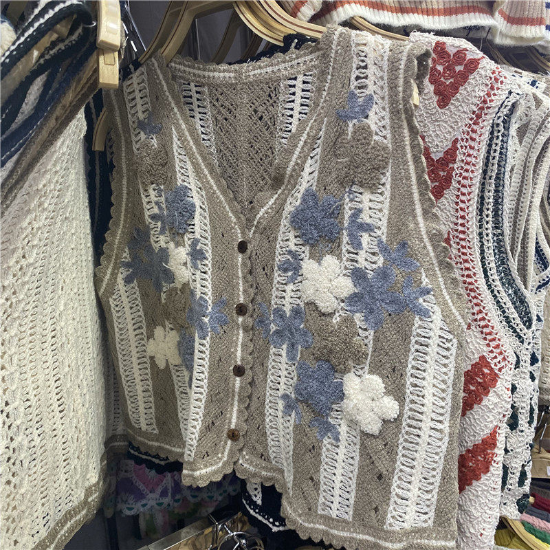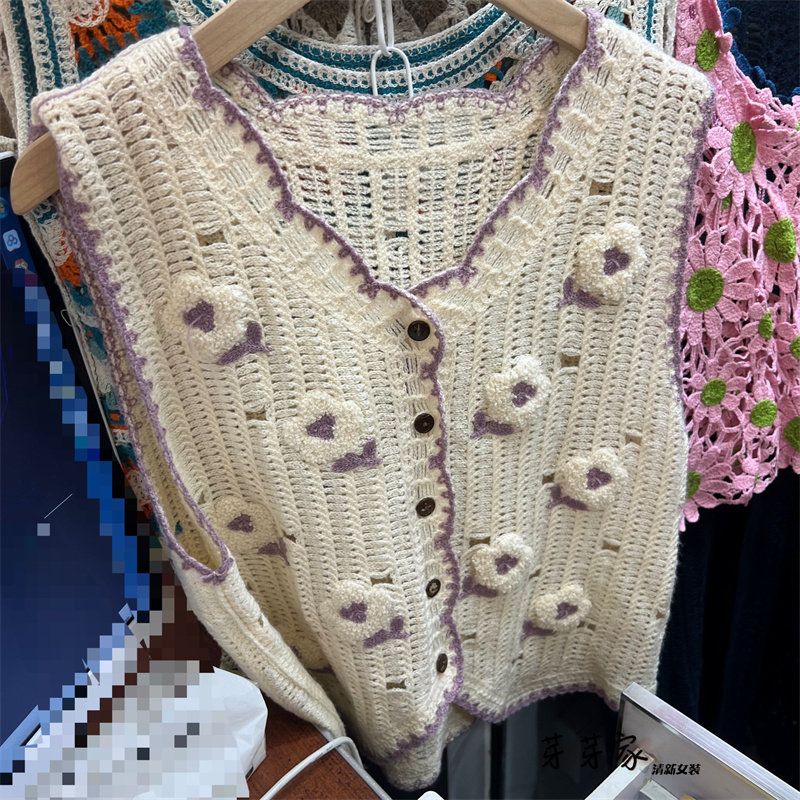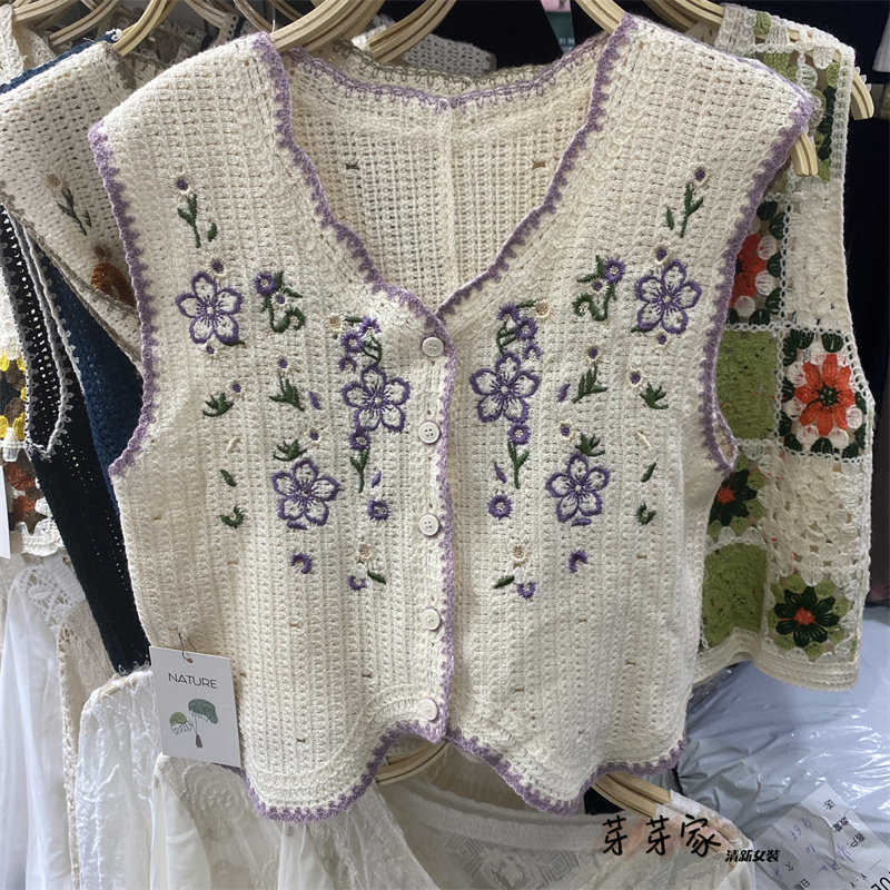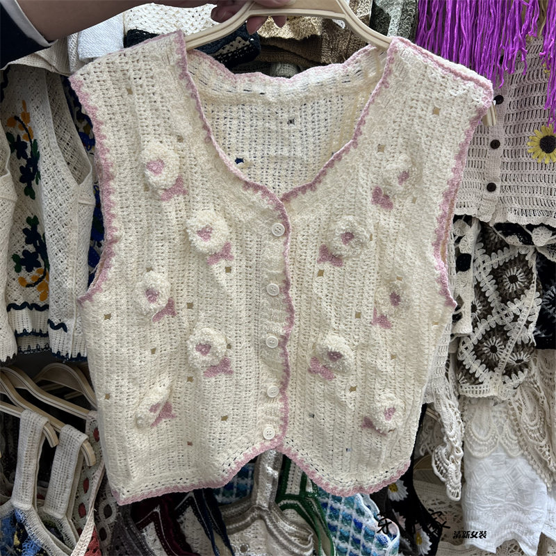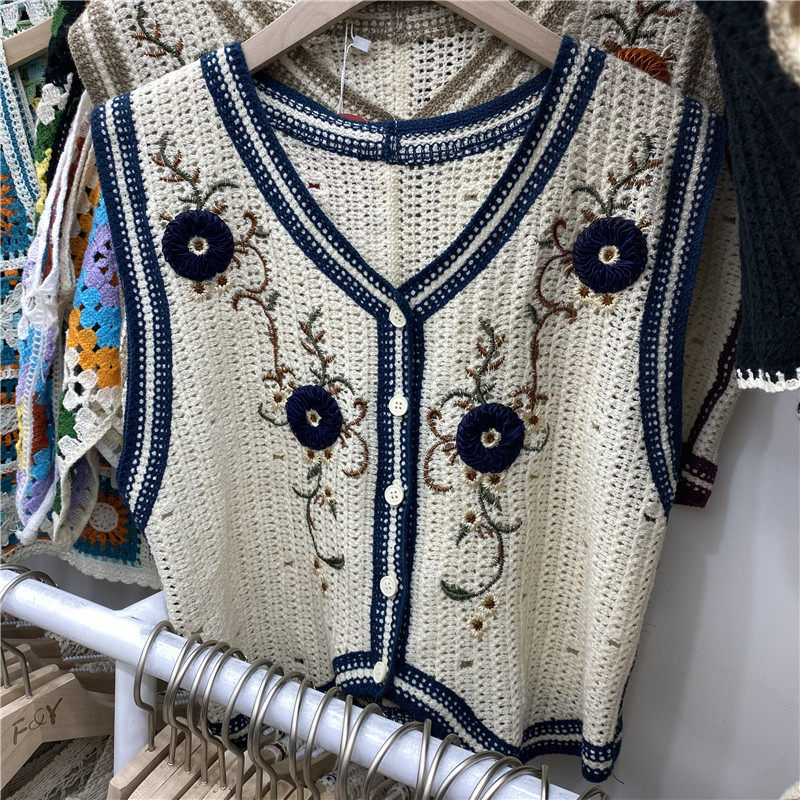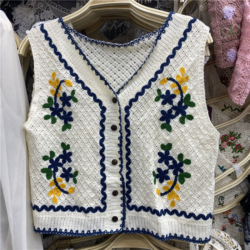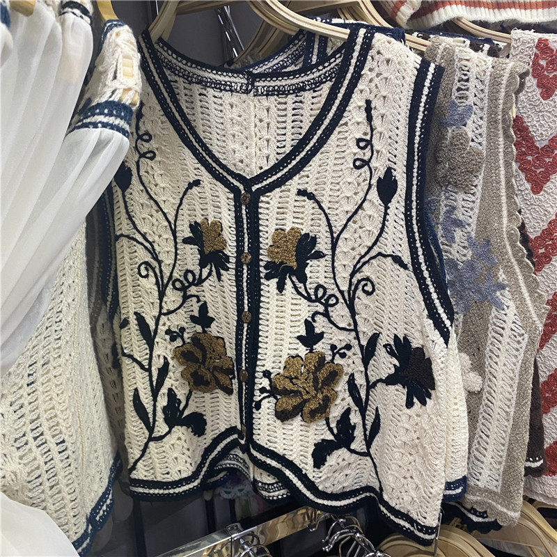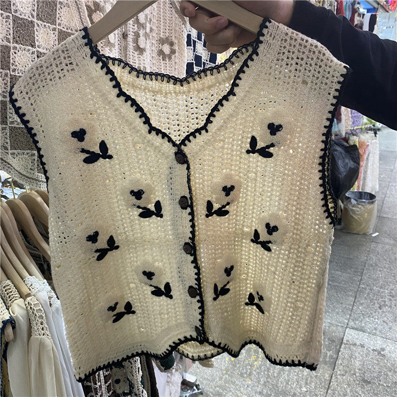 Сумка в форме цветка, трикотажный жилет, демисезонная модная майка топ, кардиган, французский стиль, в цветочек, с вышивкой
