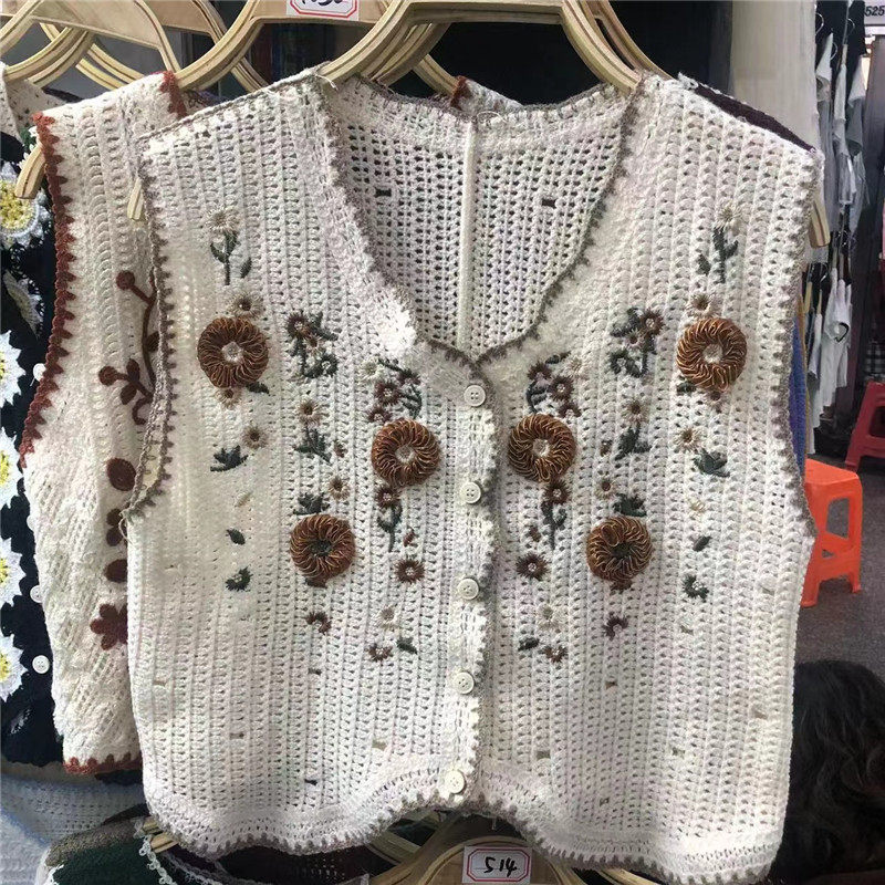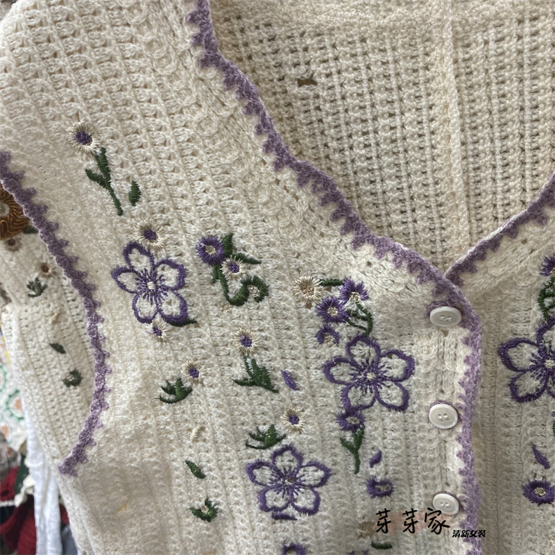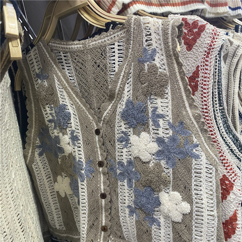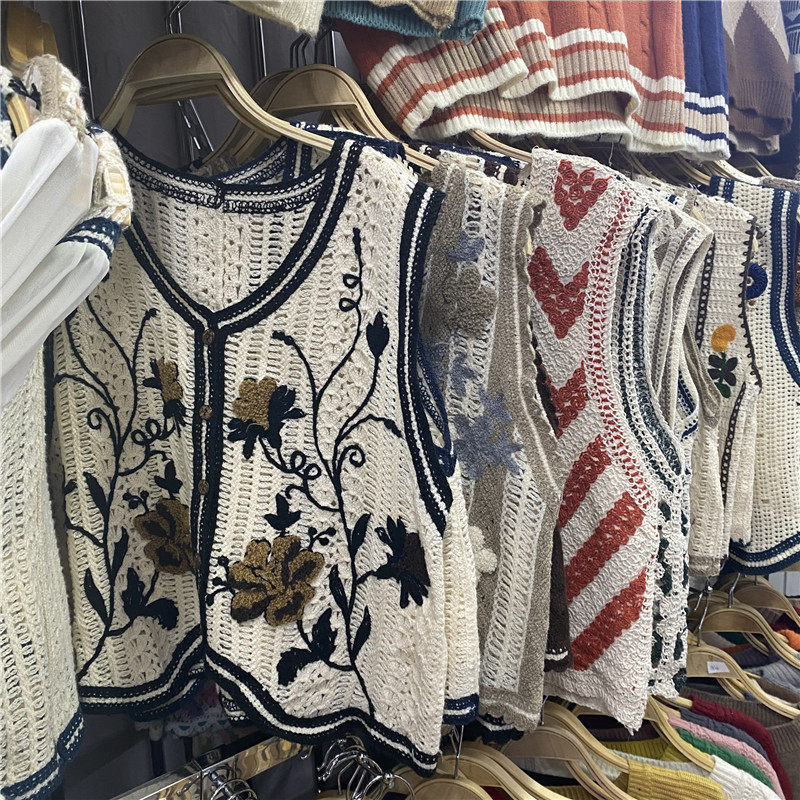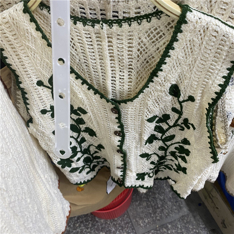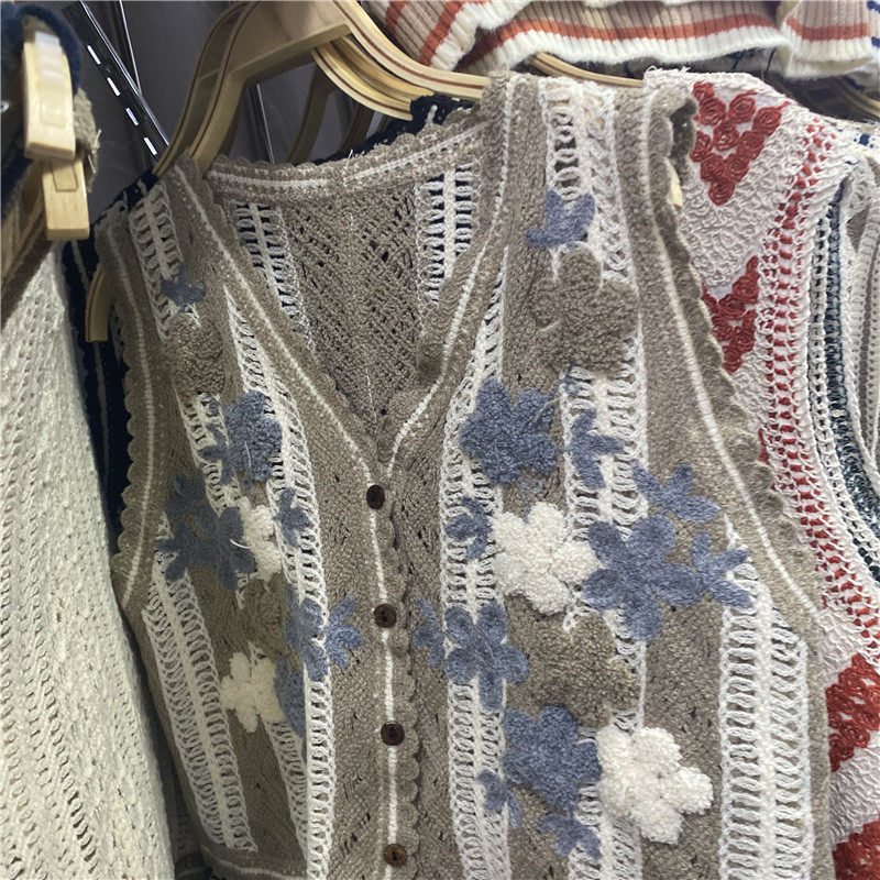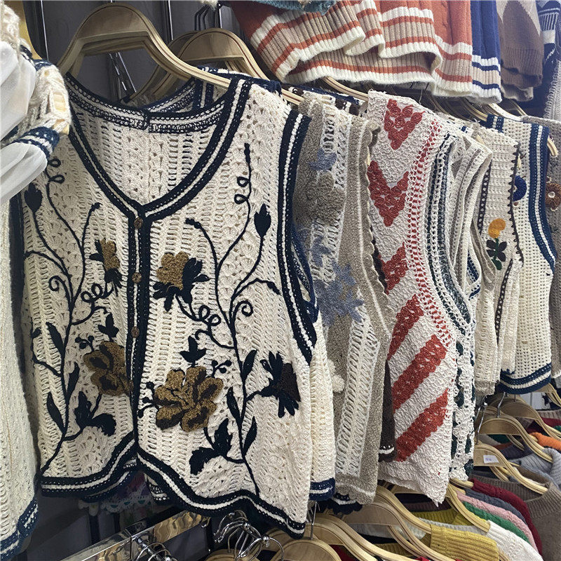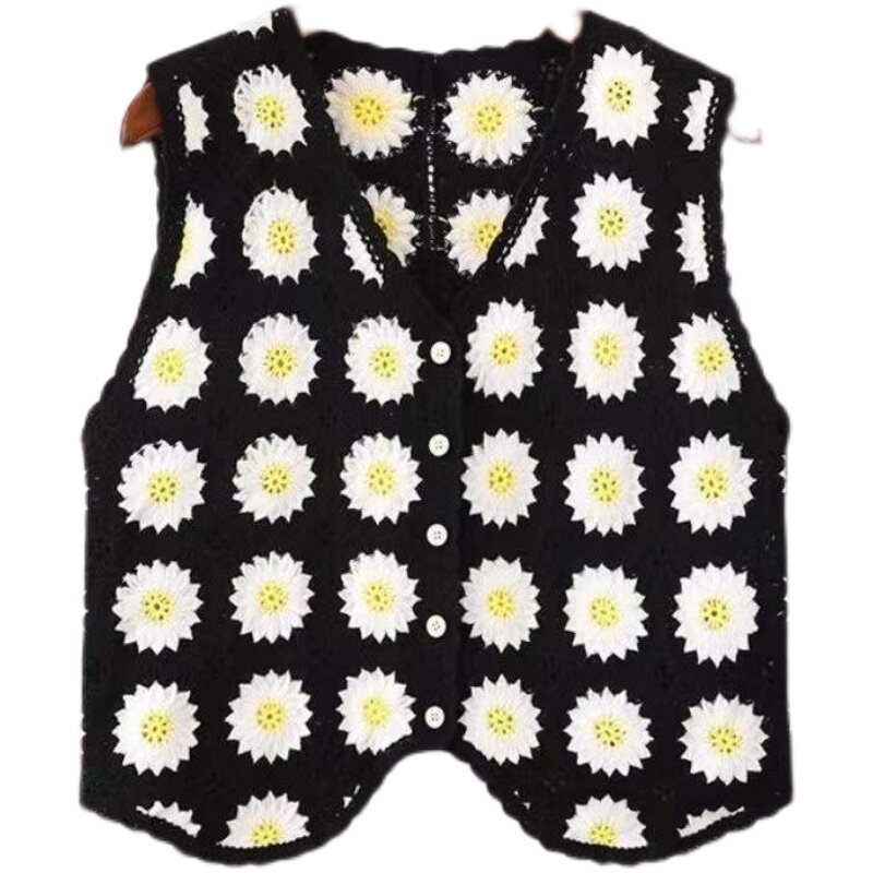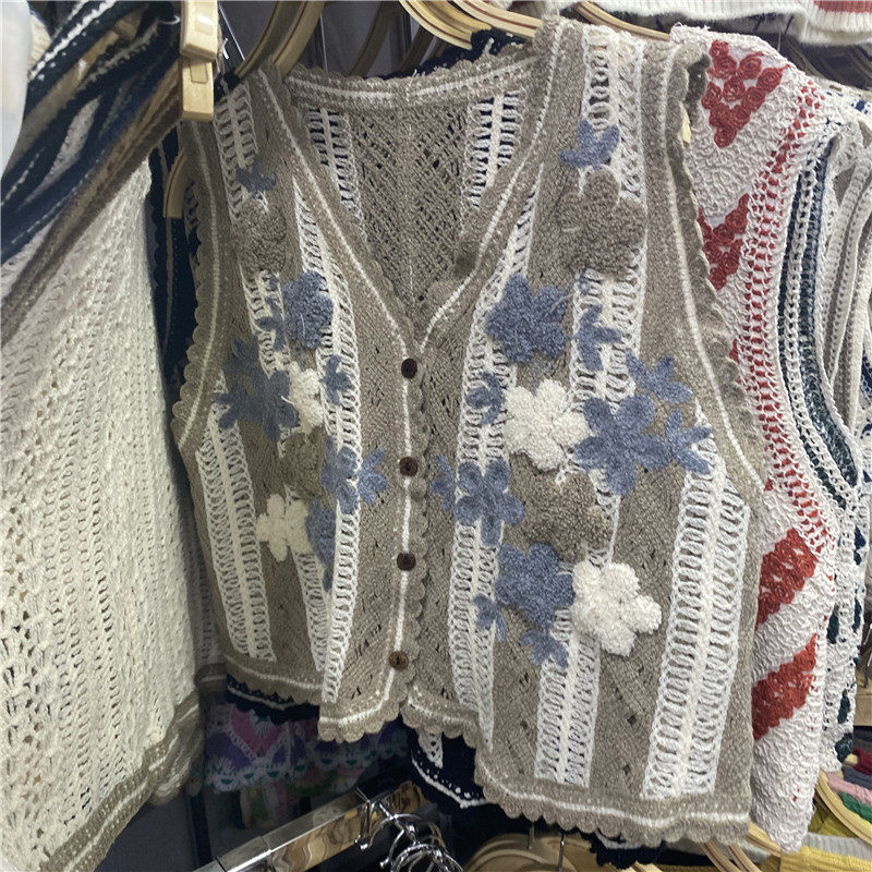 Сумка в форме цветка, трикотажный жилет, демисезонная модная майка топ, кардиган, французский стиль, в цветочек, с вышивкой