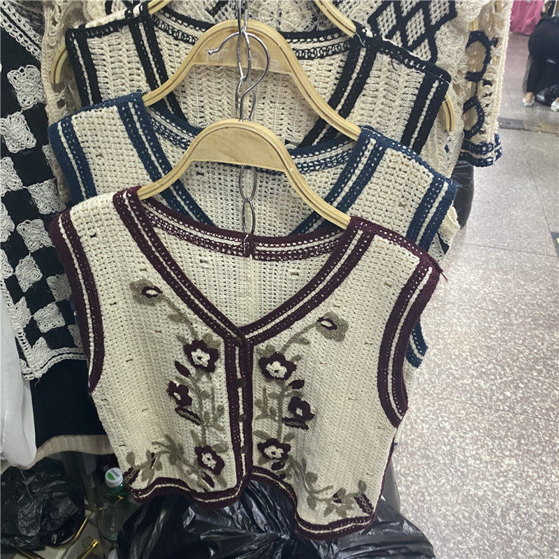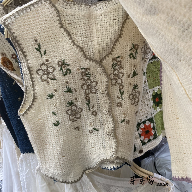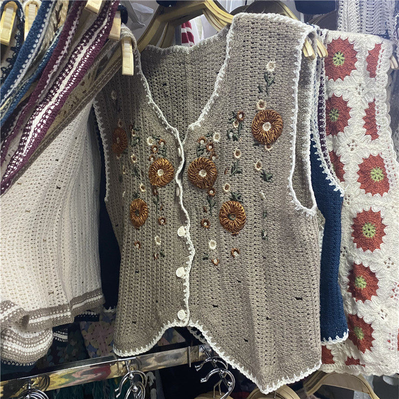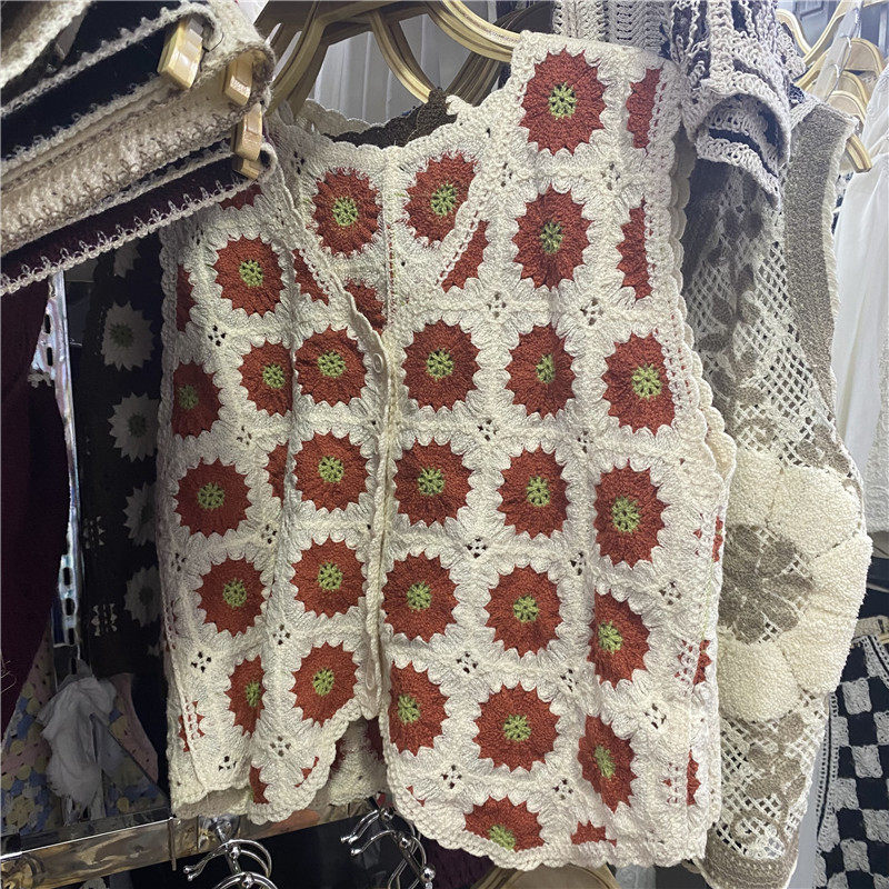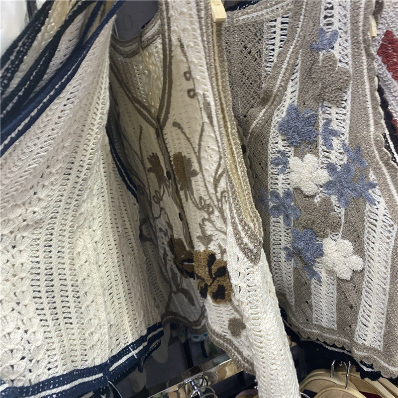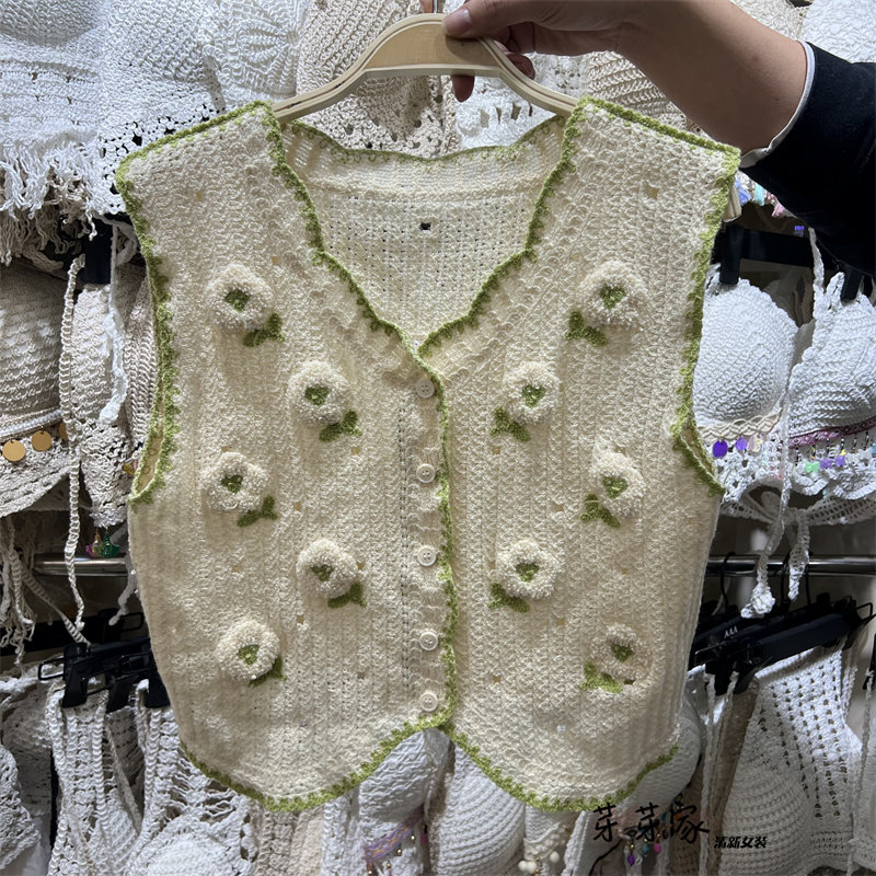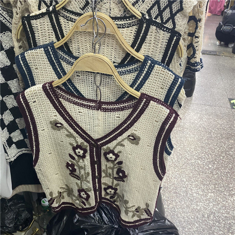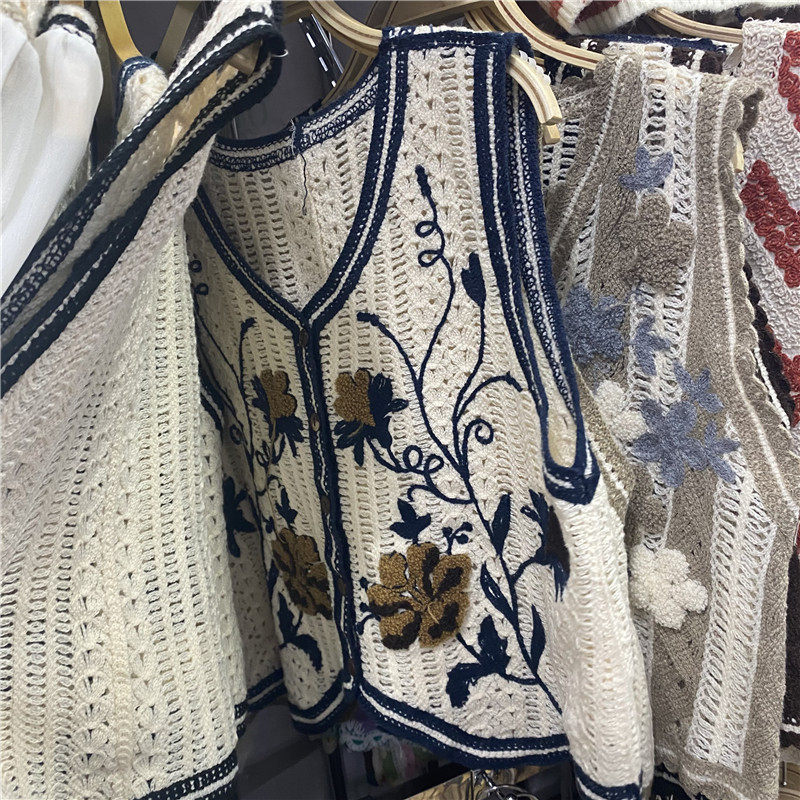 Сумка в форме цветка, трикотажный жилет, демисезонная модная майка топ, кардиган, французский стиль, в цветочек, с вышивкой