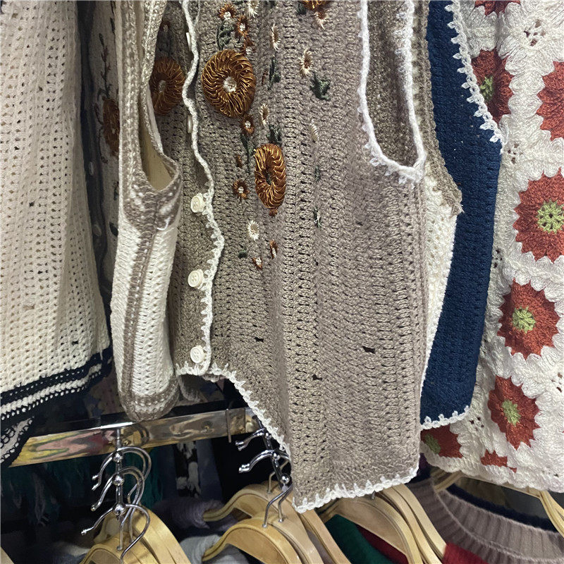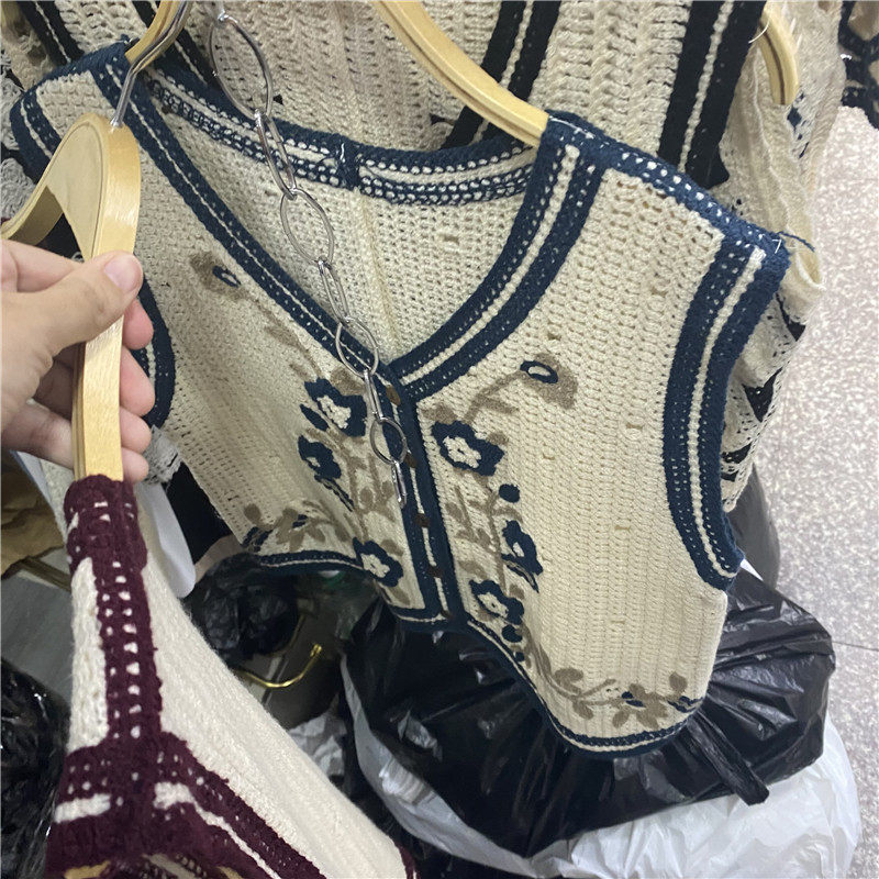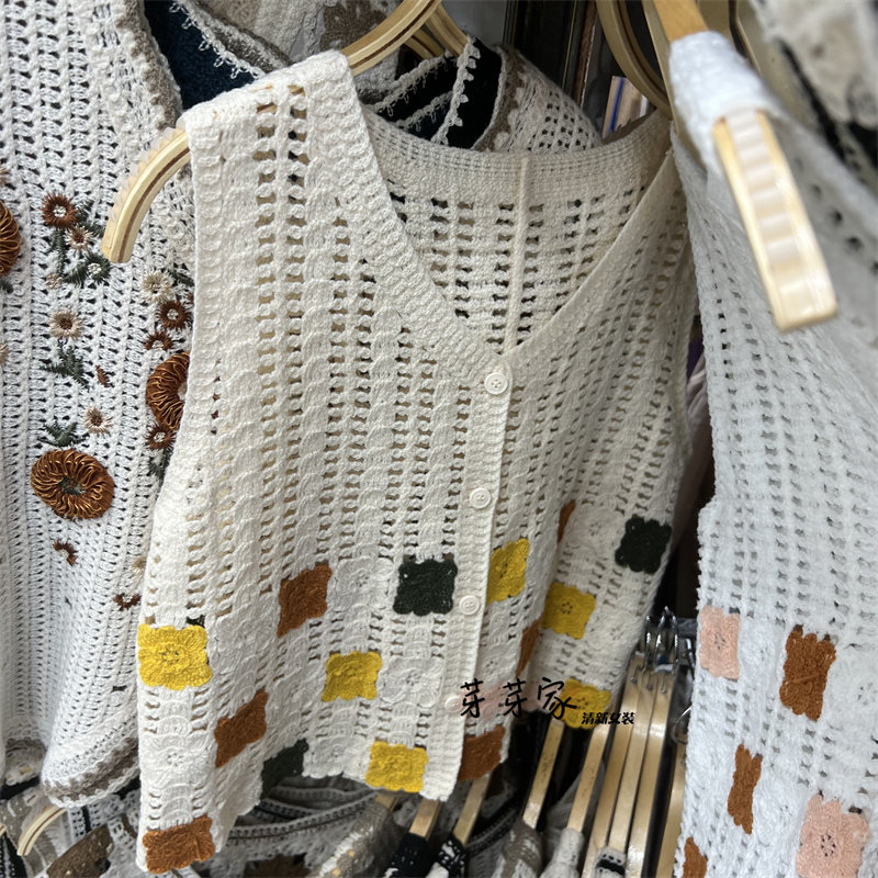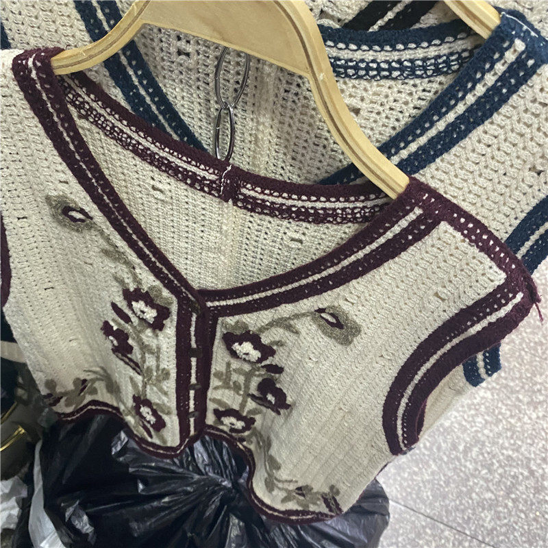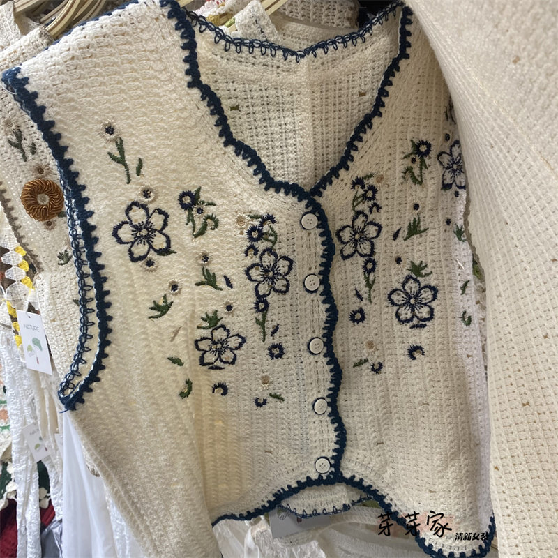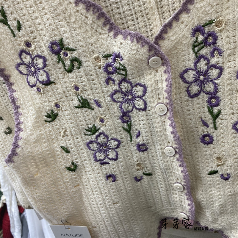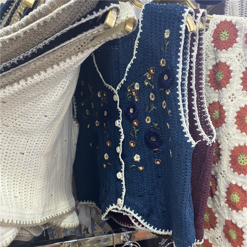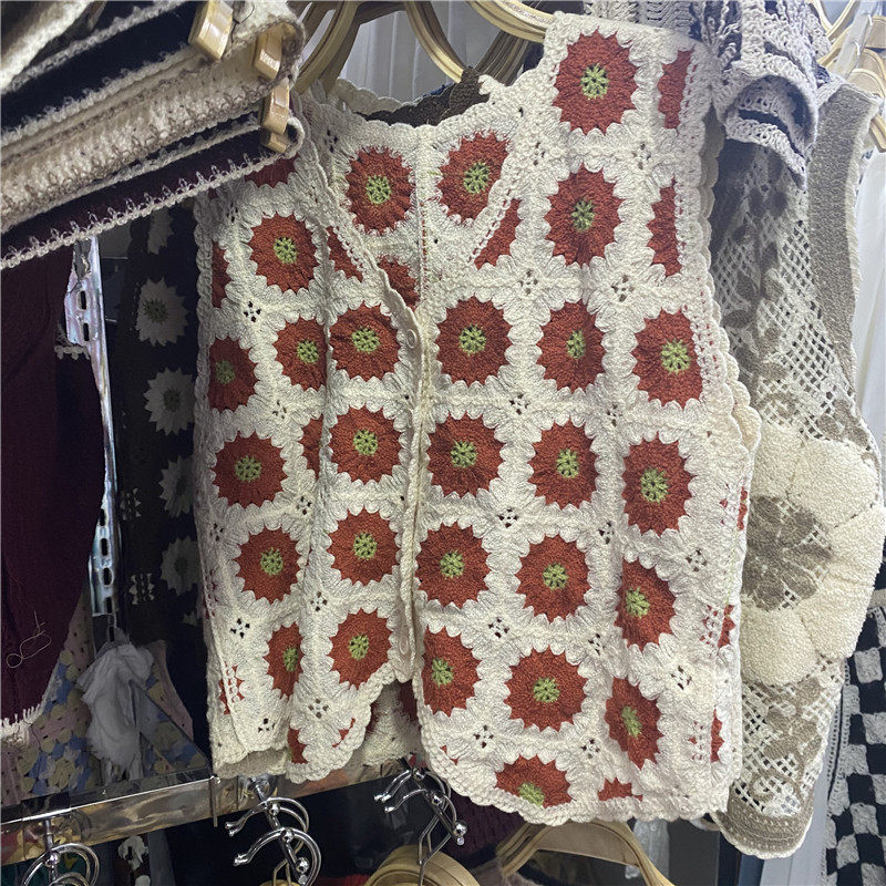 Сумка в форме цветка, трикотажный жилет, демисезонная модная майка топ, кардиган, французский стиль, в цветочек, с вышивкой