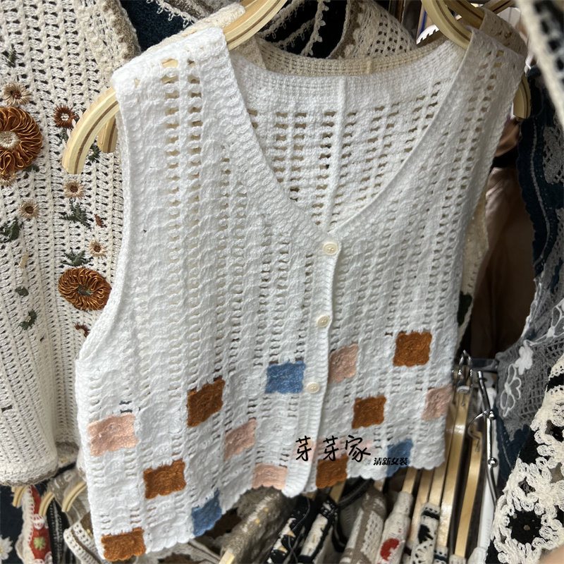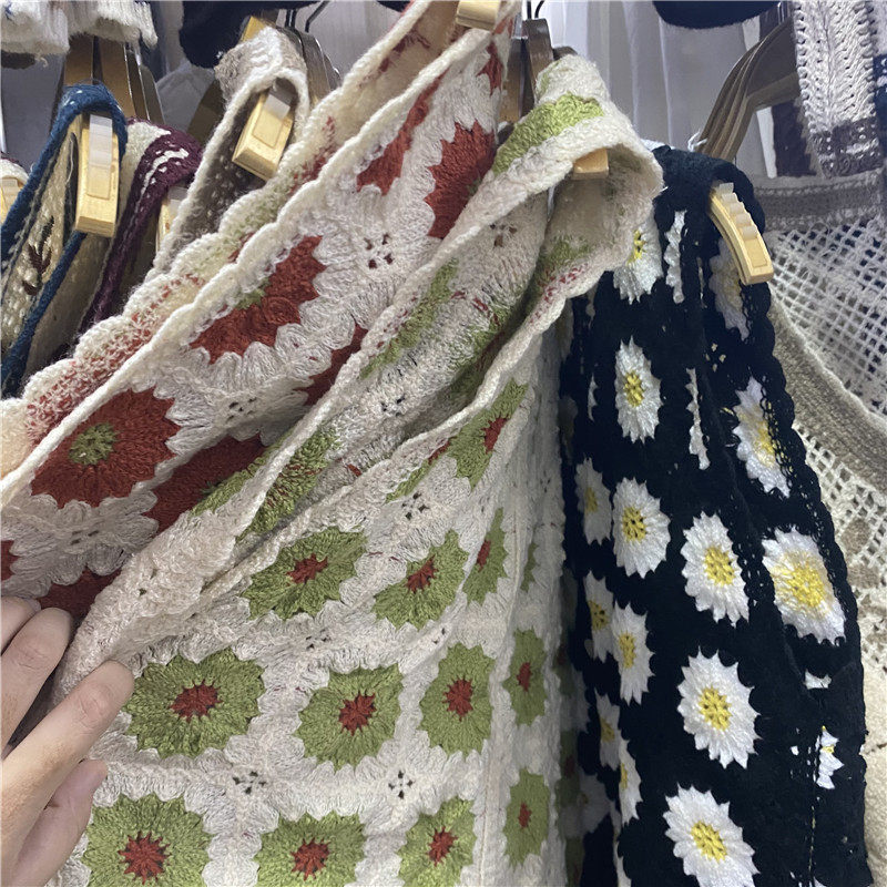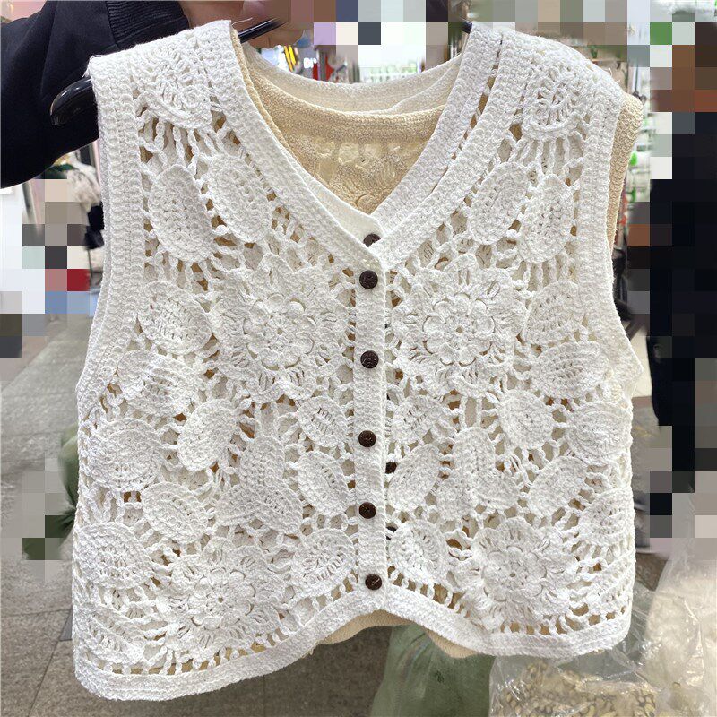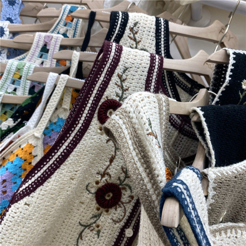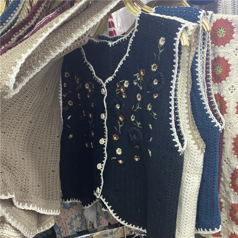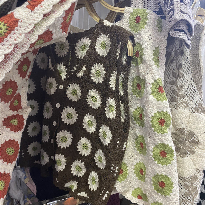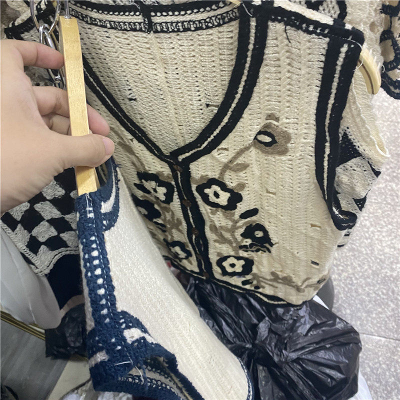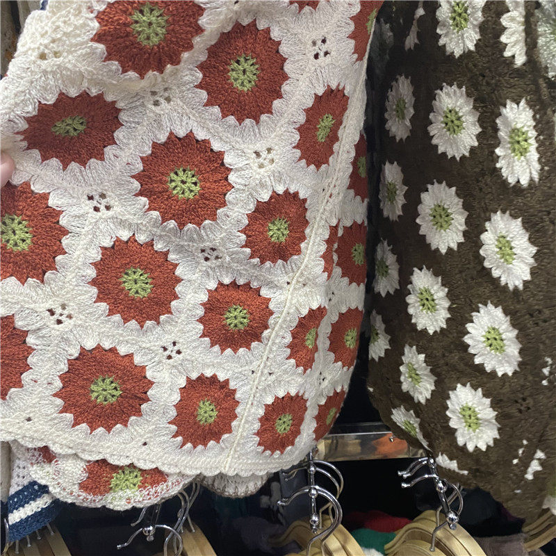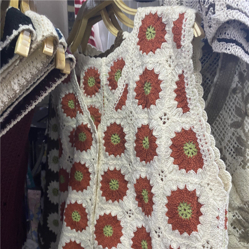 Сумка в форме цветка, трикотажный жилет, демисезонная модная майка топ, кардиган, французский стиль, в цветочек, с вышивкой