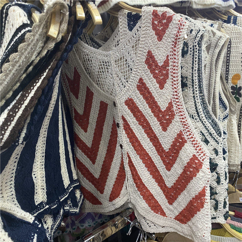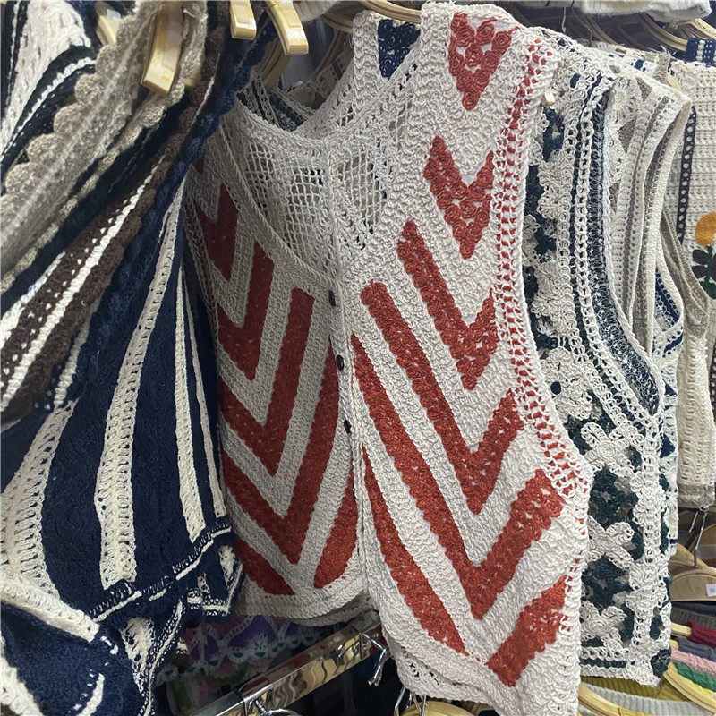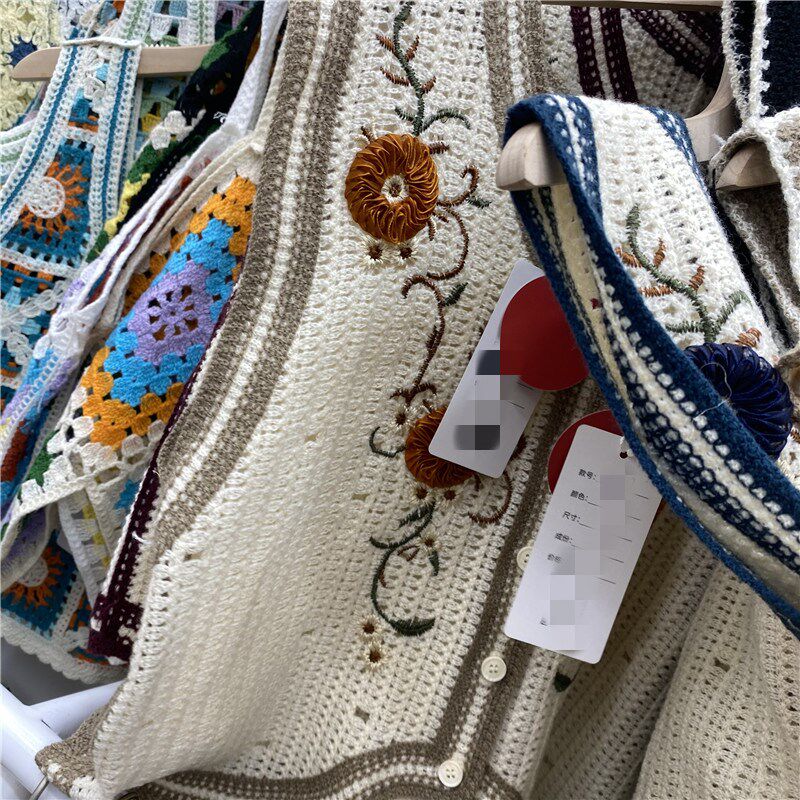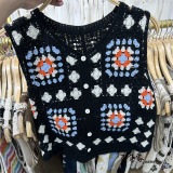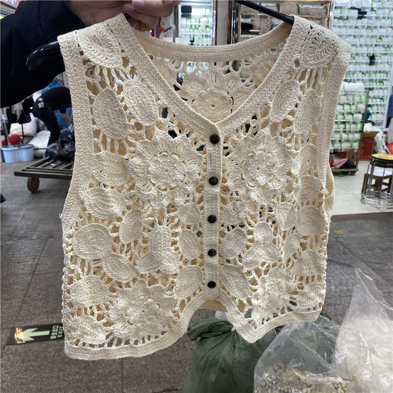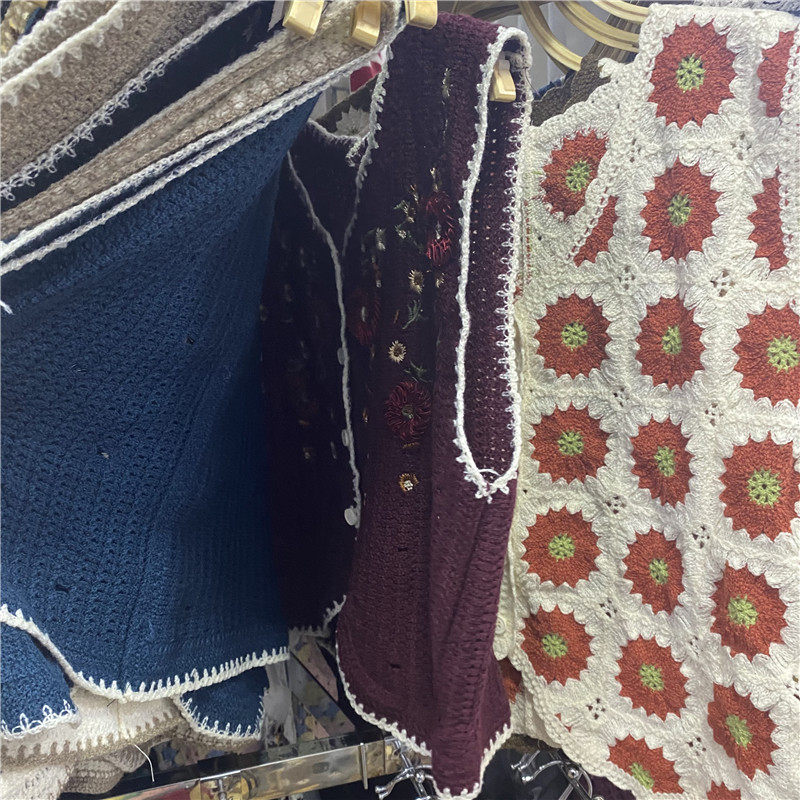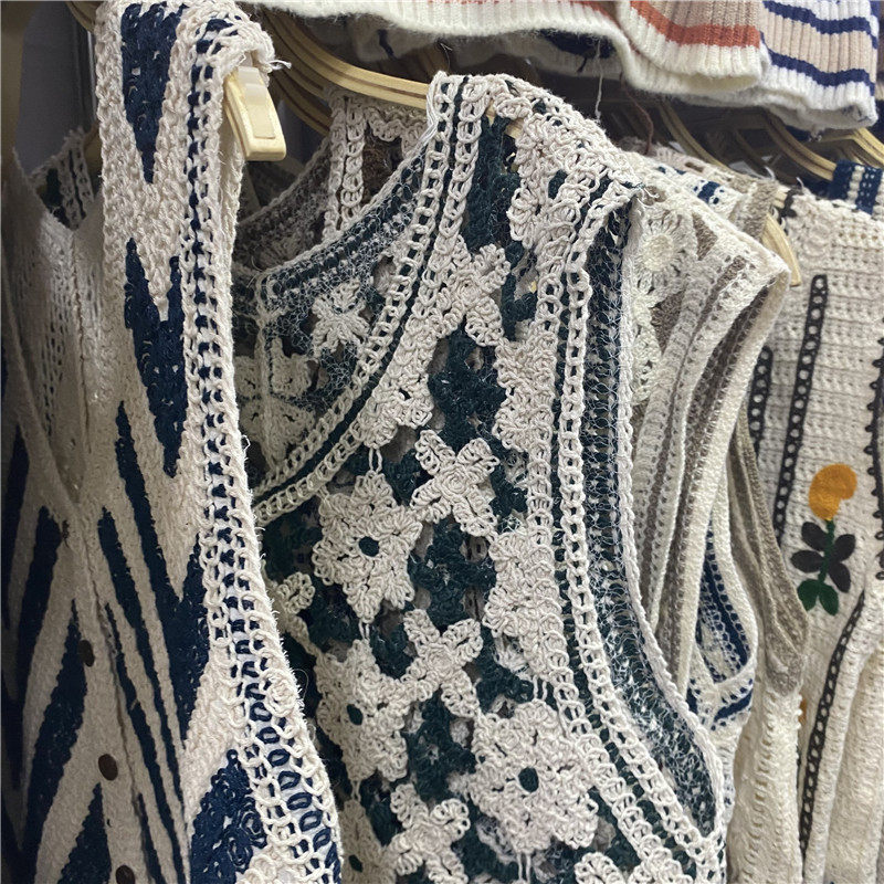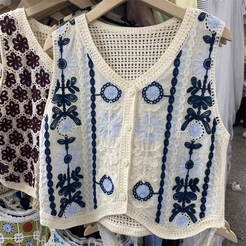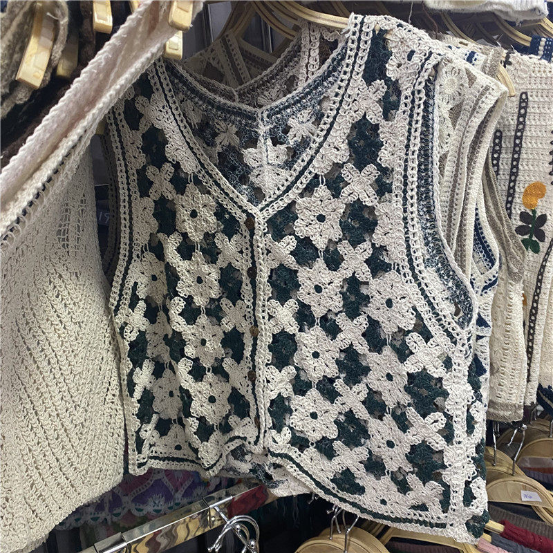 Сумка в форме цветка, трикотажный жилет, демисезонная модная майка топ, кардиган, французский стиль, в цветочек, с вышивкой