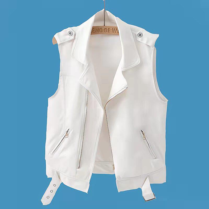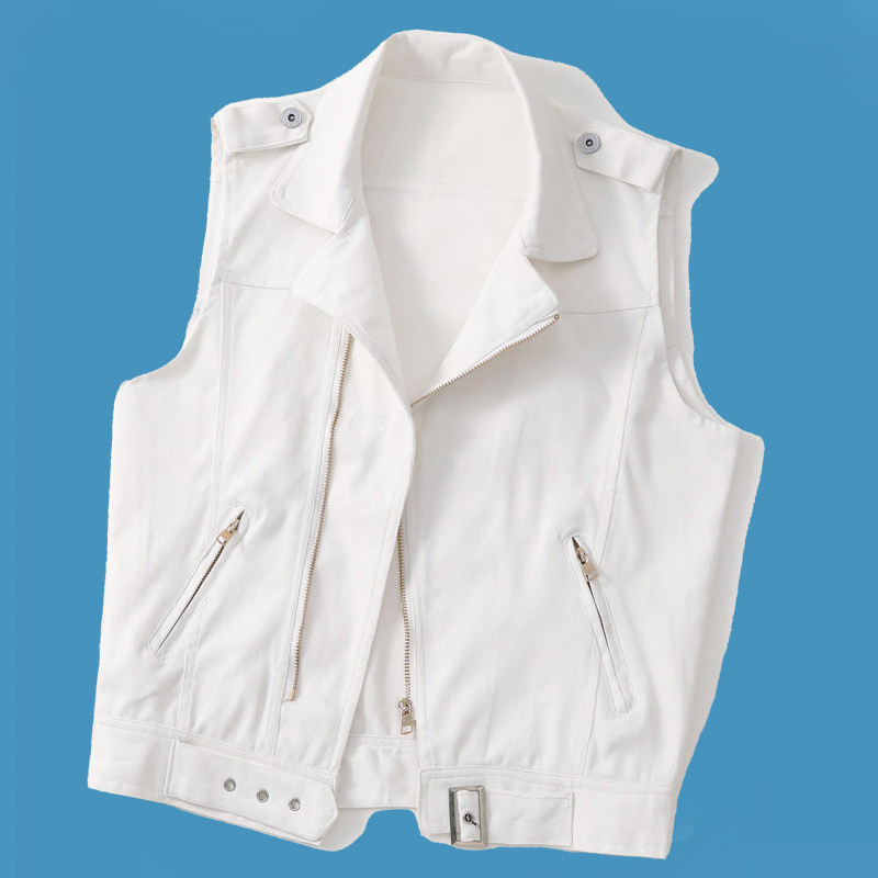 Белый джинсовый жилет, короткая куртка с молнией без рукавов, коллекция 2023