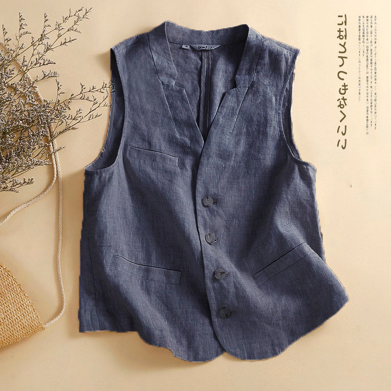 (Трансграничная торговля), японская футболка без рукавов для отдыха, жилет, куртка, свободный крой, из хлопка и льна