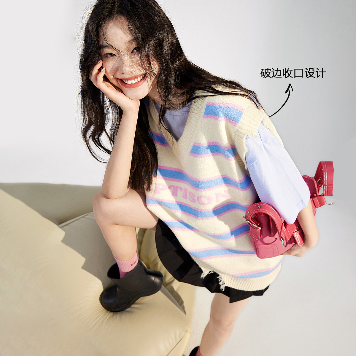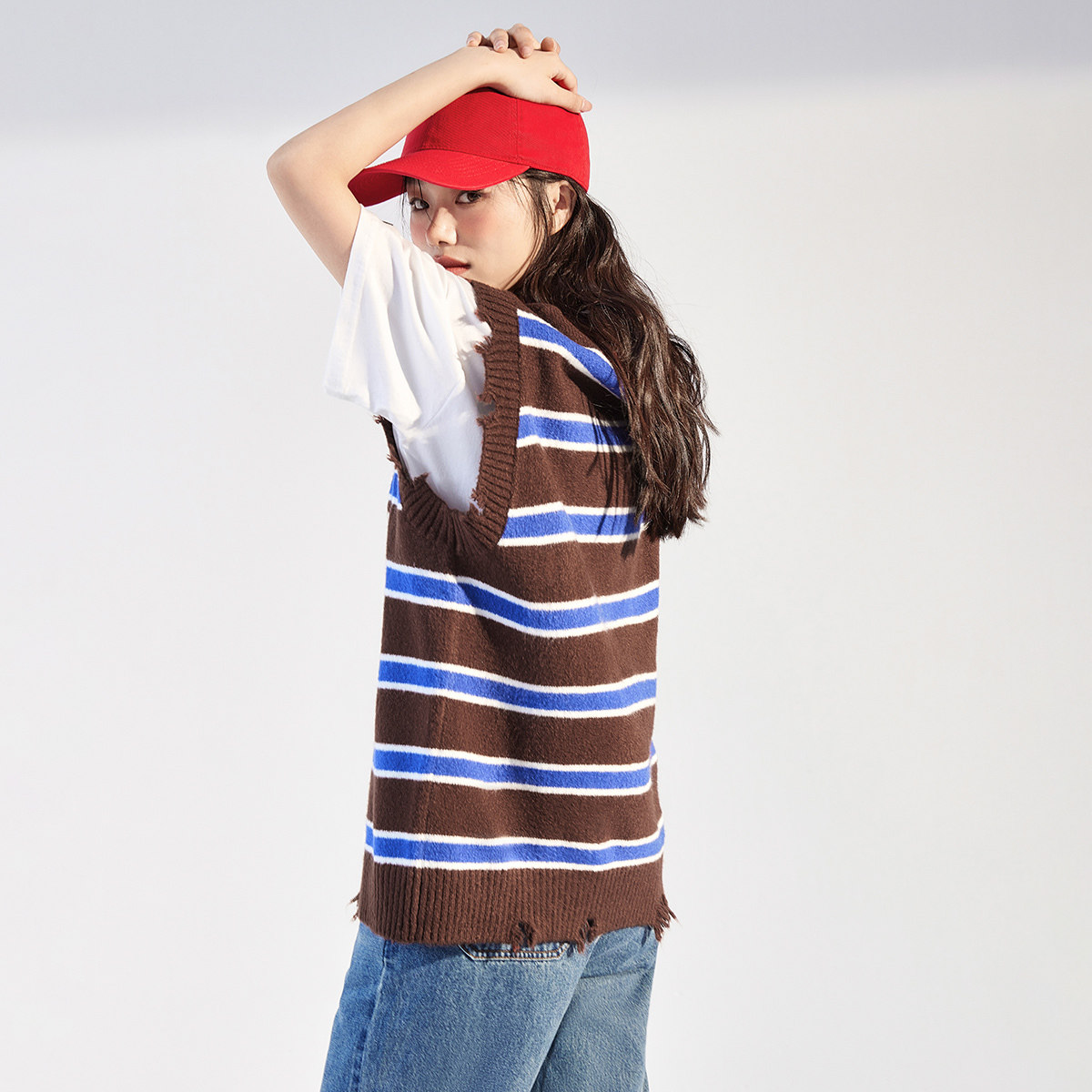Трикотажный осенний жилет, ретро свитер для отдыха, в американском стиле, оверсайз