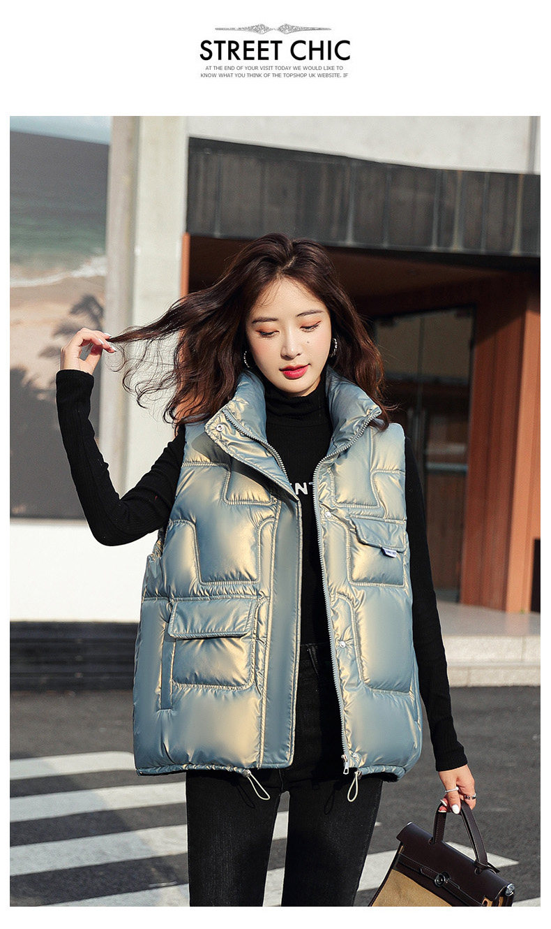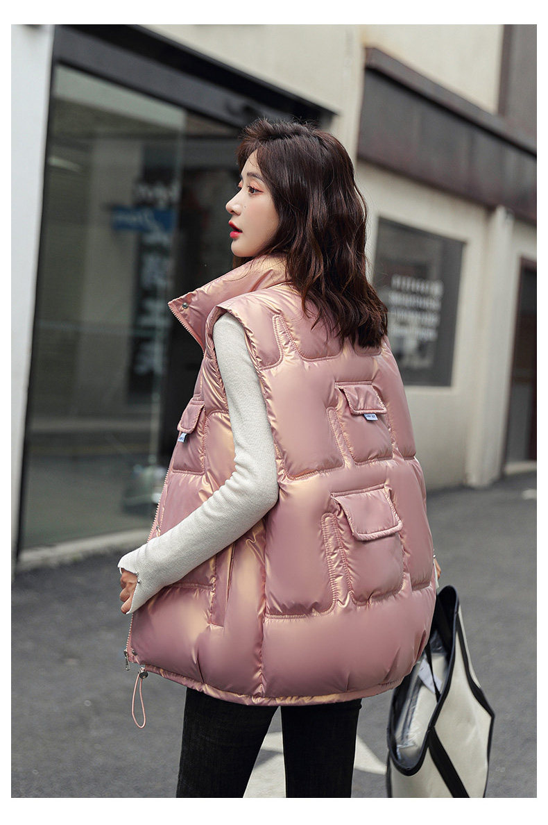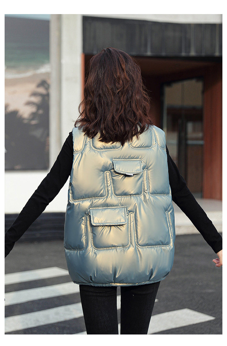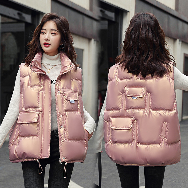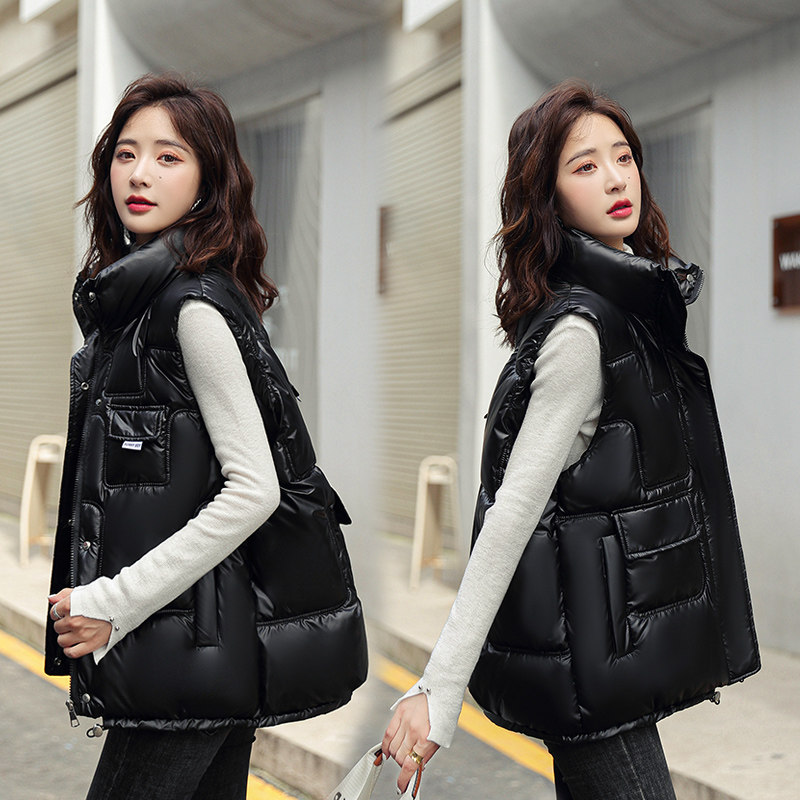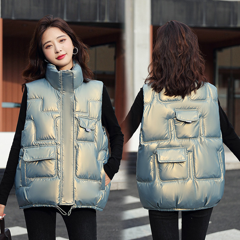Зимний глянцевый короткий жилет с пухом, в корейском стиле