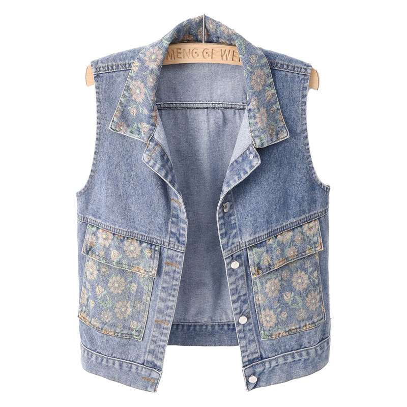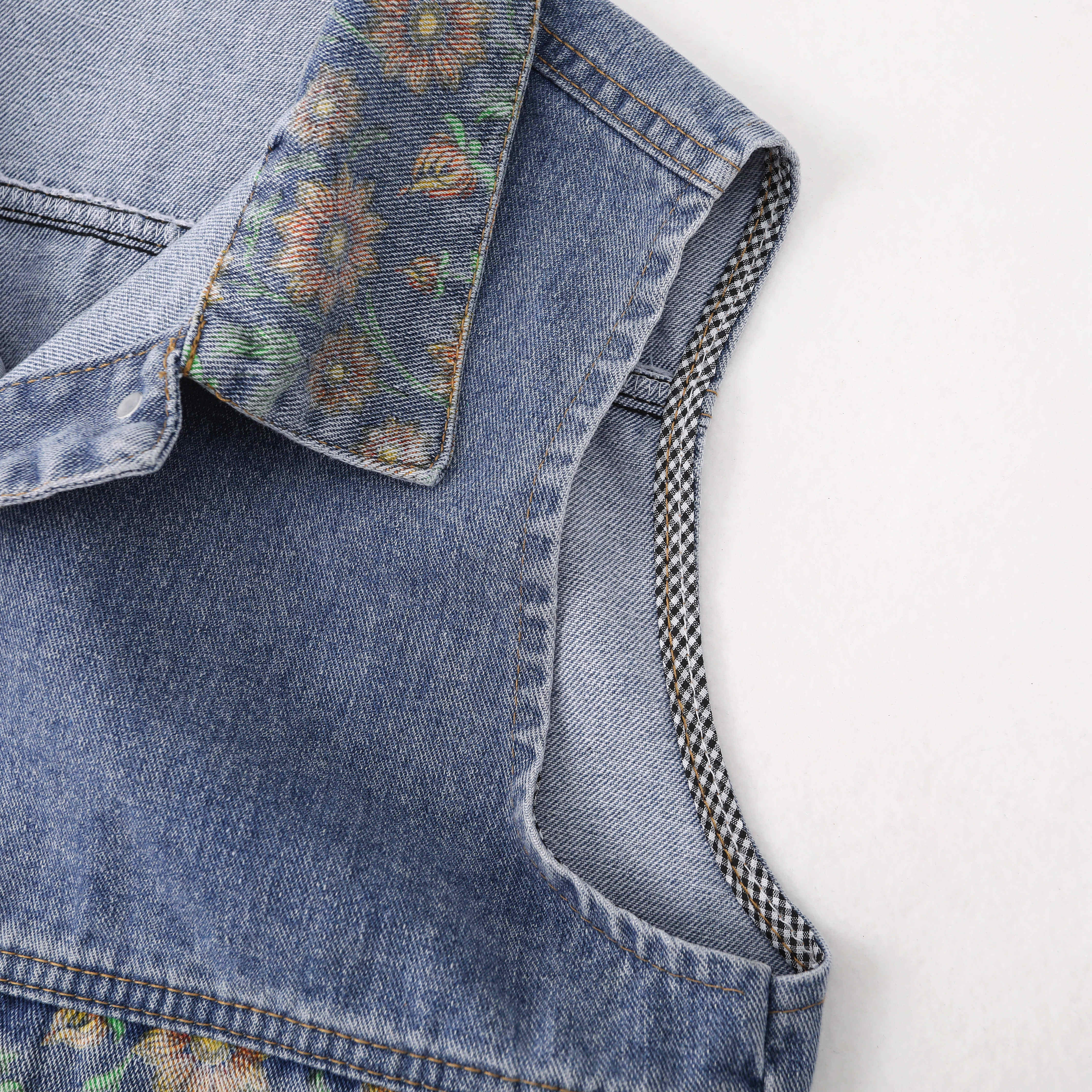 Джинсовый осенний демисезонный жилет, майка топ, в западном стиле