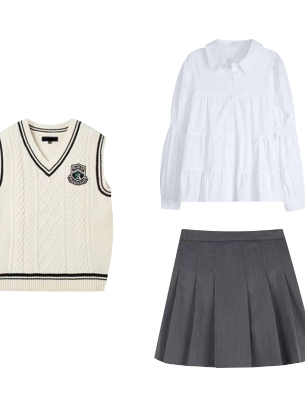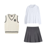 | Цвет: | Комплект, галстук, 3 предмета, Жилет [цельное изделие], Рубашка, галстук, Юбка в складку, плиссированная юбка |