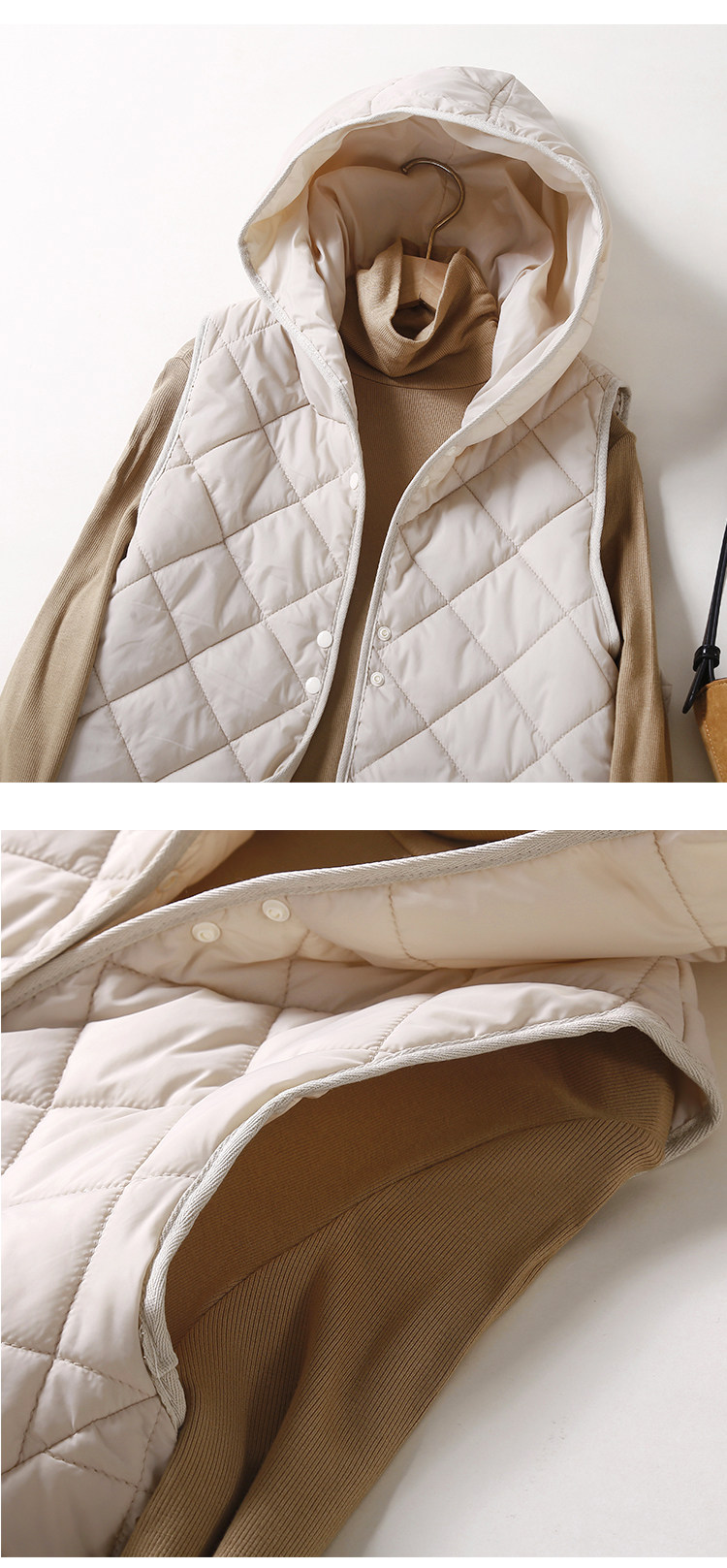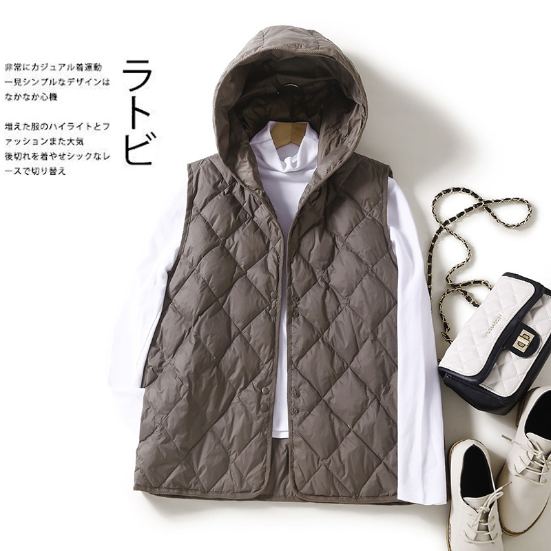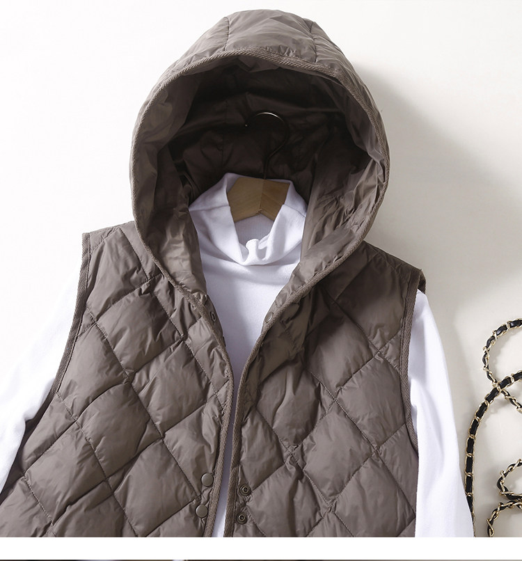 Легкий и тонкий удерживающий тепло жилет с пухом с капюшоном, майка топ без рукавов с ромбовидным узором, куртка