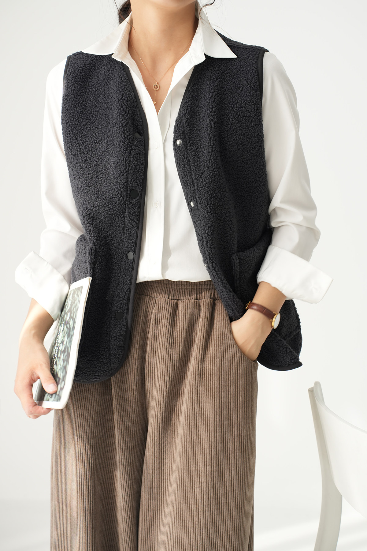 | Цвет: | Зеленый жилет, Военный зеленый жилет, Белый жилет, Глубокий серый жилет, Темно -коричневый кофейный жилет, Темно -коричневый край |