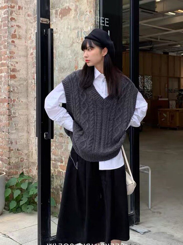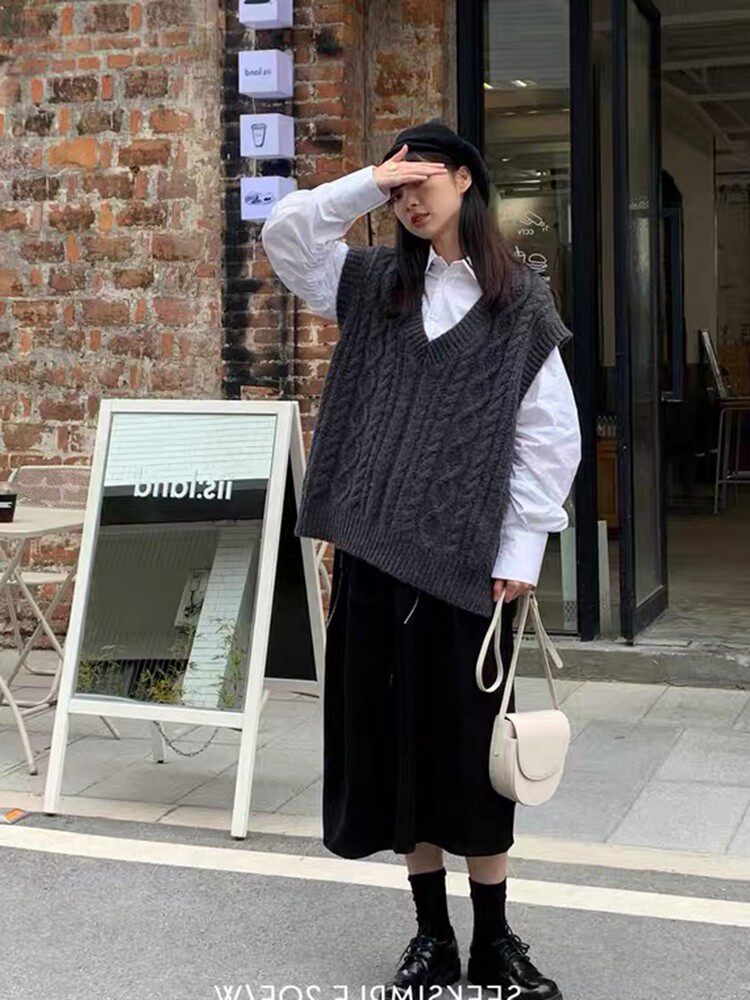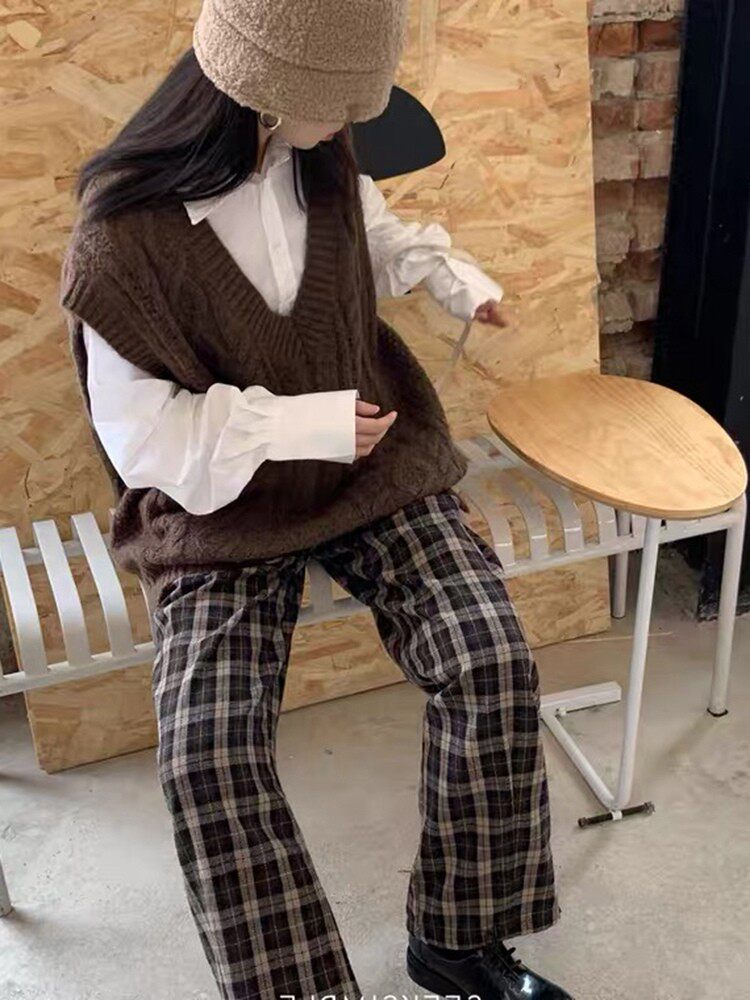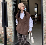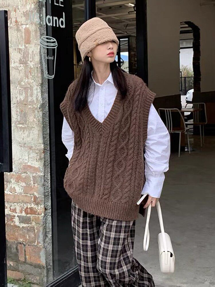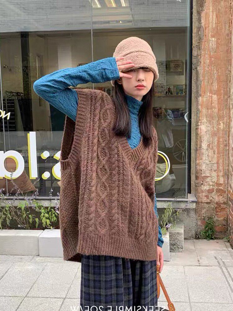 Коричневый трикотажный свитер, весенний жилет, майка топ, свободный крой, изысканный стиль