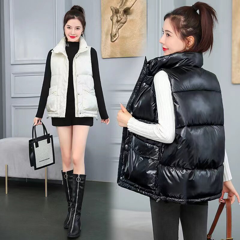 Демисезонный глянцевый жилет с пухом, удерживающий тепло пуховик, куртка, коллекция 2023, в корейском стиле
