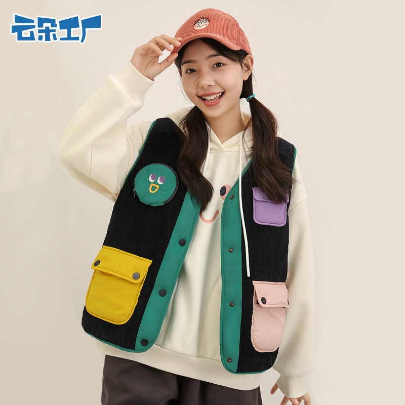 Вельветовый синий флисовый жилет, удерживающая тепло майка топ без рукавов, куртка, свободный крой