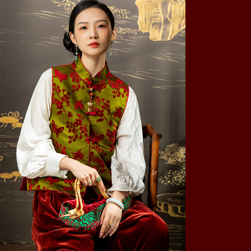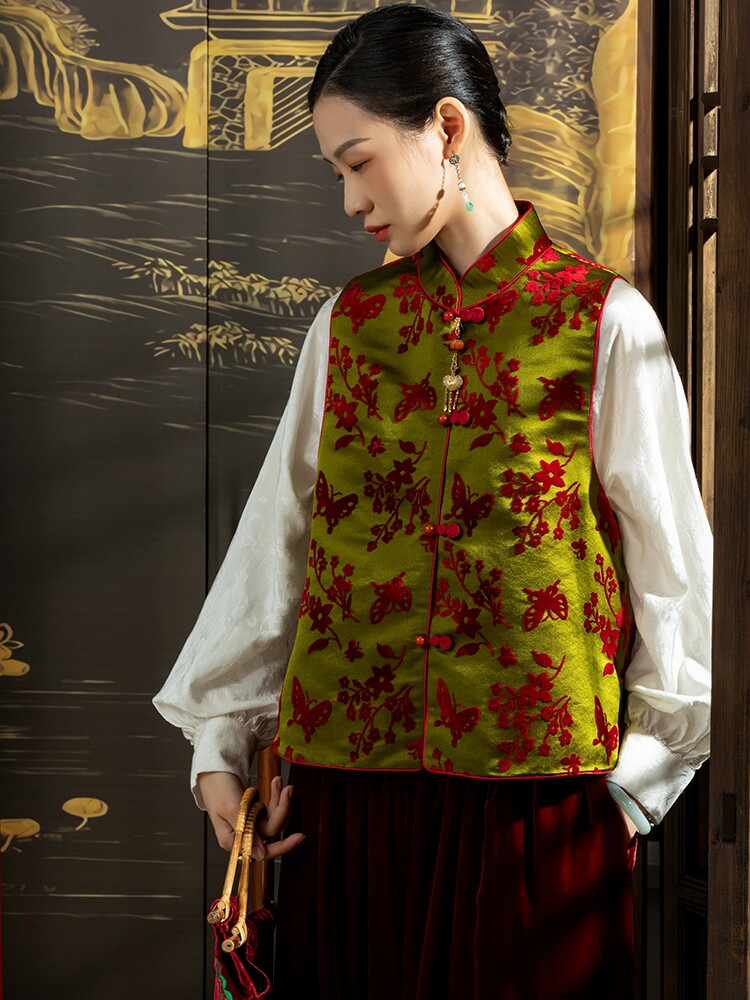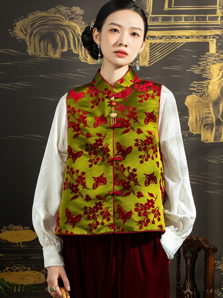 • Осенний аромат зеленый бабочка любовь цветы осенняя и зимние ватные жилеты