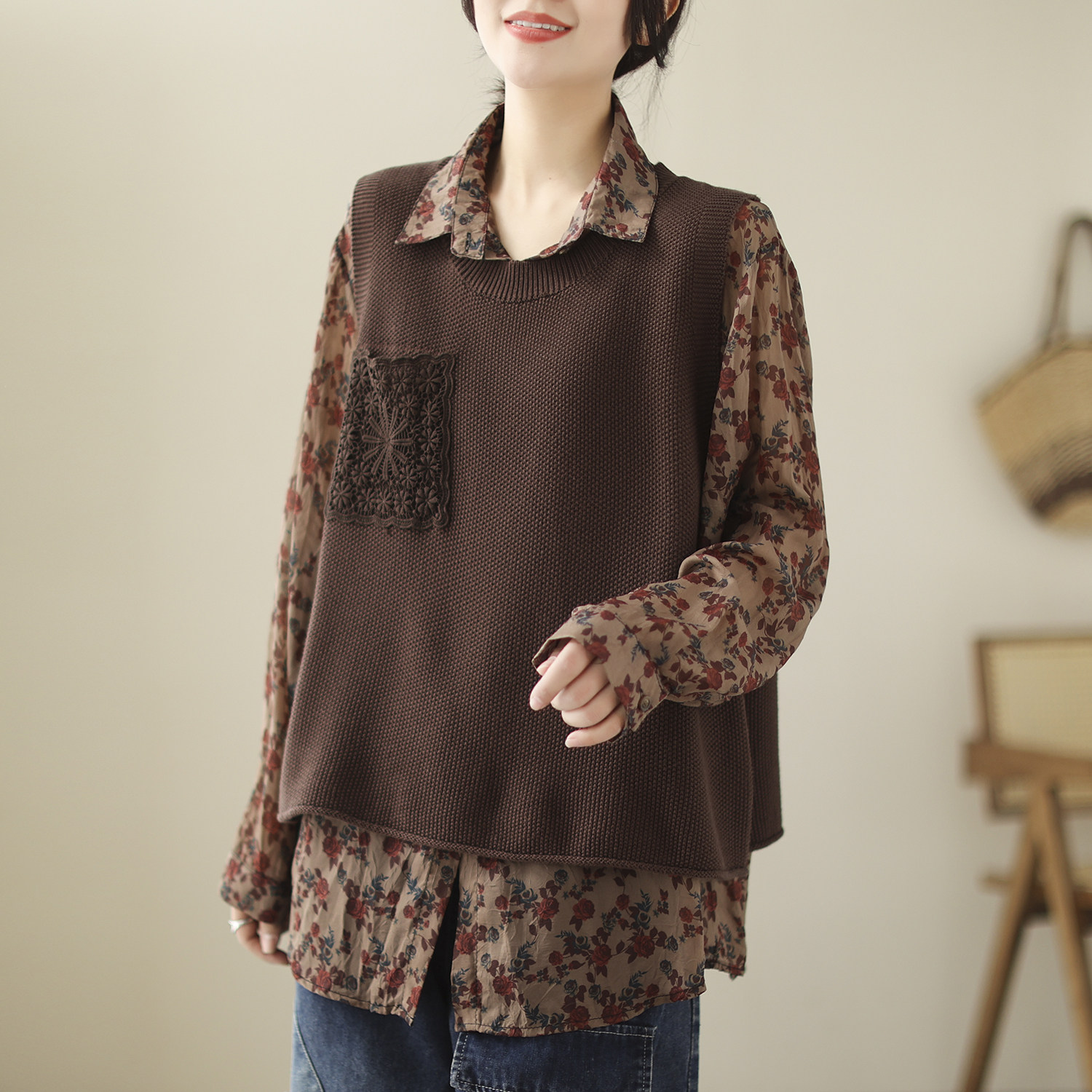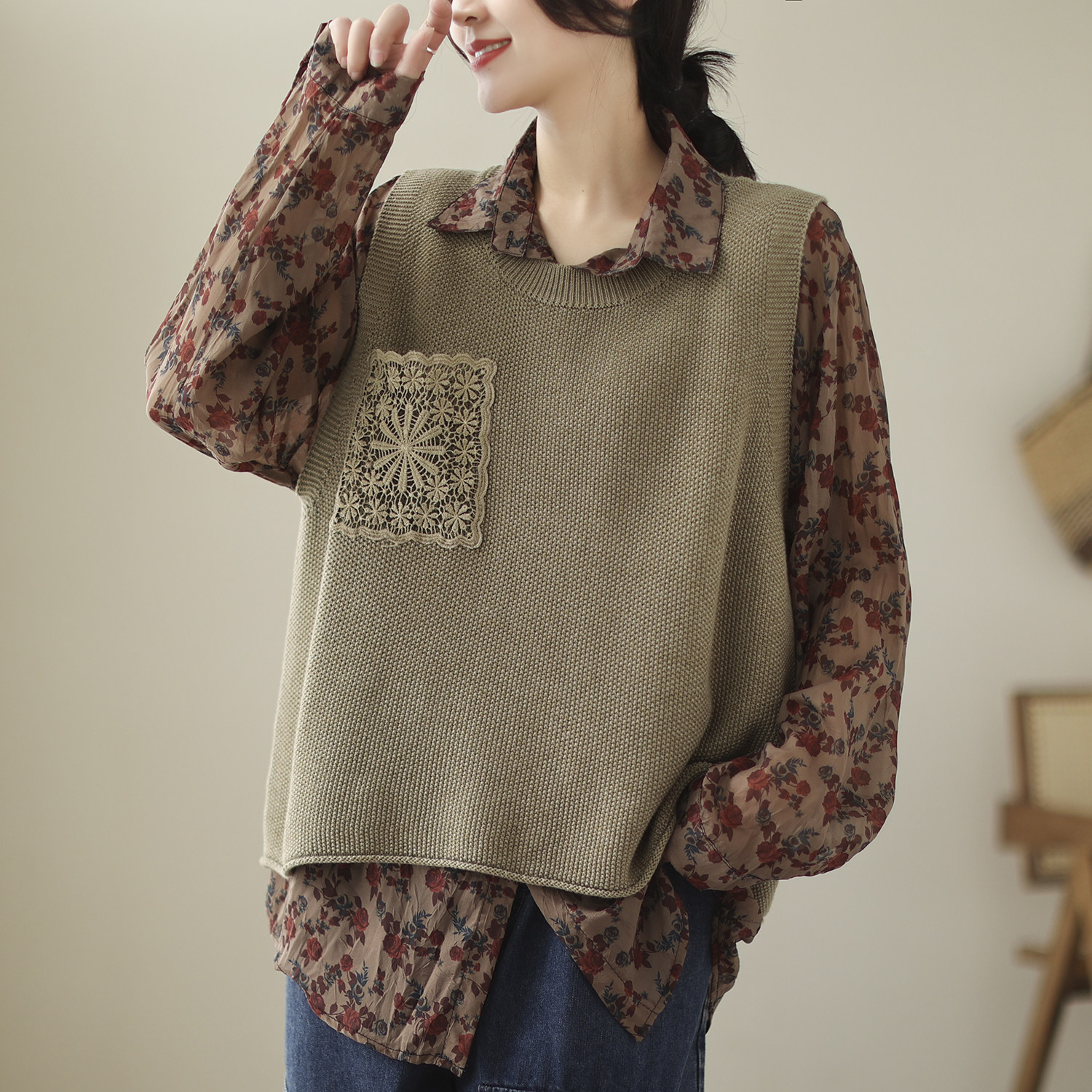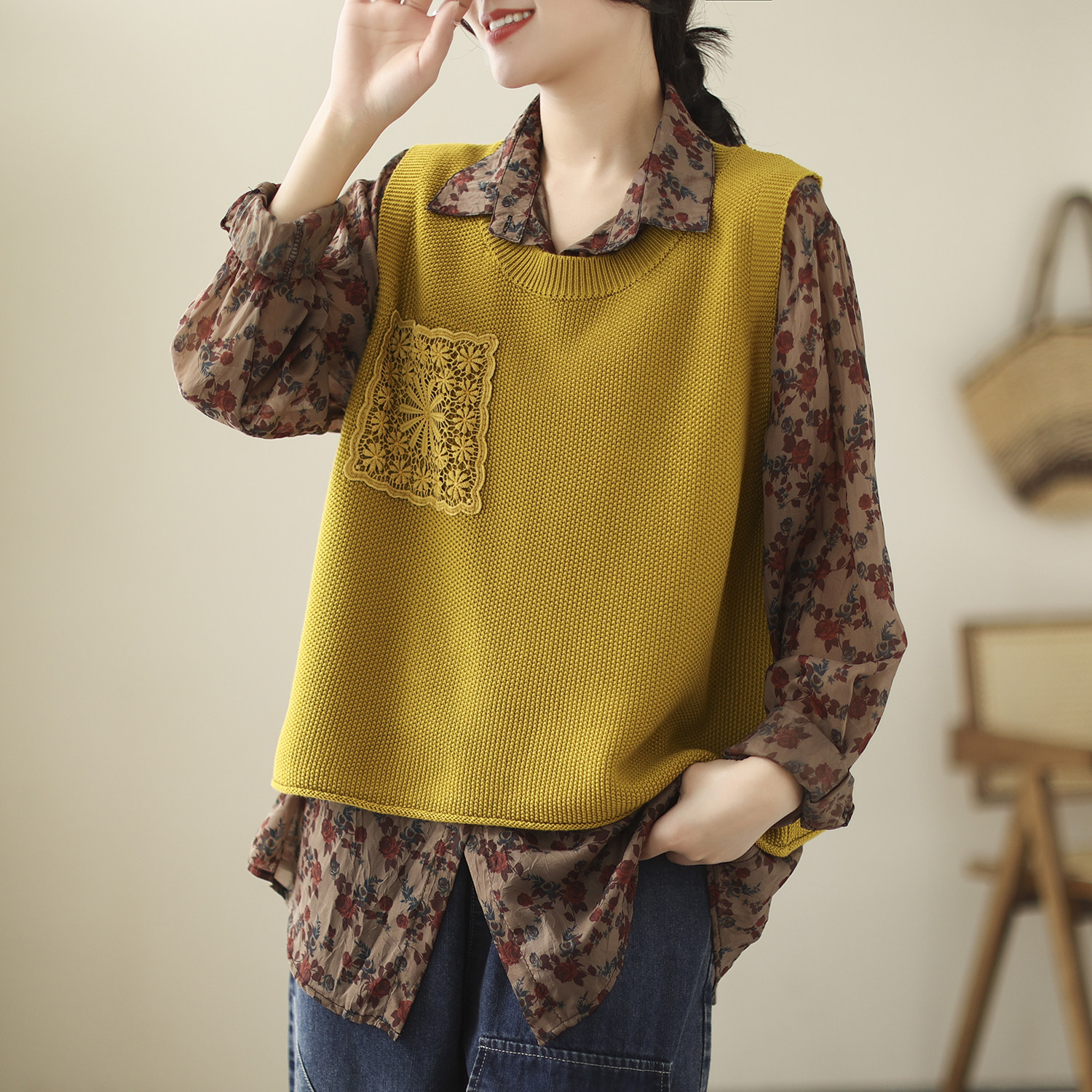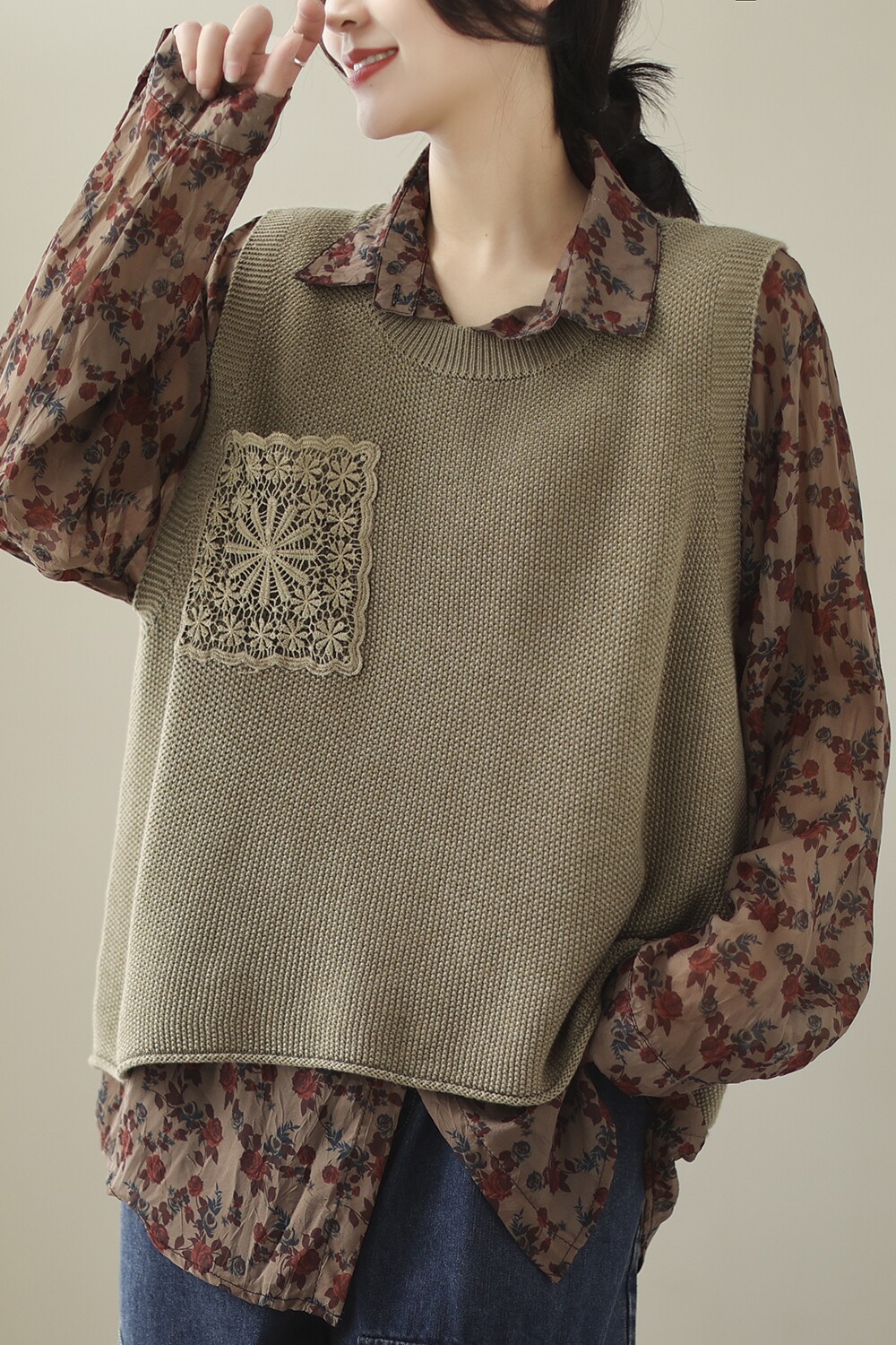 Весенний трикотажный цветной жилет для отдыха без рукавов