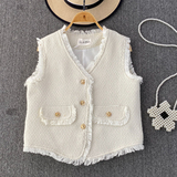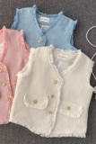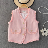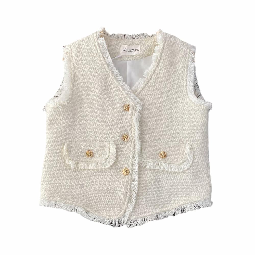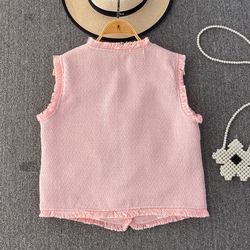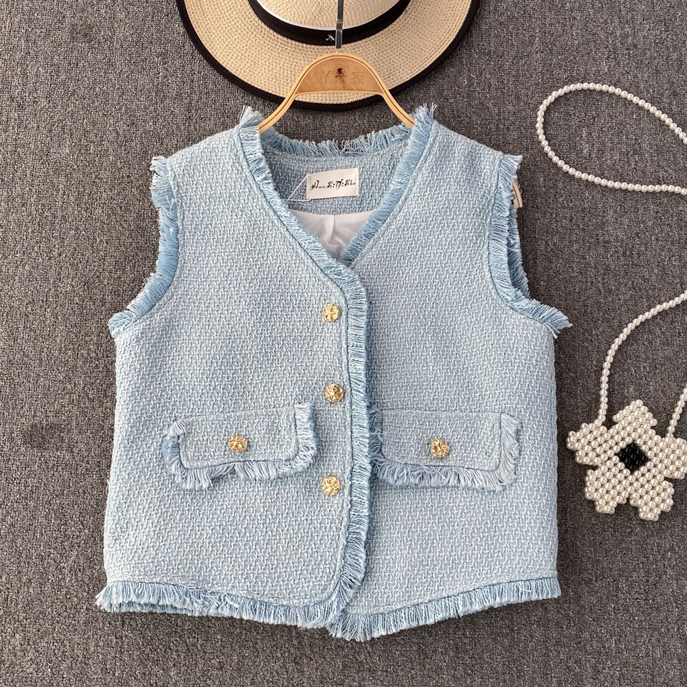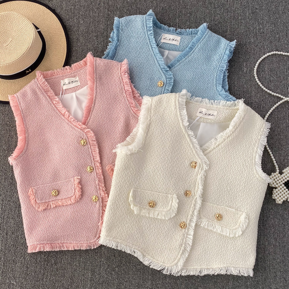 Ретро жилет, куртка для отдыха без рукавов, в стиле Шанель, V-образный вырез, свободный крой
