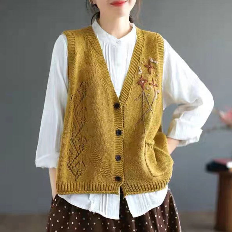 Жилет, майка топ, куртка, трикотажный ретро свитер, V-образный вырез, оверсайз