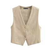 ZARZ Self -Made European и American Style New Women's Classic Wersatile Linen Blessed Short Vest 1879/023